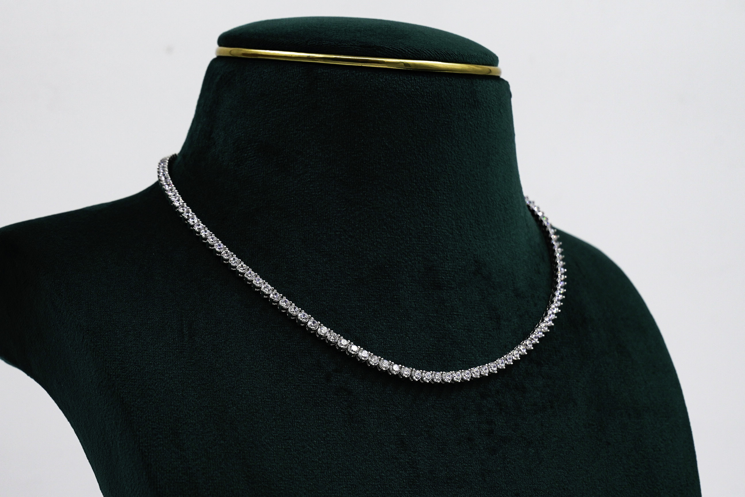 Elegant silver tennis necklace, a timeless piece perfect for parties and special occasions. Buy silver tennis necklace from Raag Silver Jewellery in Hyderabad.