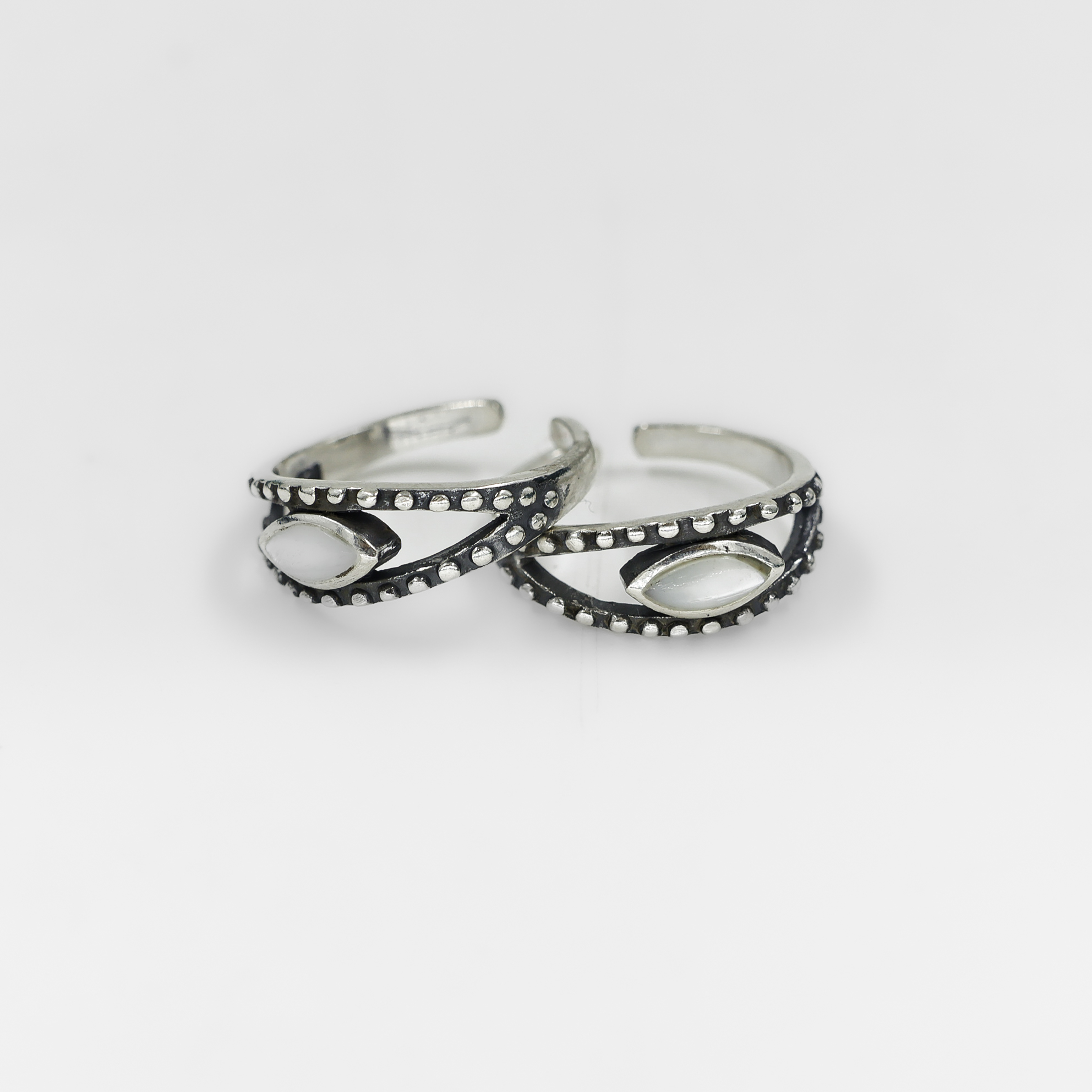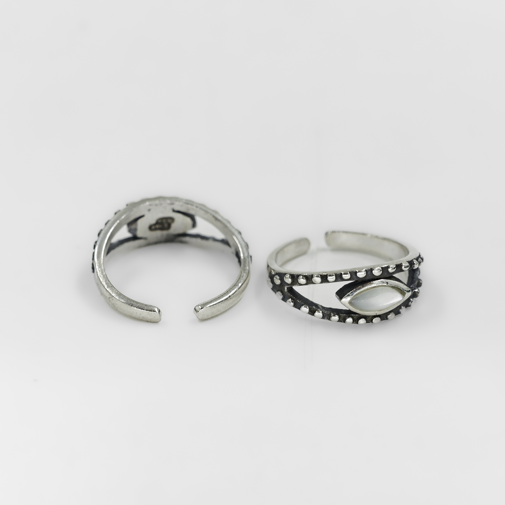 Oxidized silver toe ring with intricate design, perfect for traditional and everyday wear. Buy Silver Toe Ring from Raag Silver Jewellery in Hyderabad.