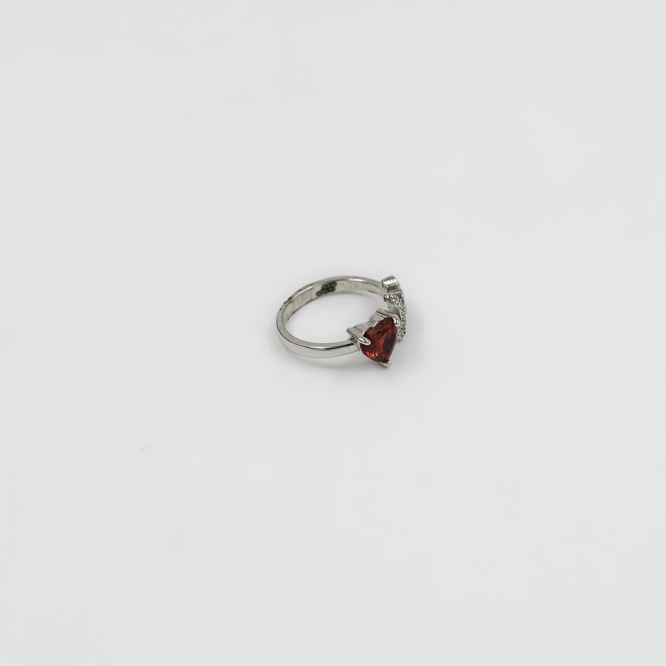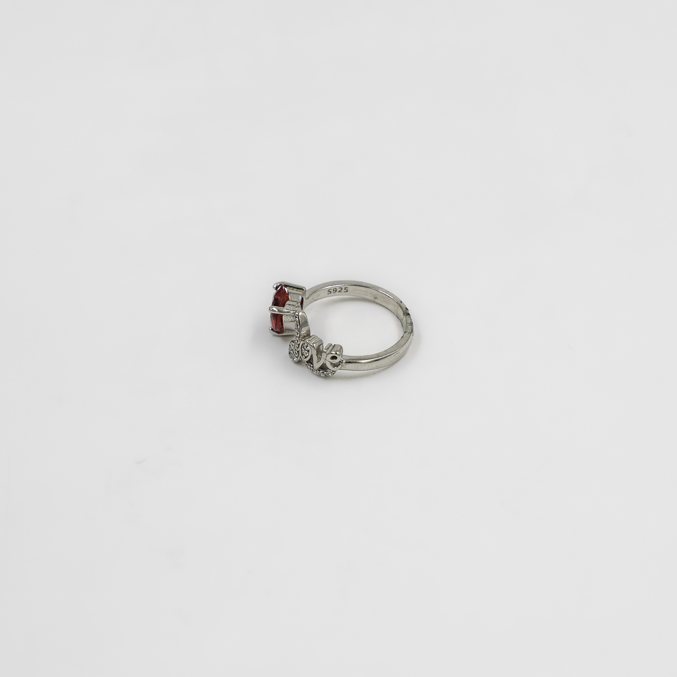 Silver Tone Metal Red Heart With Love Embellishment Ring