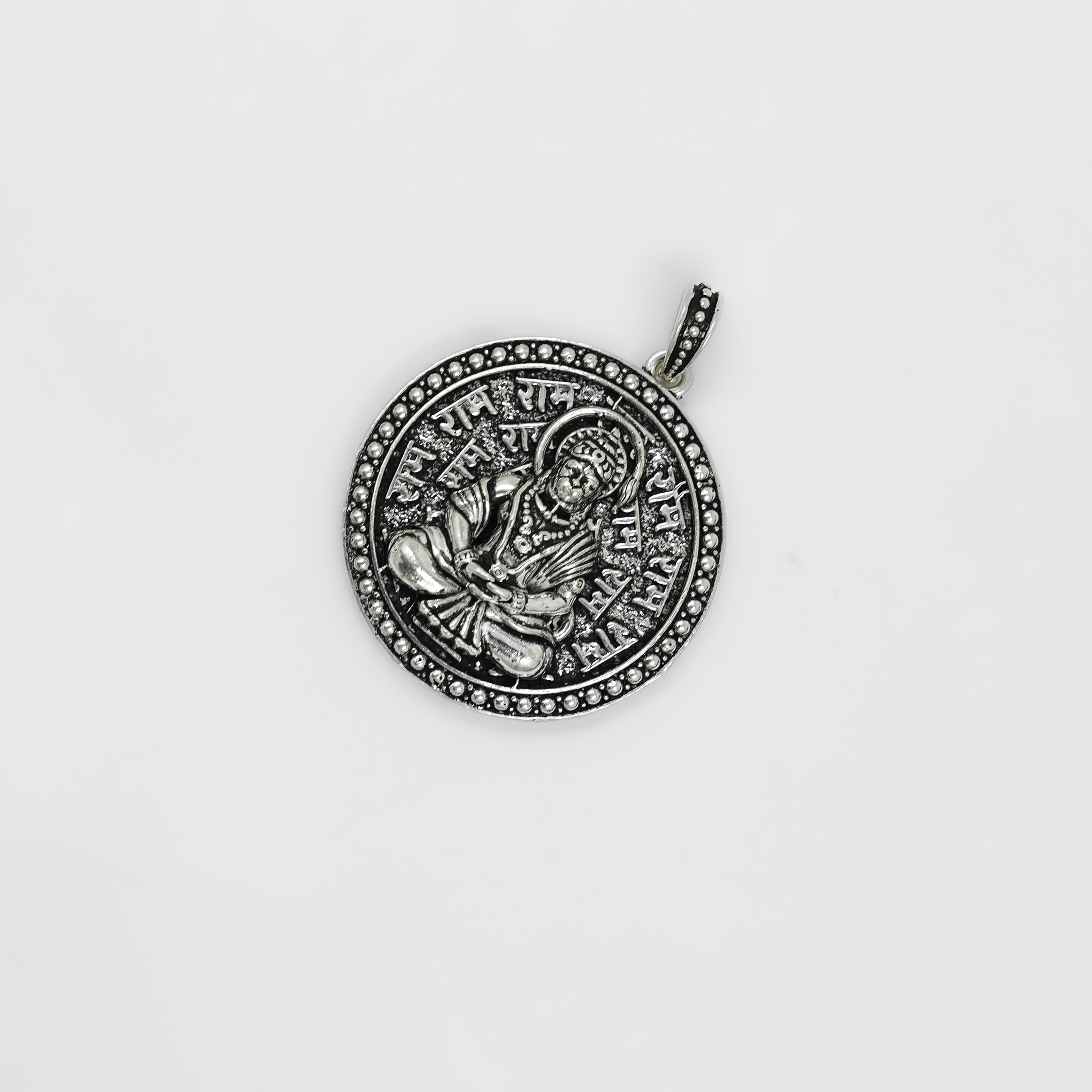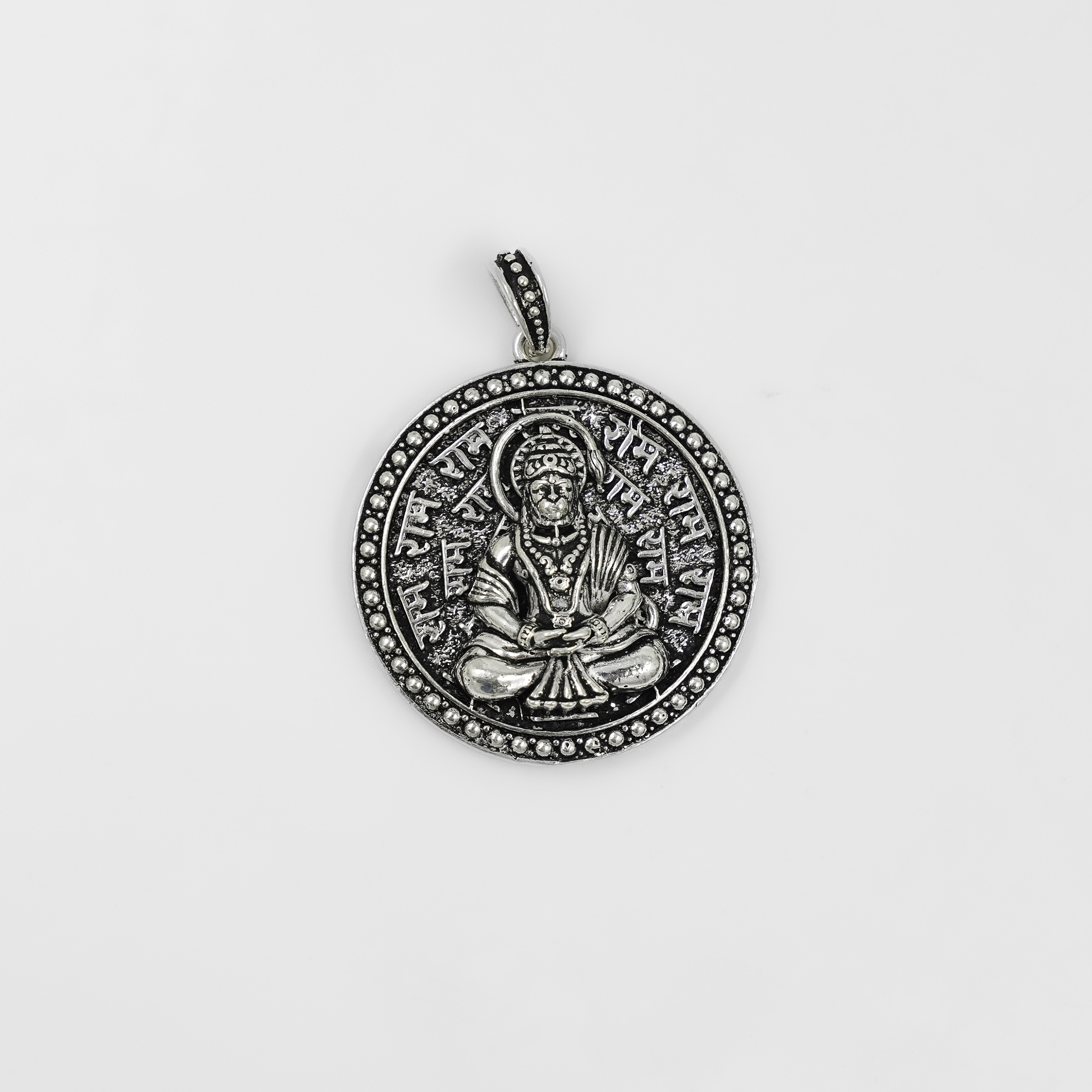 Sterling Silver Hanuman Deity Engraved Round Pendant Jewellery