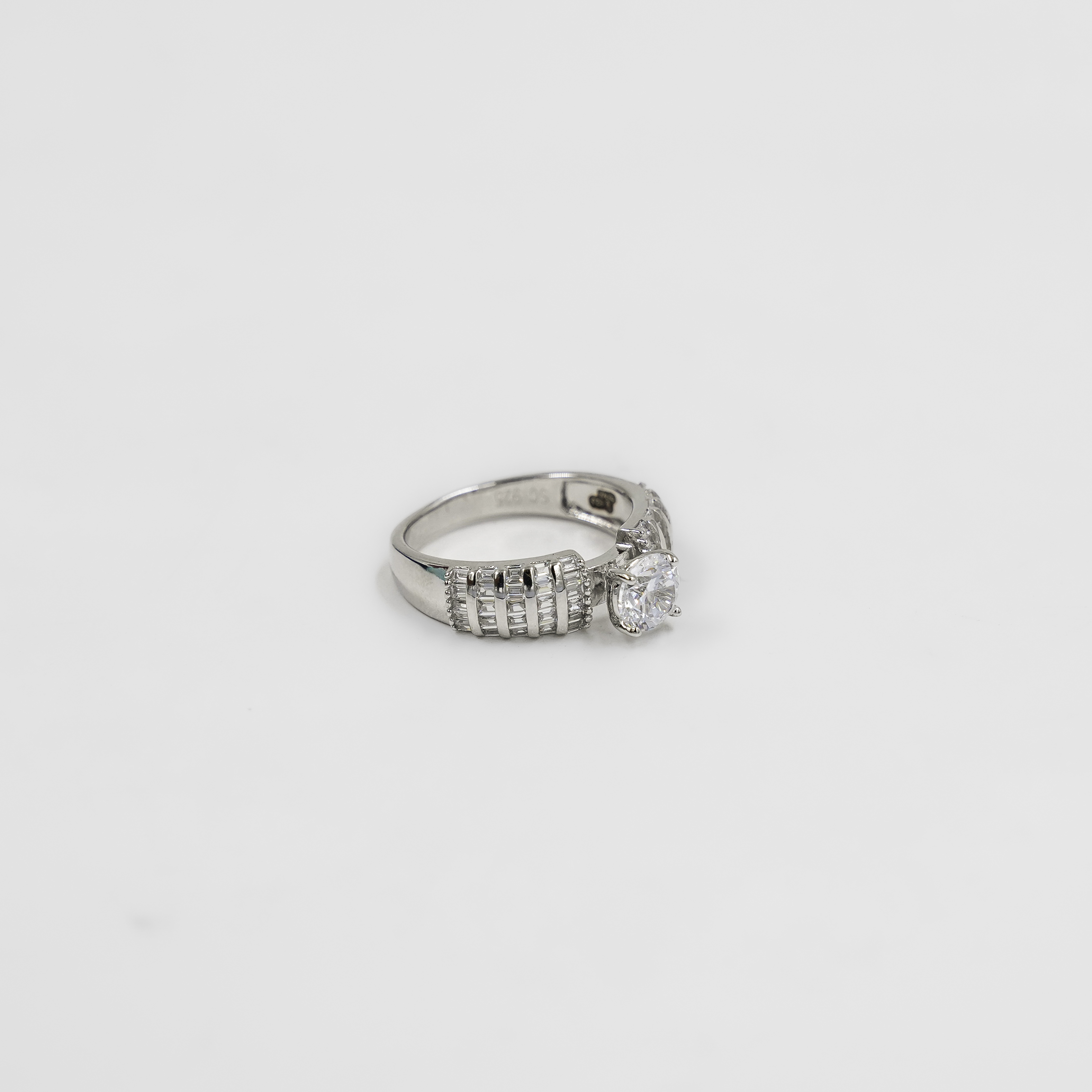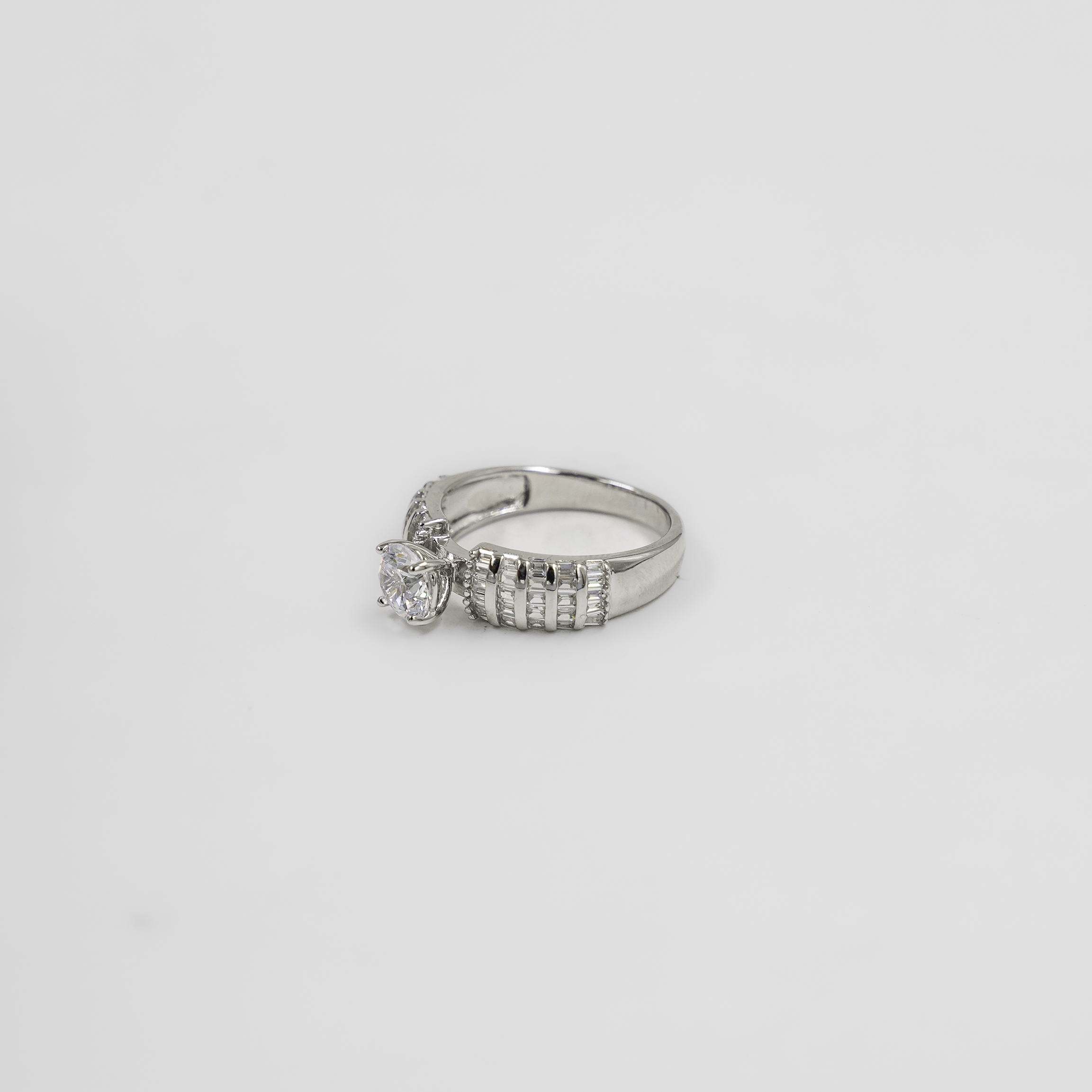 Sterling Silver Modern Design Ring with Round Diamond Stone