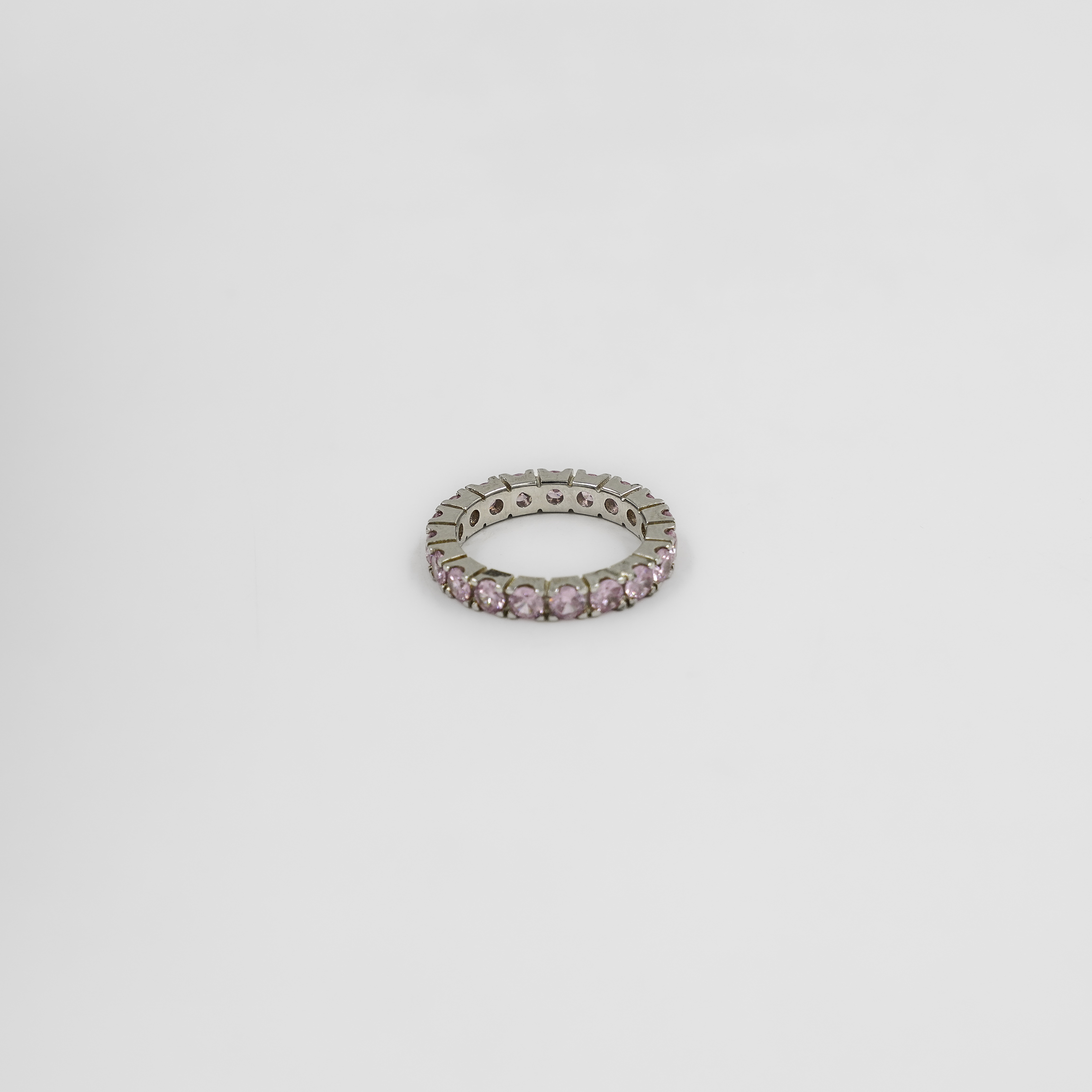 Sterling Silver Pink Stone Set Eternity Ring Jewellery Women
