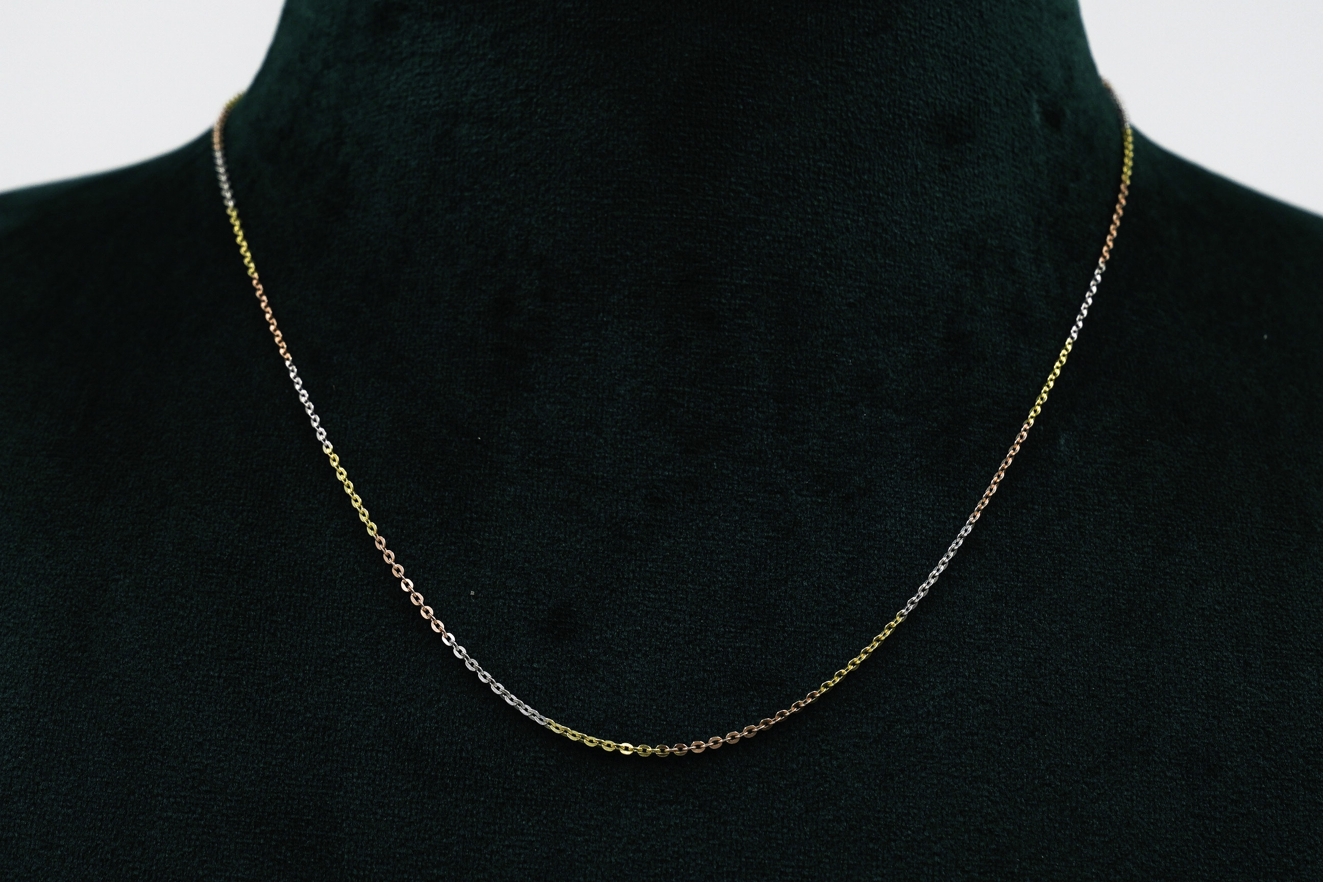 Elegant tricolor chain necklace, a versatile piece for any occasion. Buy Tricolor Chain Necklace from Raag Silver Jewellery in Hyderabad.