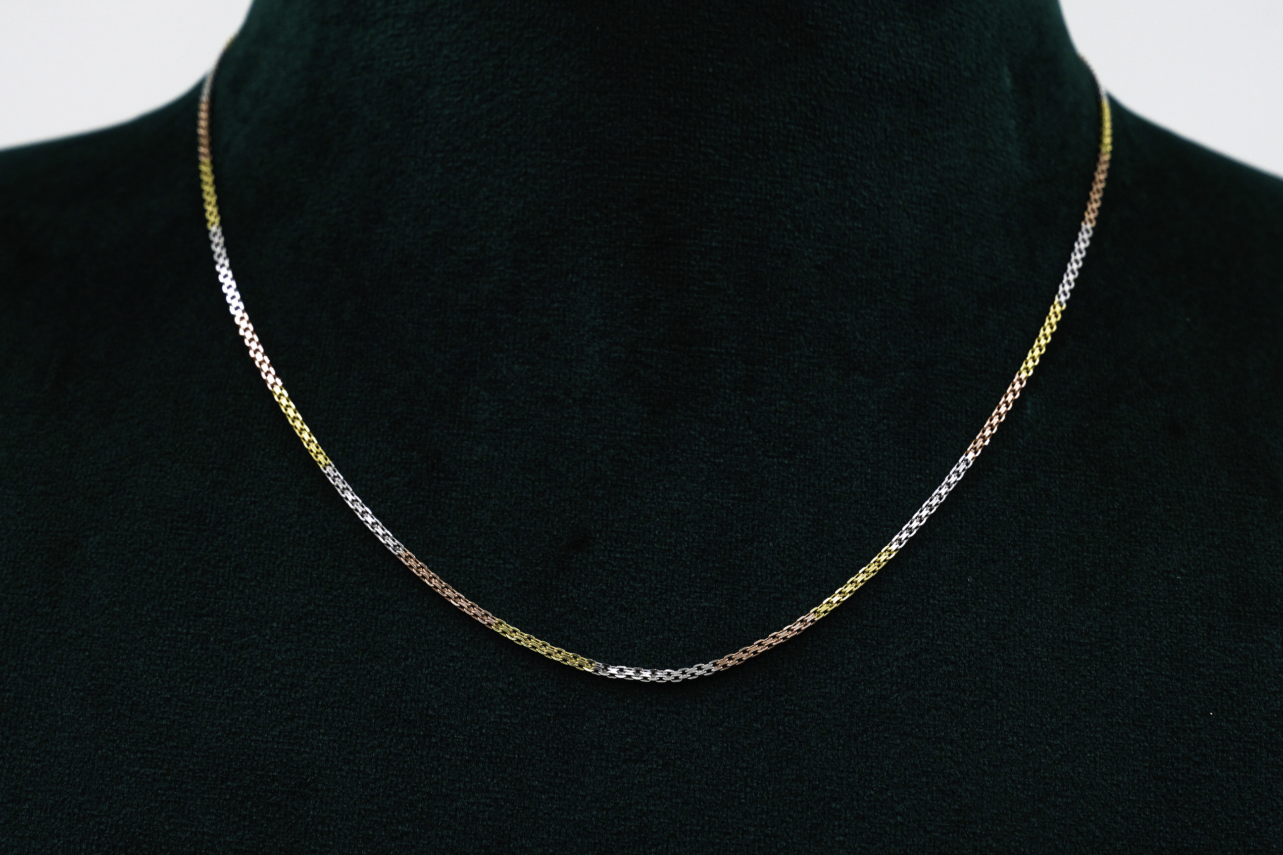 Elegant tricolor silver chain necklace, perfect for everyday wear or special occasions. Buy tricolor silver chain from Raag Silver Jewellery in Hyderabad.