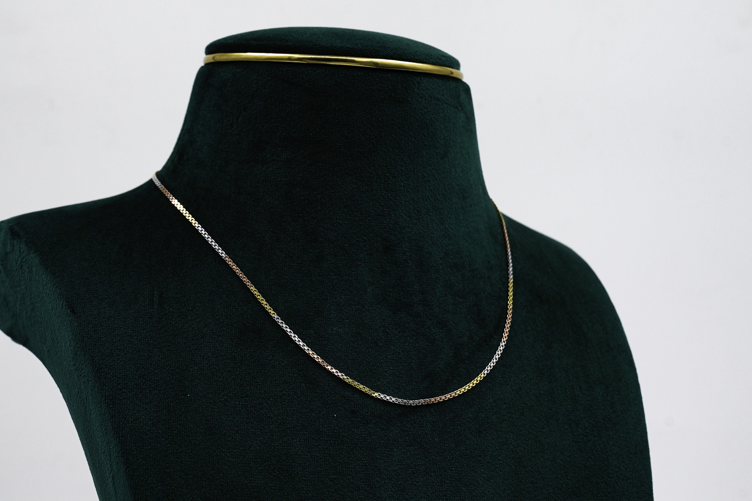 Elegant tricolor silver chain necklace, perfect for daily wear or special occasions. Buy tricolor silver chain from Raag Silver Jewellery in Hyderabad.