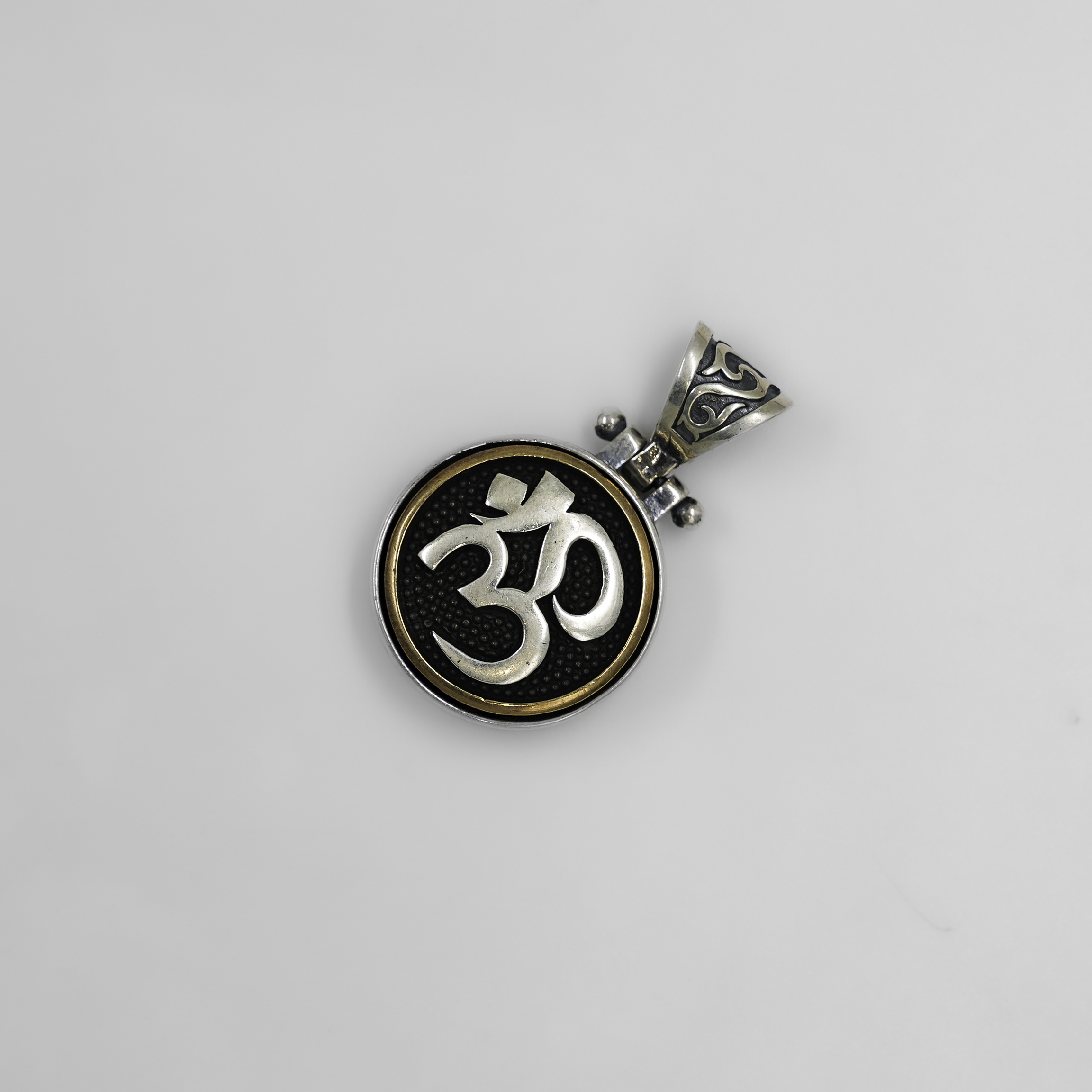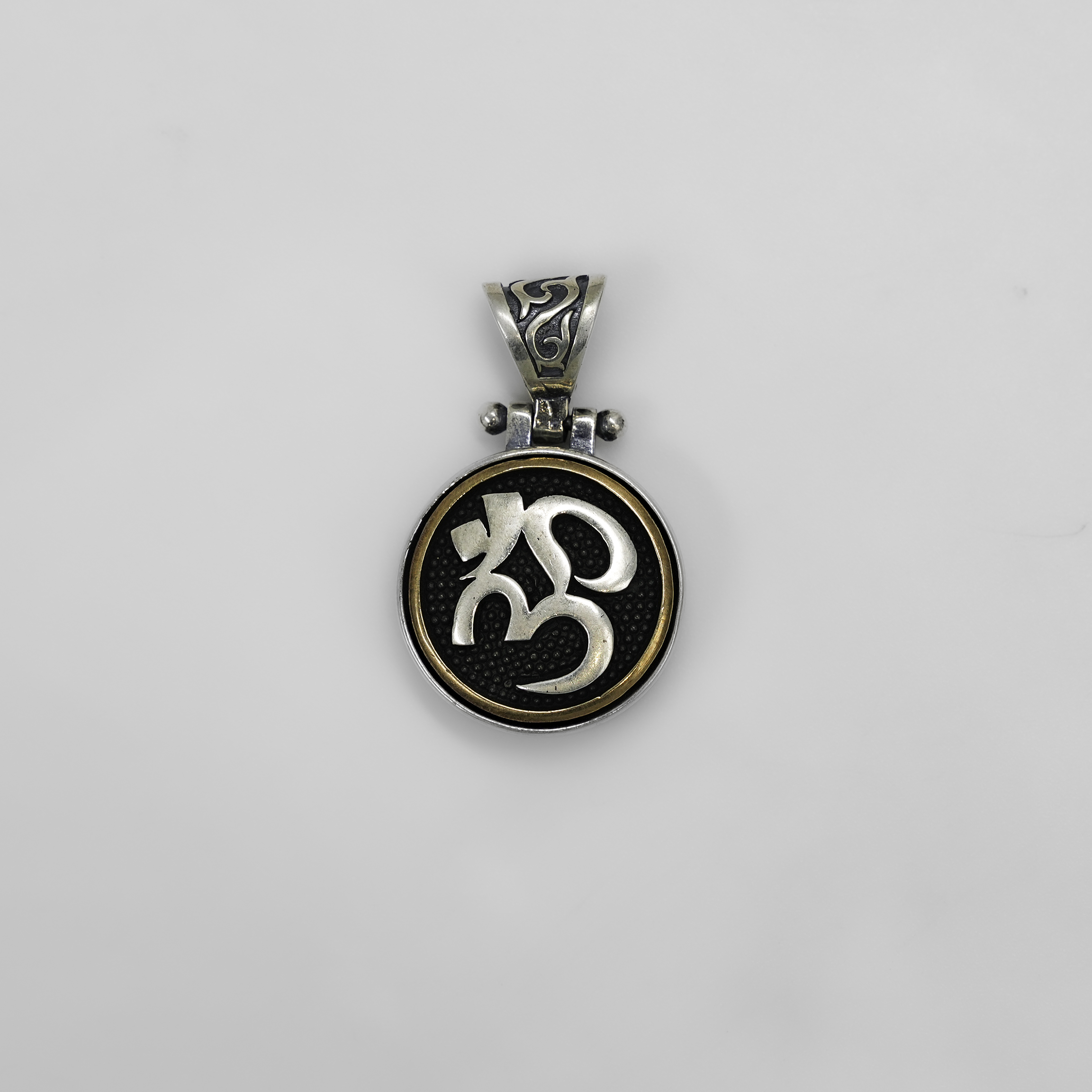 Vintage Sterling Silver Om Symbol Pendant Black And Gold Polished Silver