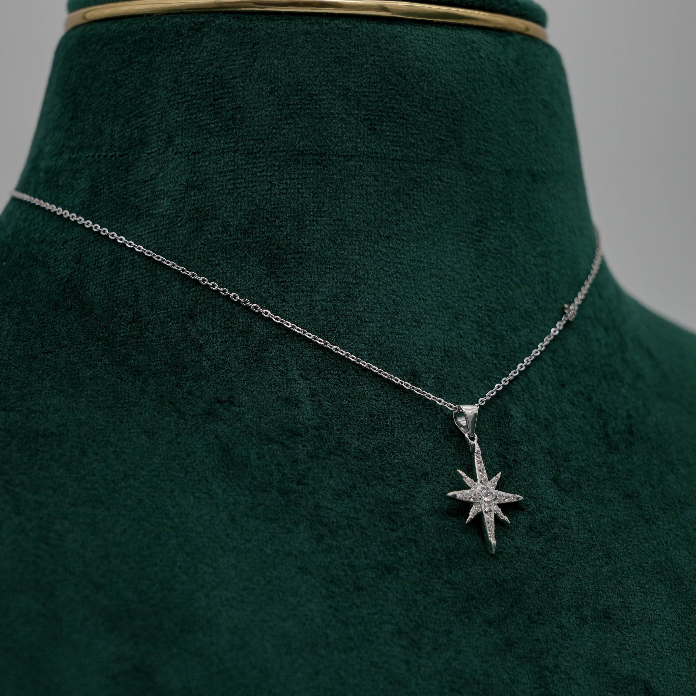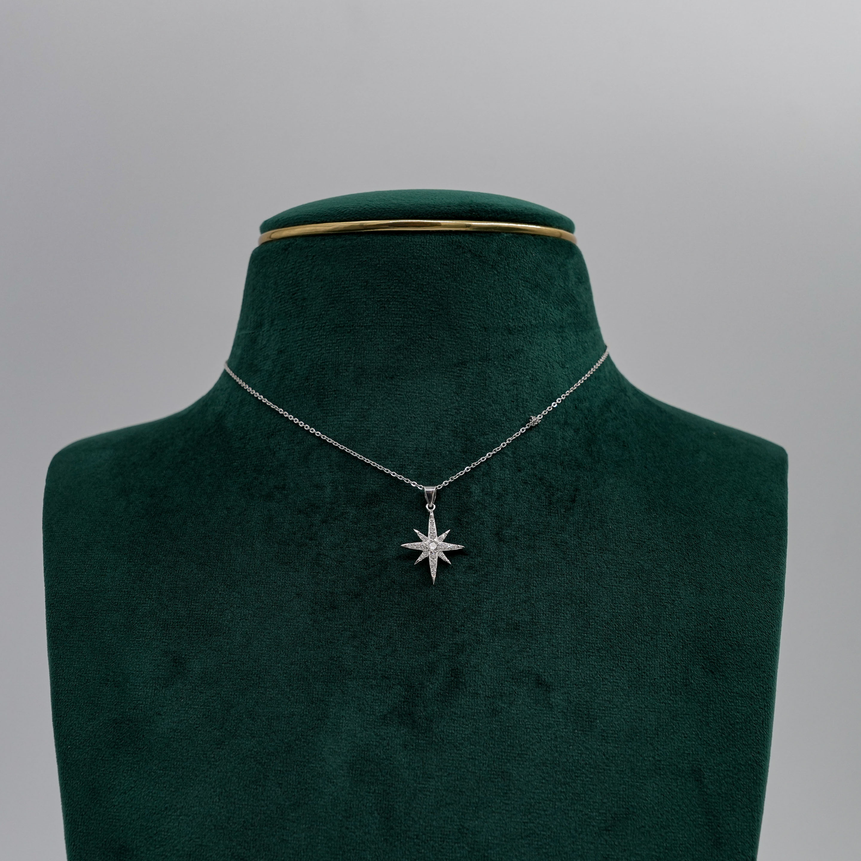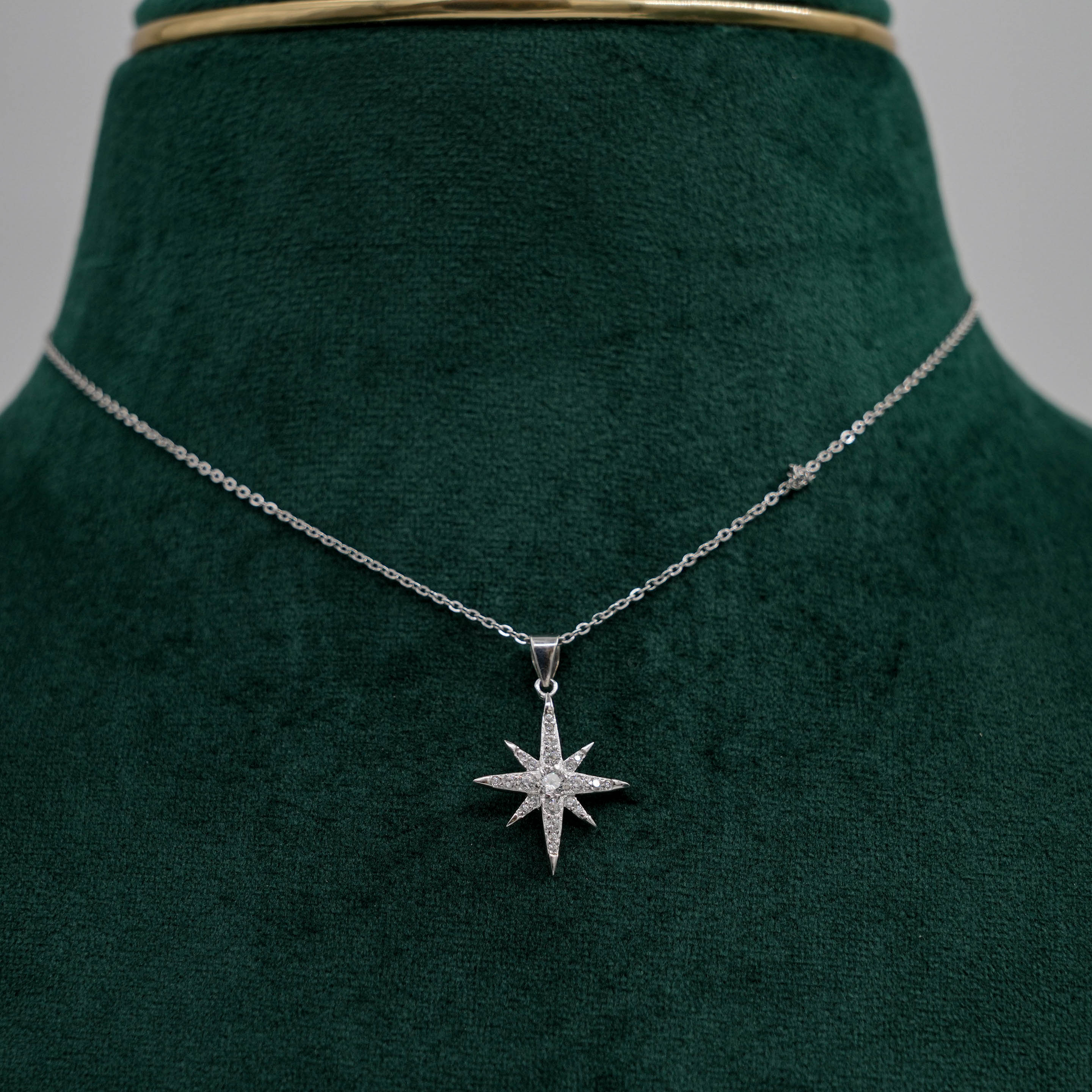 Sterling silver star pendant Necklace with cubic zirconia stones, ideal for everyday wear. Buy silver star Necklace from Raag Silver Jewellery in Hyderabad.