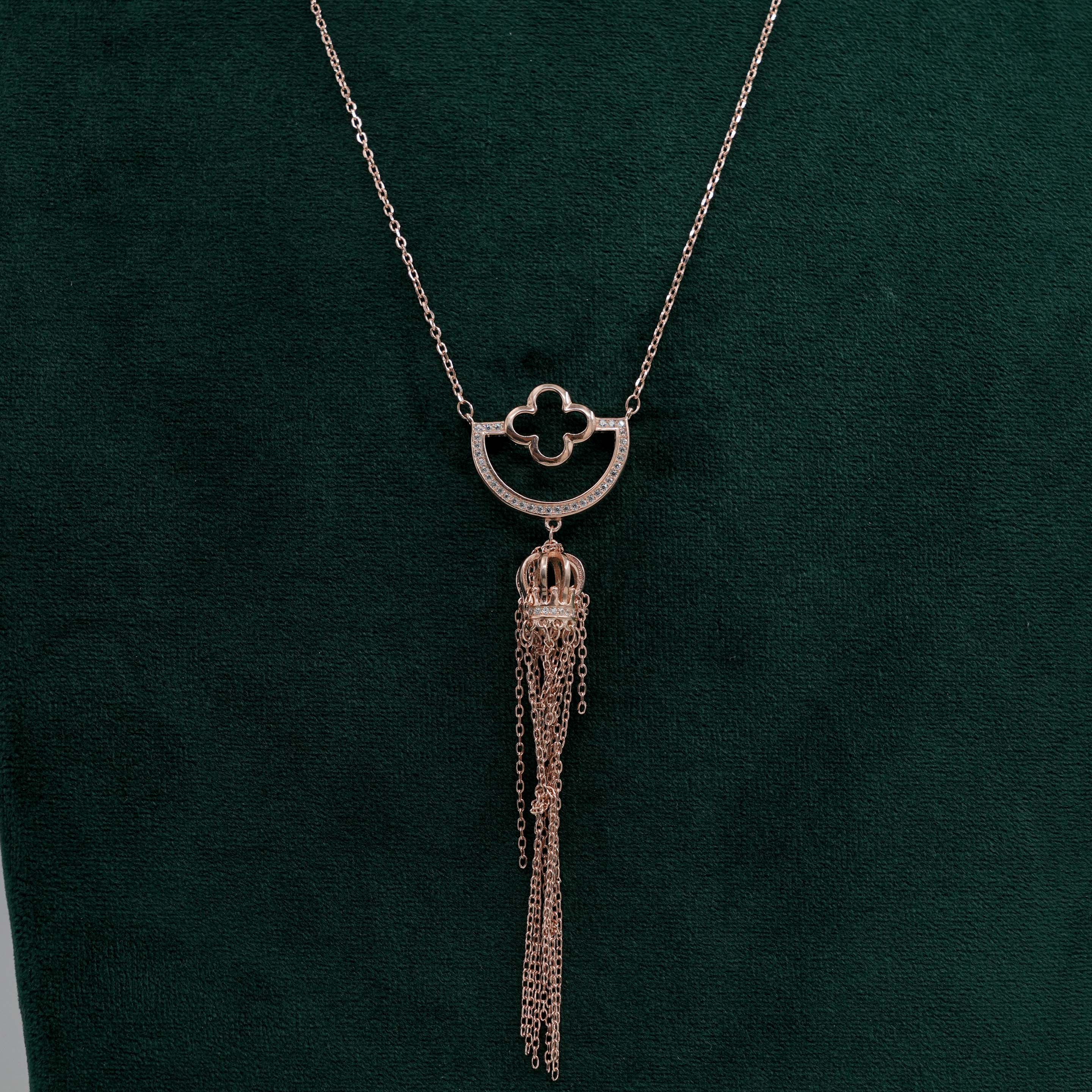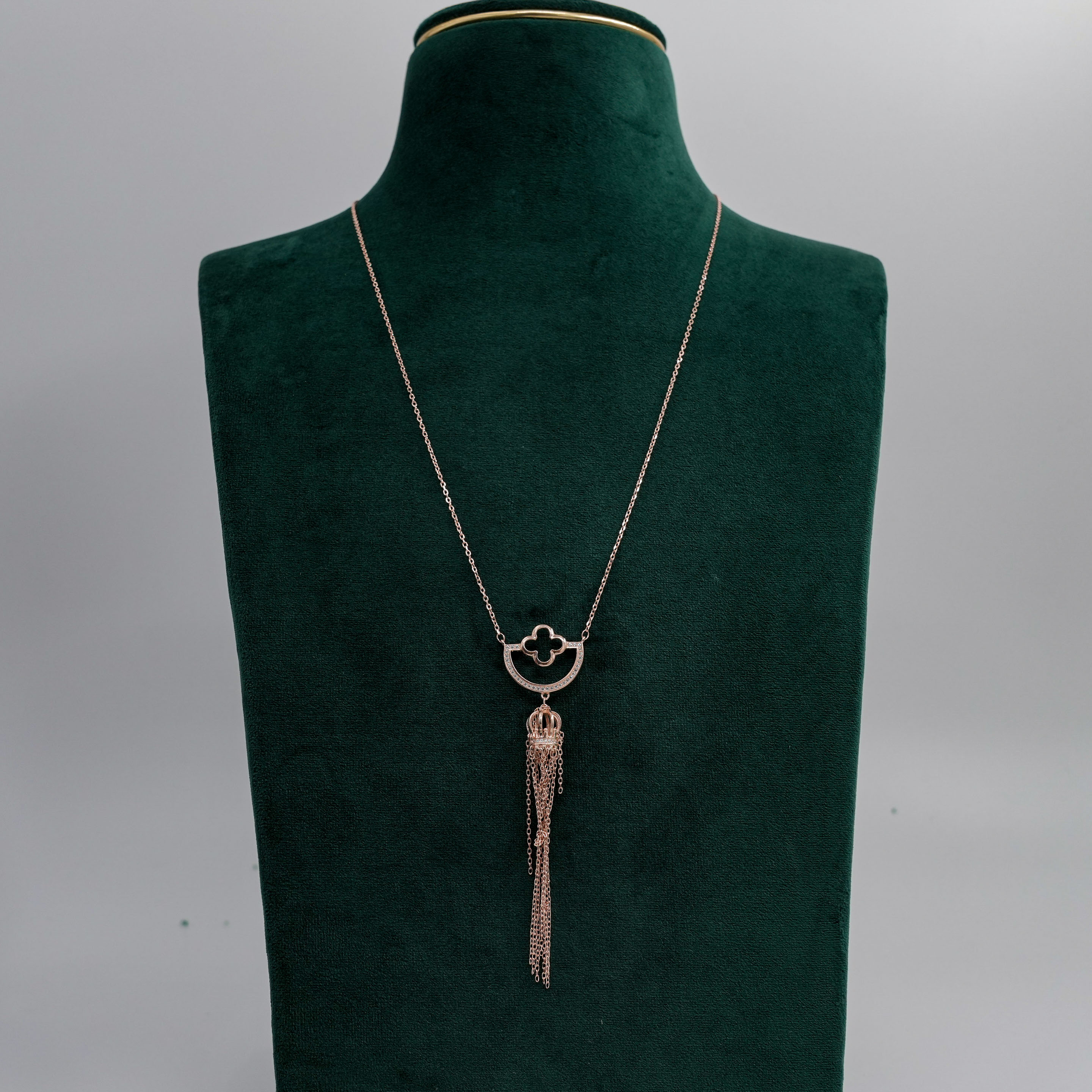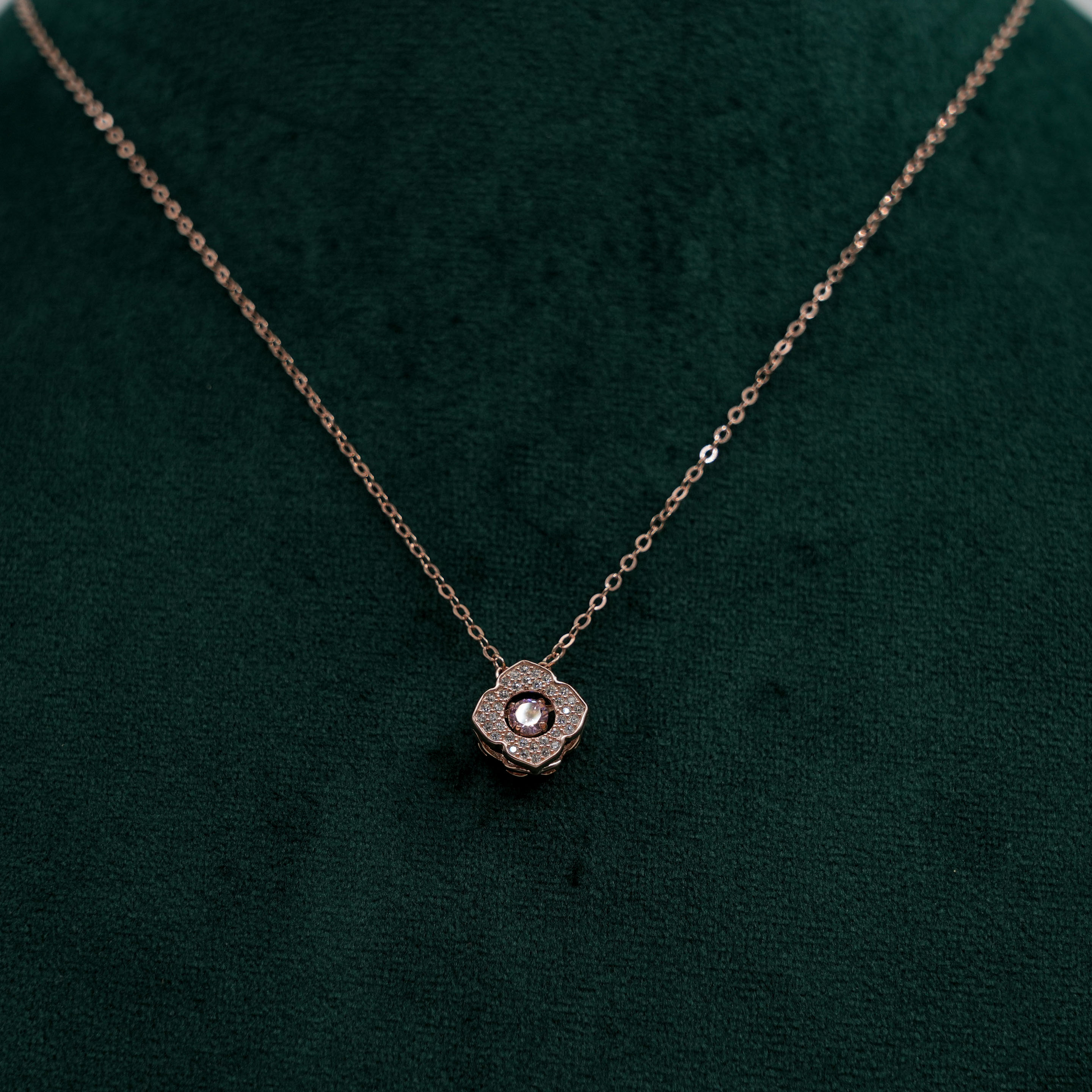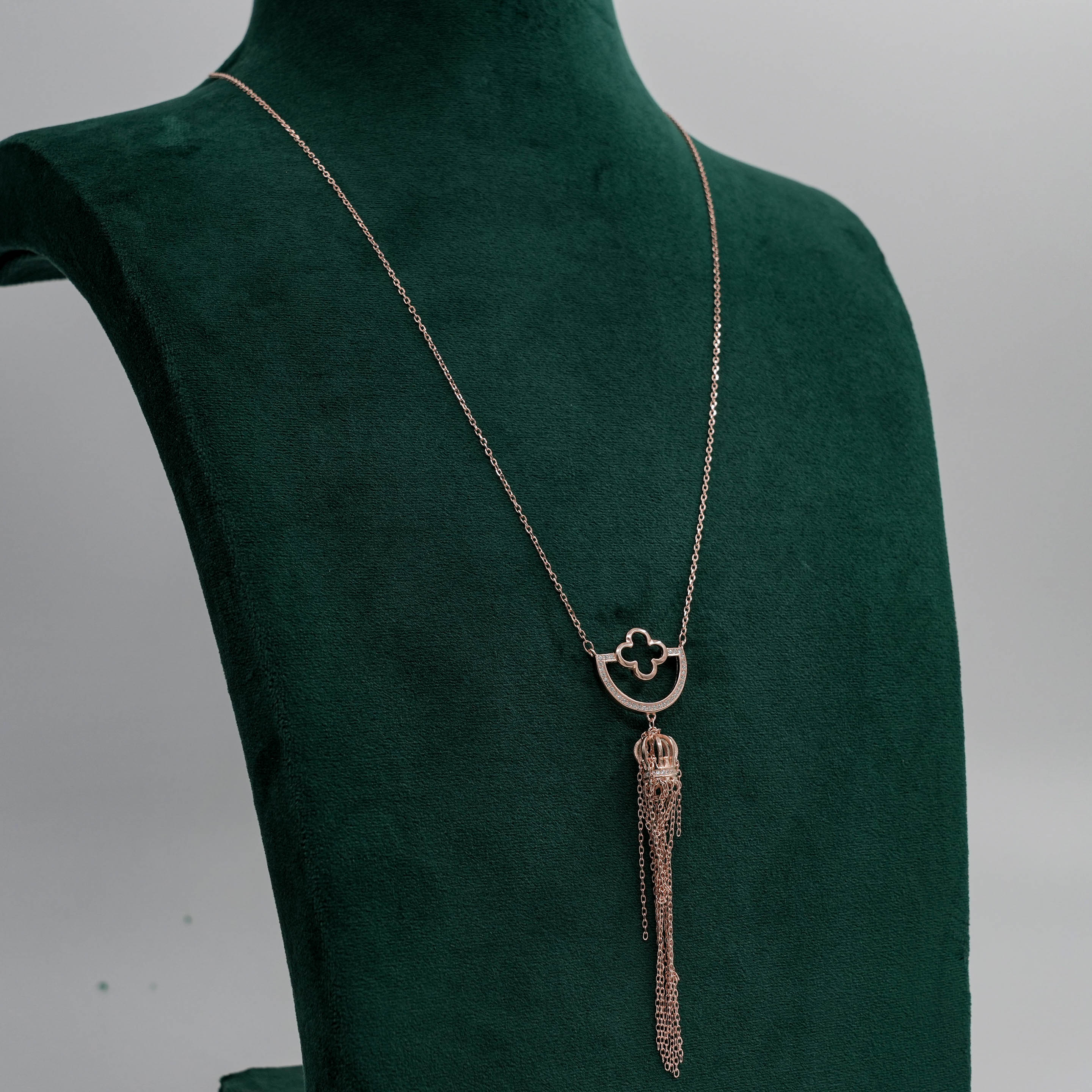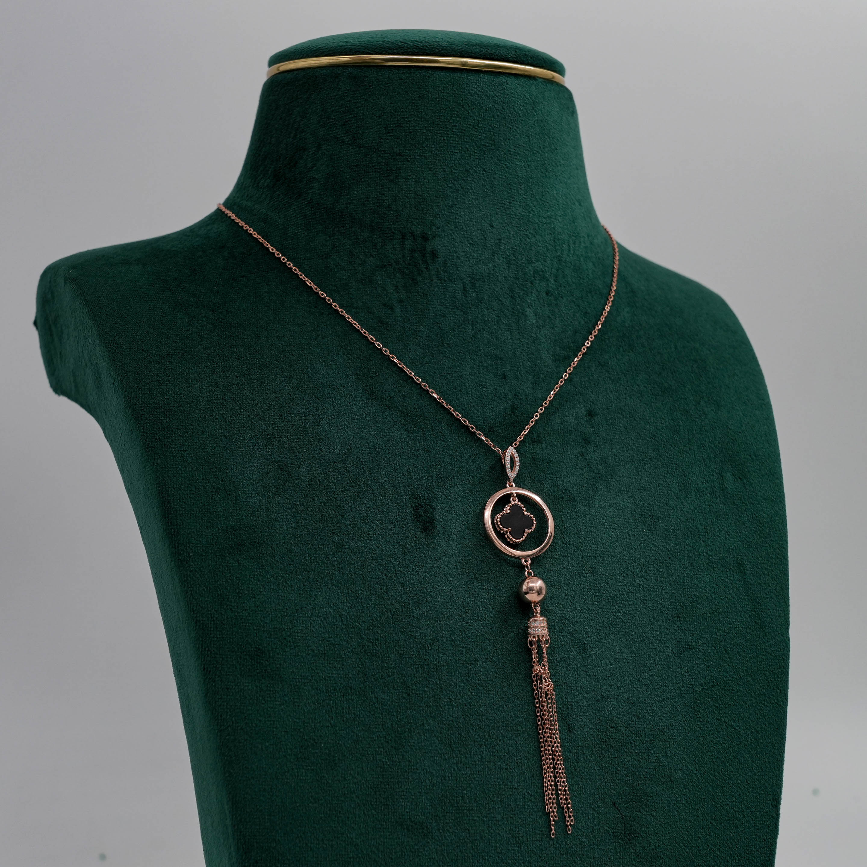 Stylish clover pendant Necklace with rose gold chain. A unique and elegant jewellery piece. Buy clover pendant Necklace from Raag Silver Jewellery in Hyderabad.