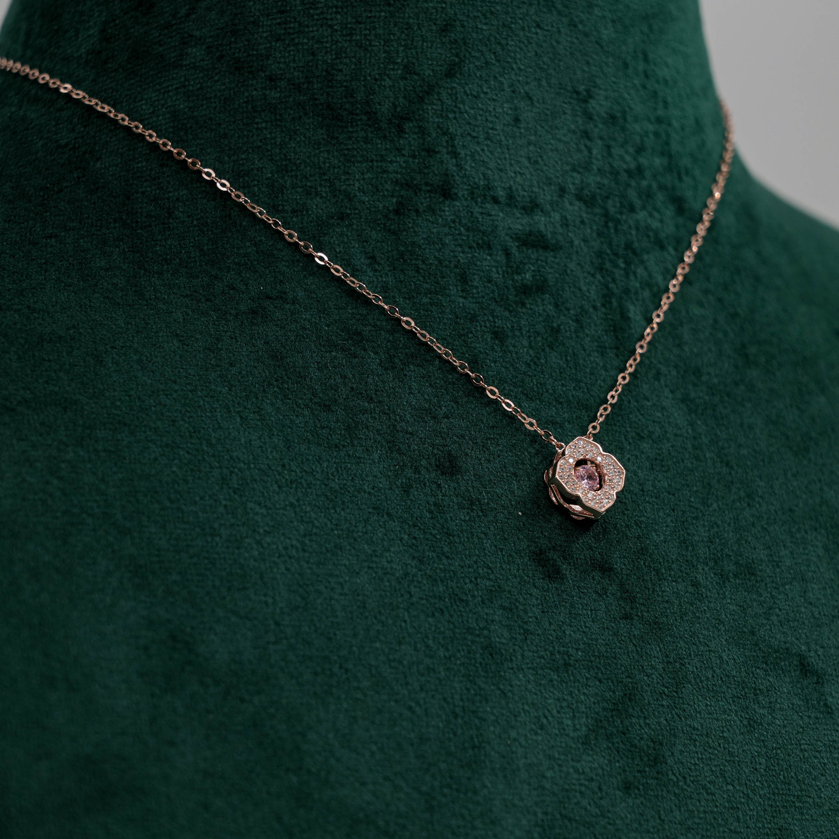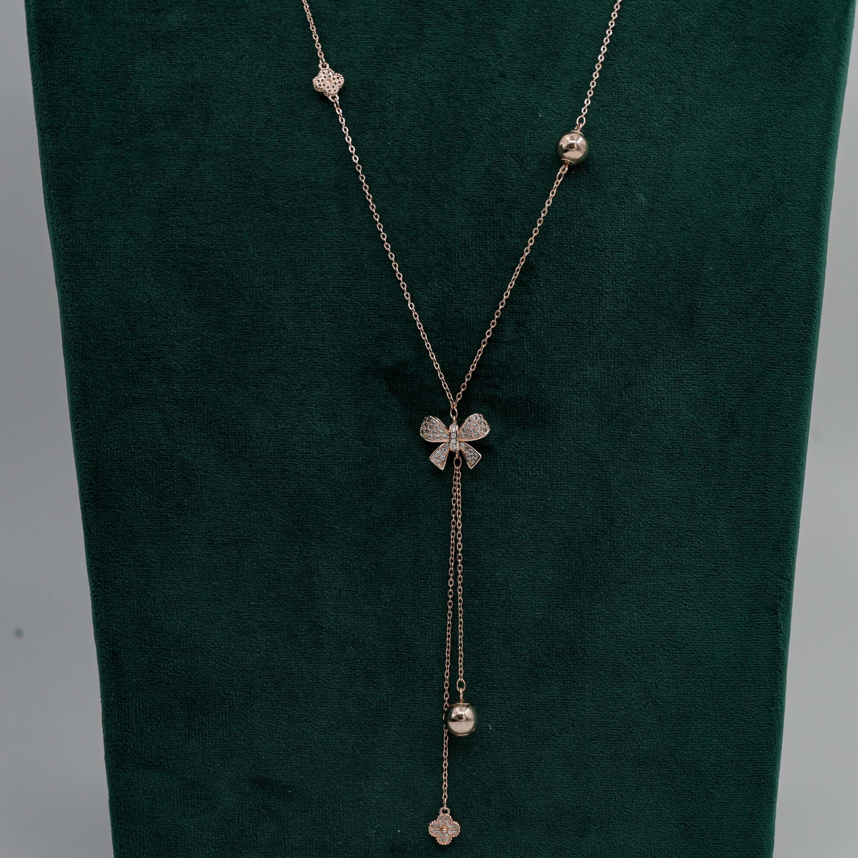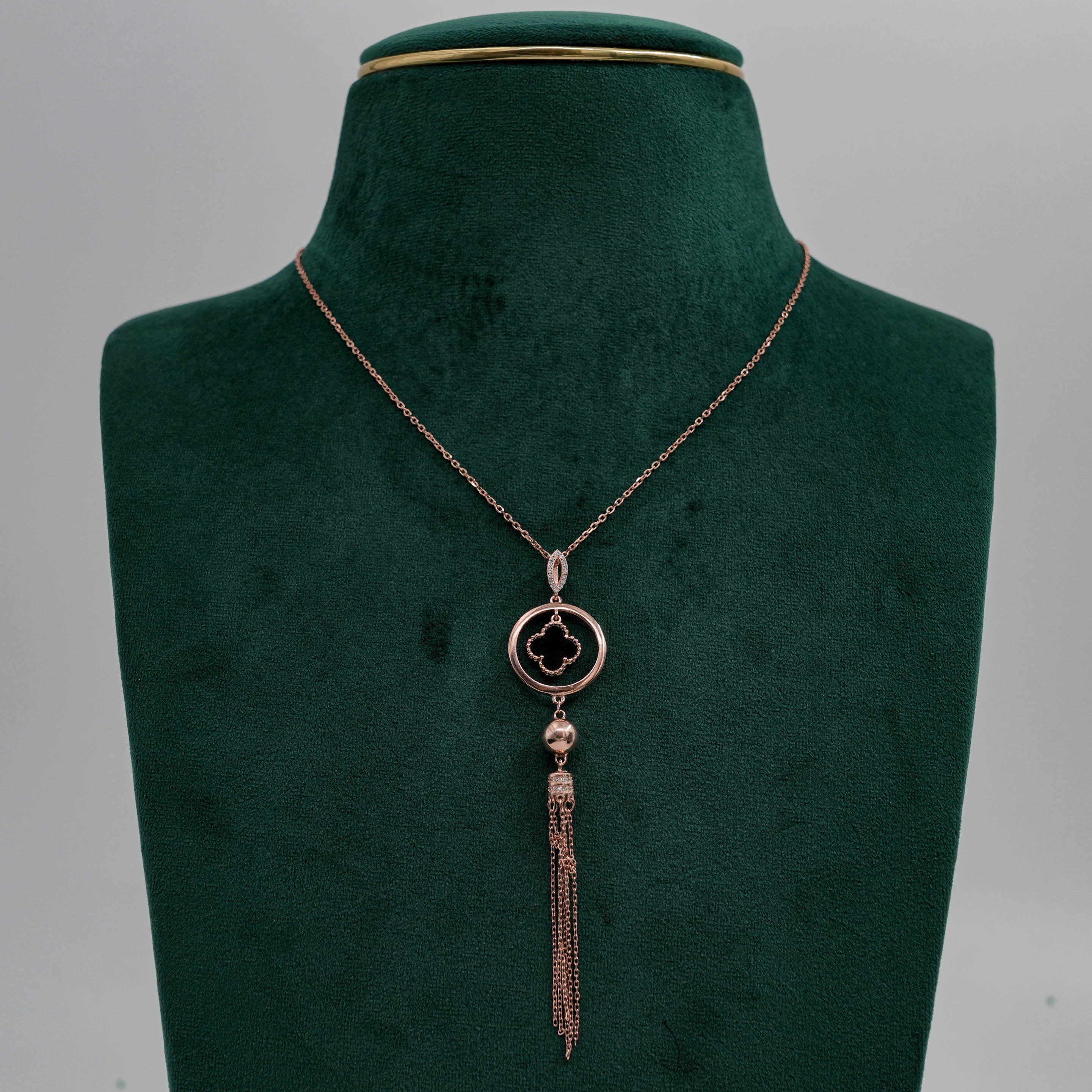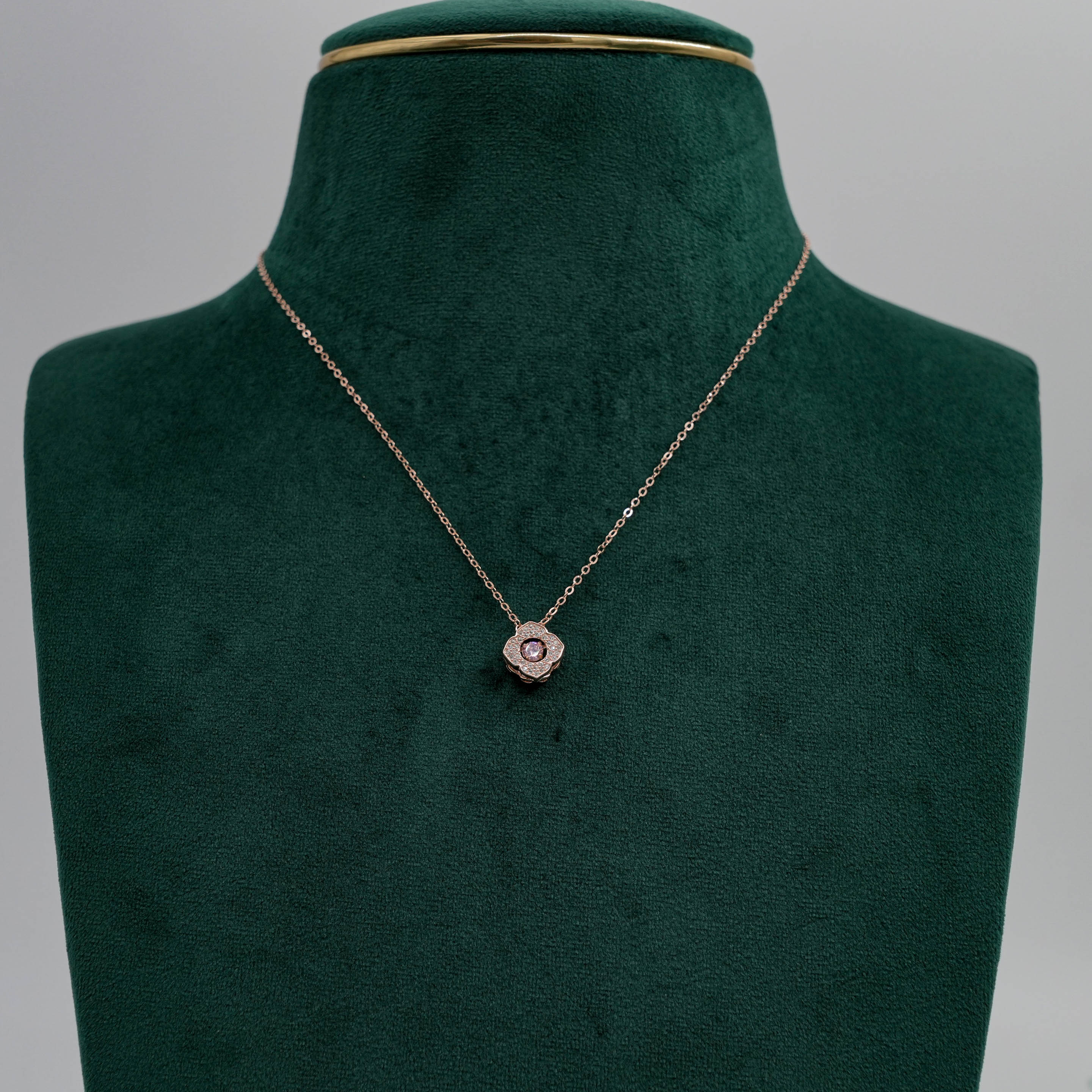 Stylish clover pendant Necklace with rose gold chain. A unique and elegant jewellery piece. Buy clover pendant Necklace from Raag Silver Jewellery in Hyderabad.