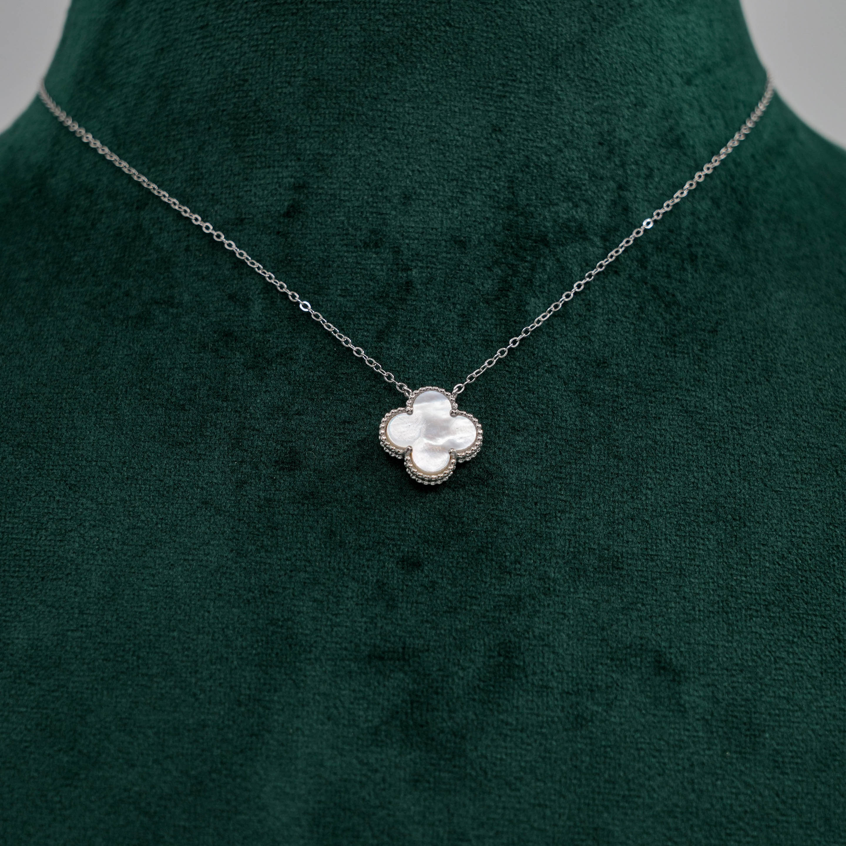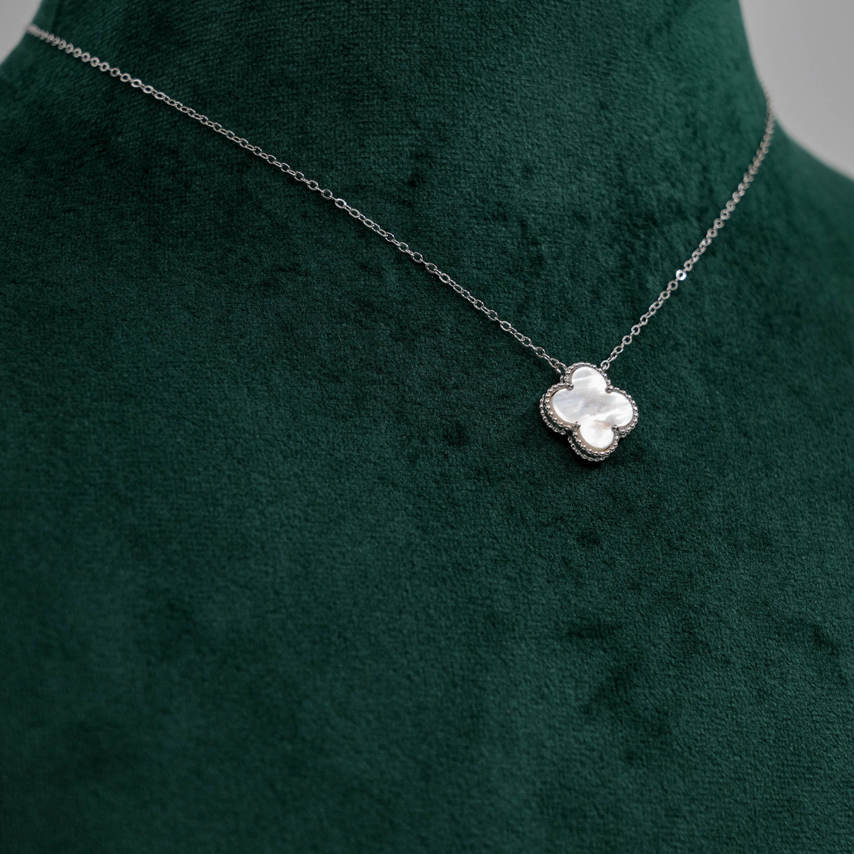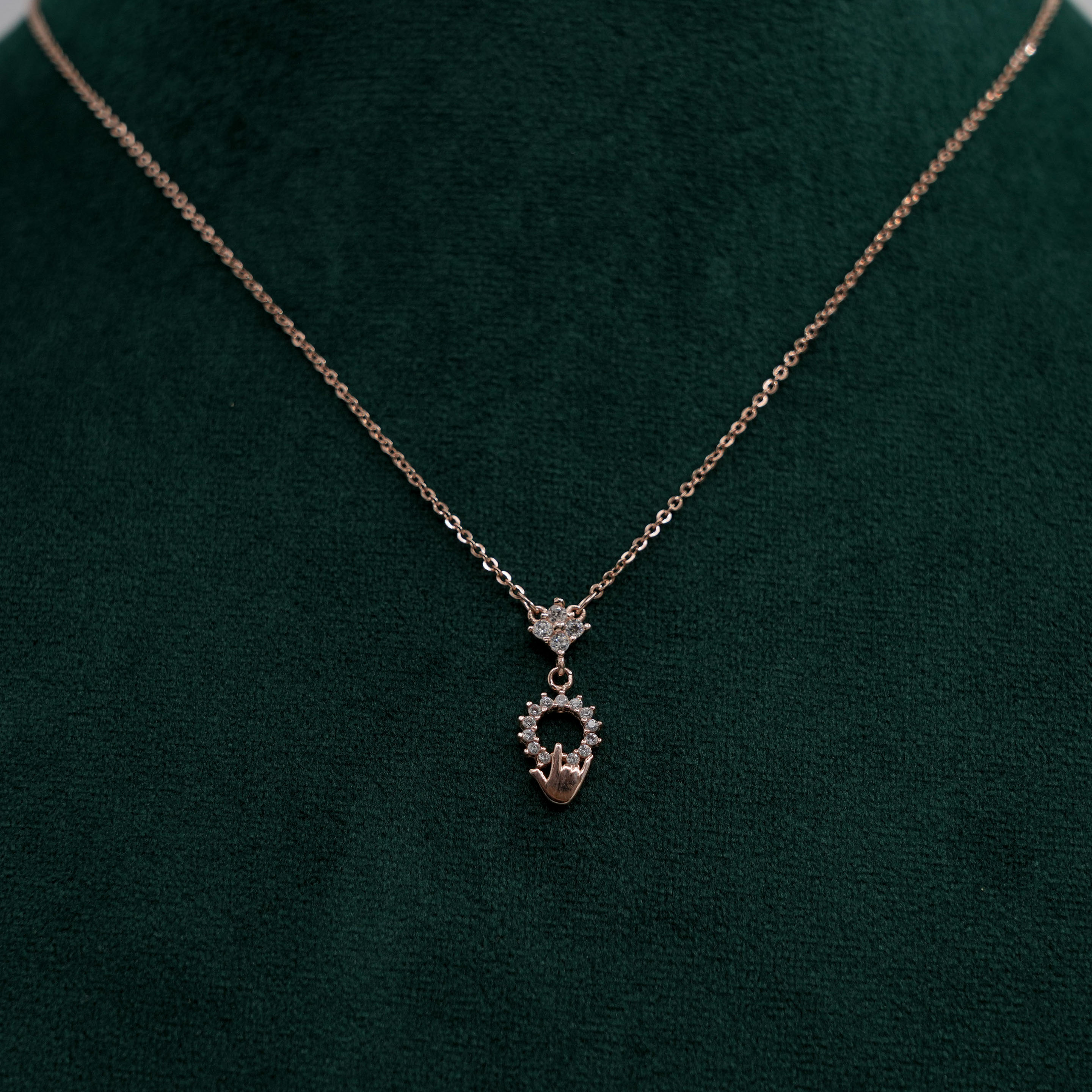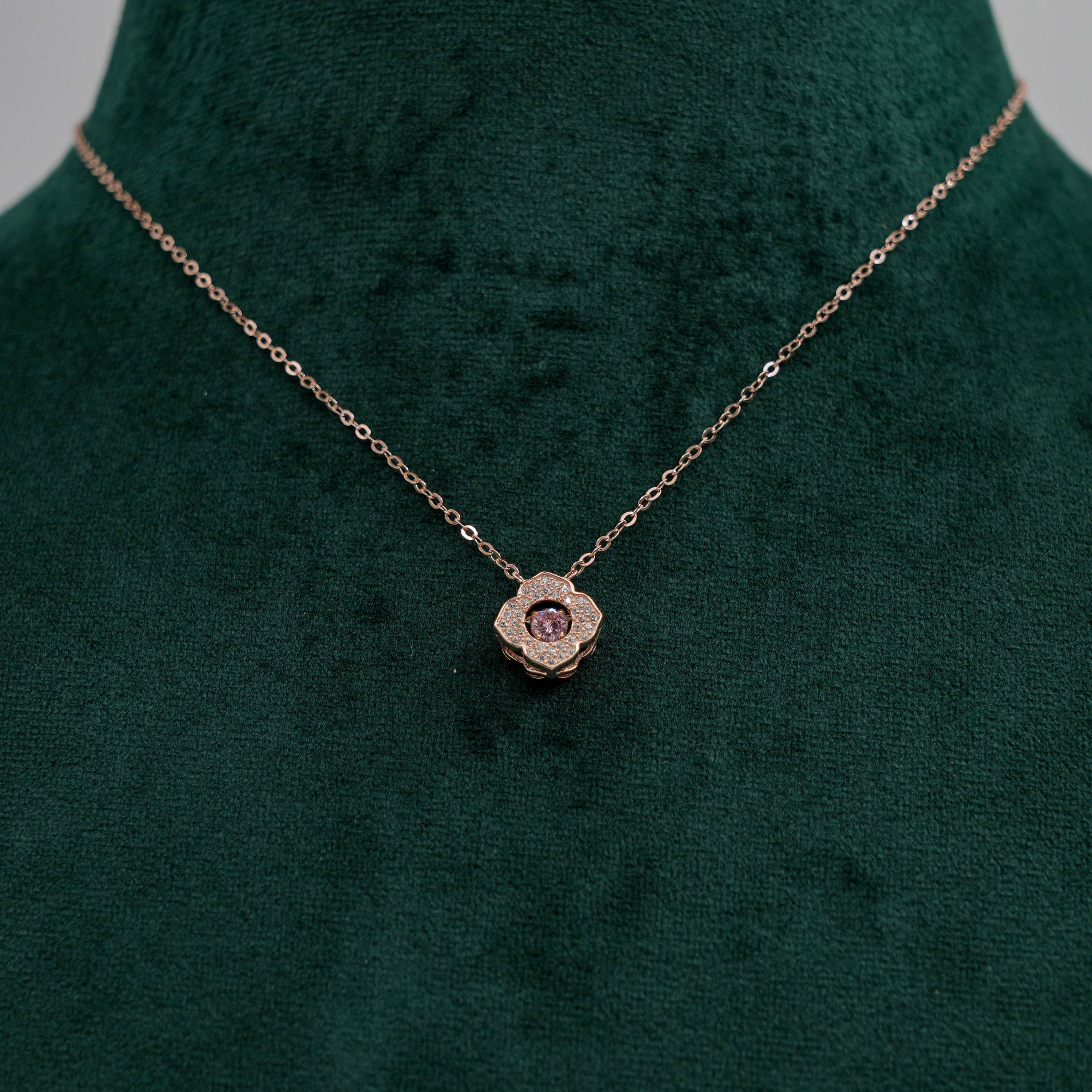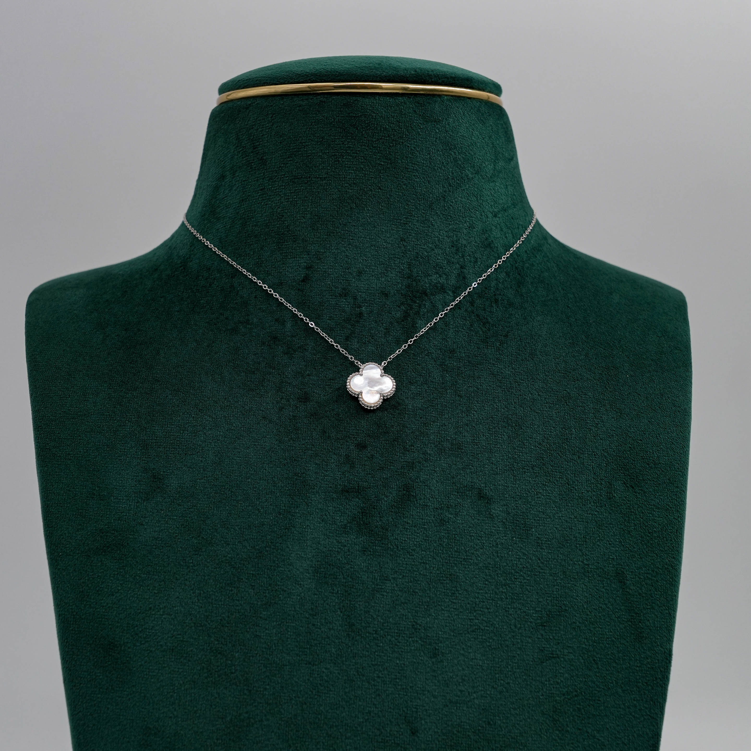 Stylish clover pendant Necklace with rose gold chain. A unique and elegant jewellery piece. Buy clover pendant Necklace from Raag Silver Jewellery in Hyderabad.