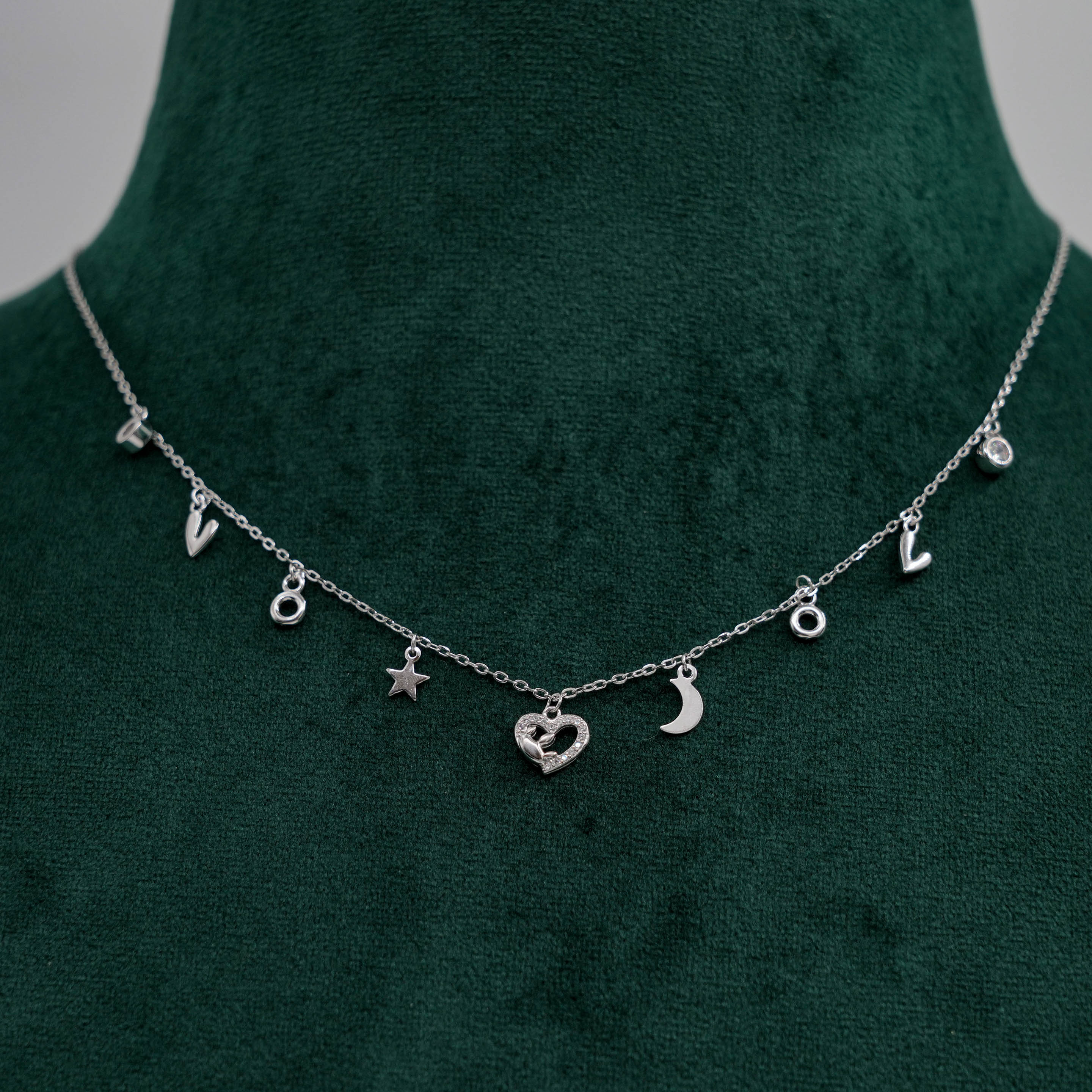 Elegant silver drop Necklace with heart pendant, perfect for everyday wear and special occasions. Buy silver drop Necklace from Raag Silver Jewellery in Hyderabad.