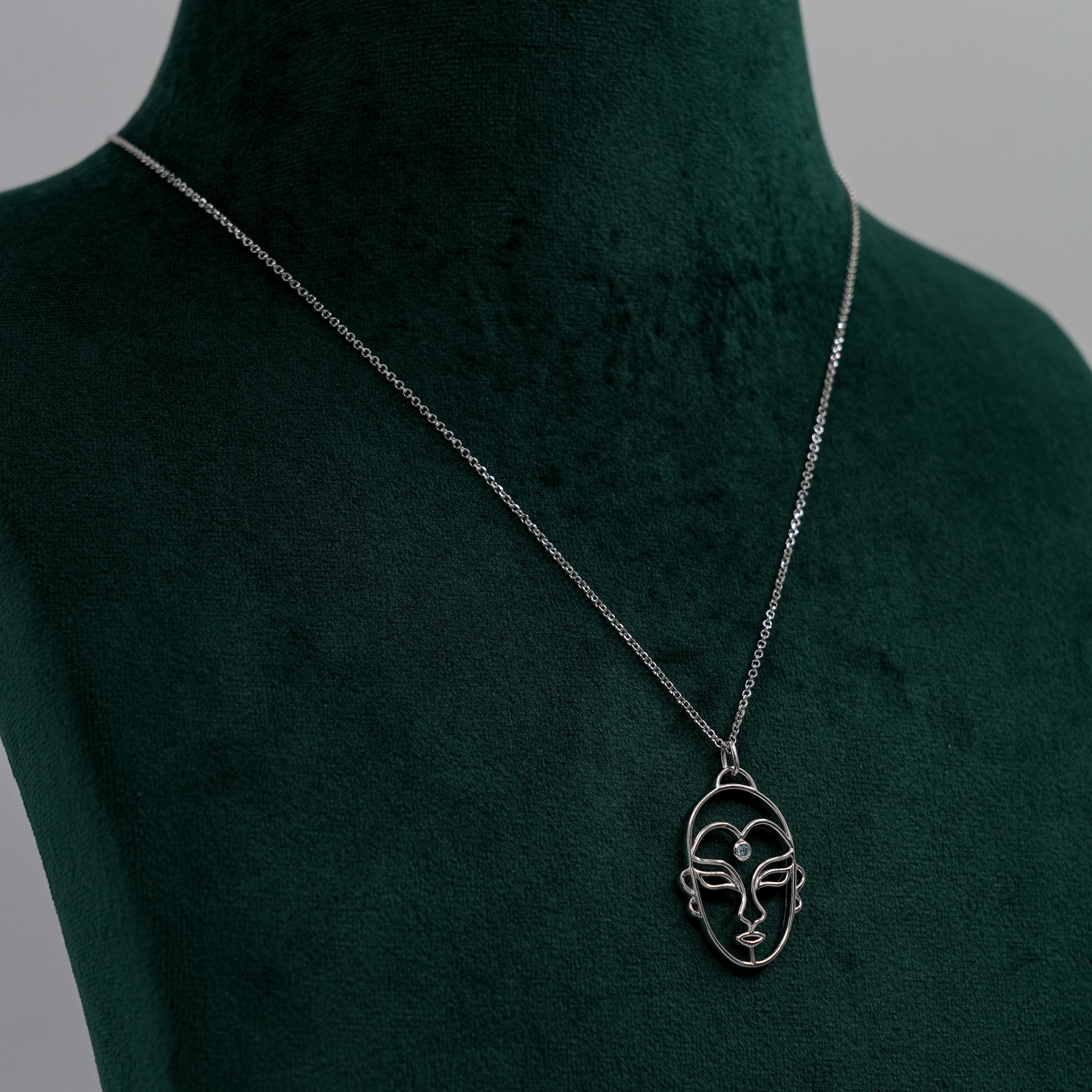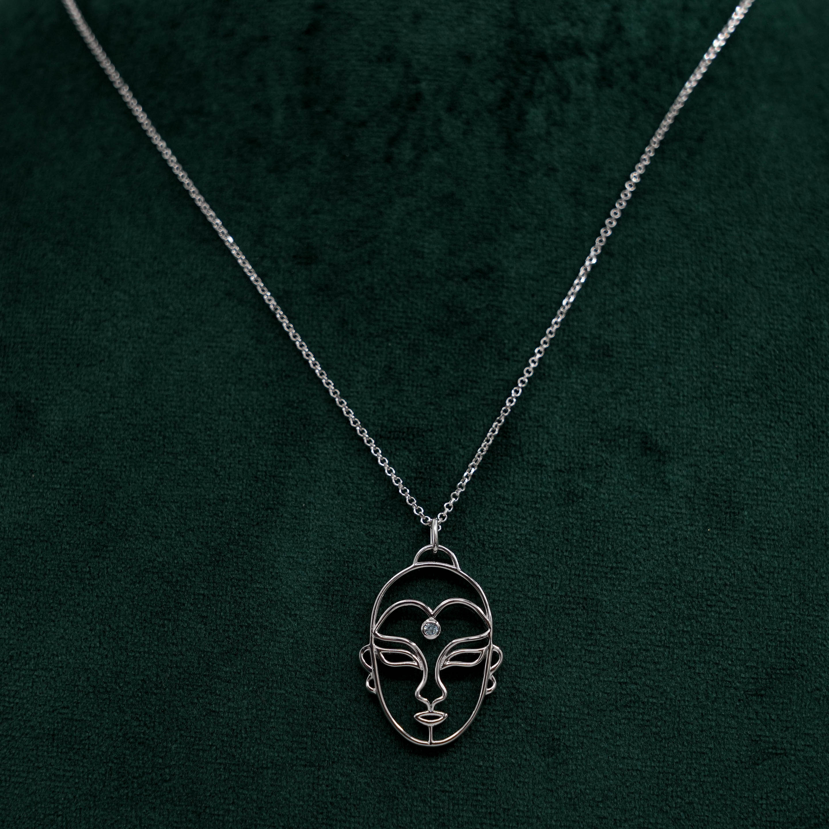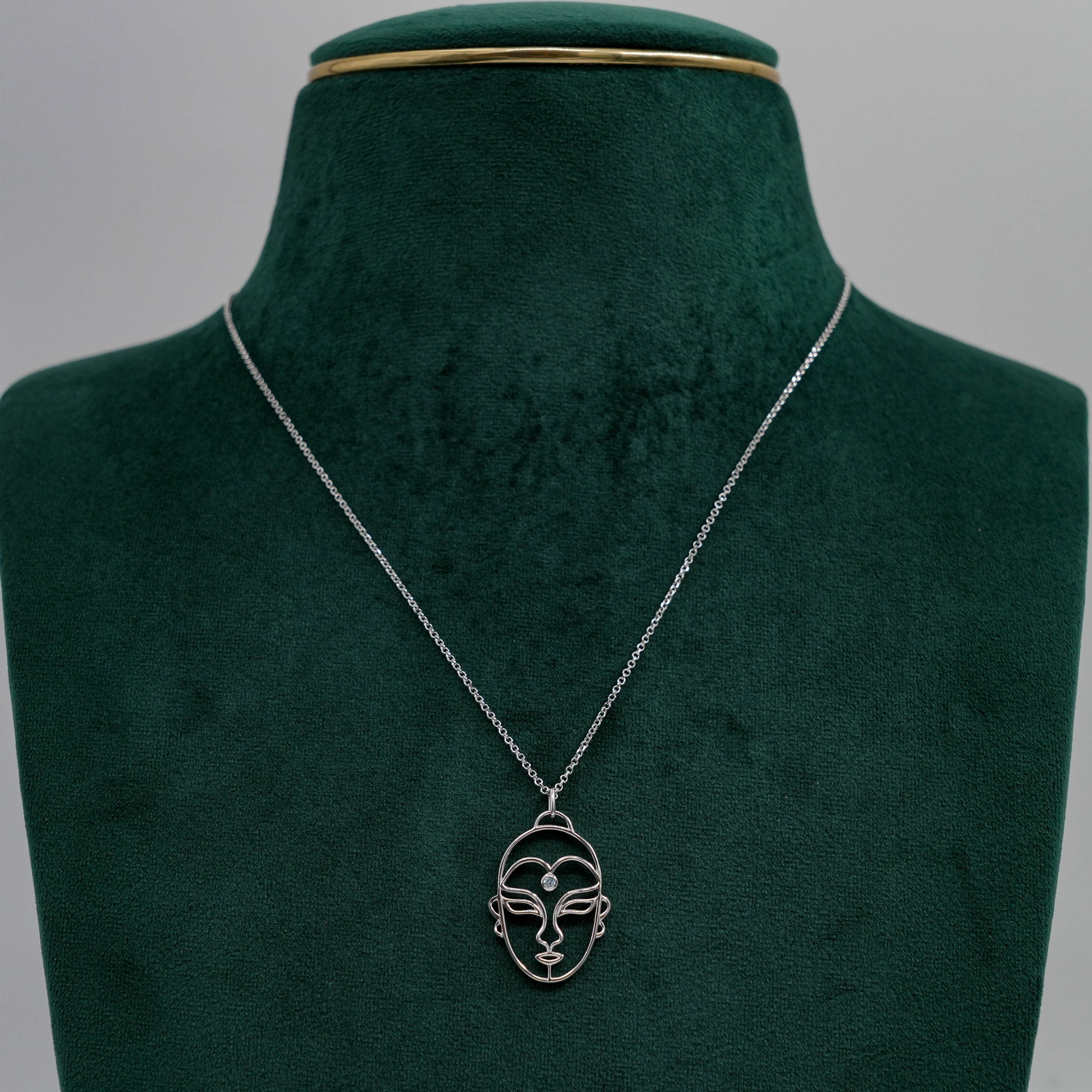 Elegant silver face outline pendant Necklace, perfect for everyday wear or special occasions. Buy silver face Necklace from Raag Silver Jewellery in Hyderabad.