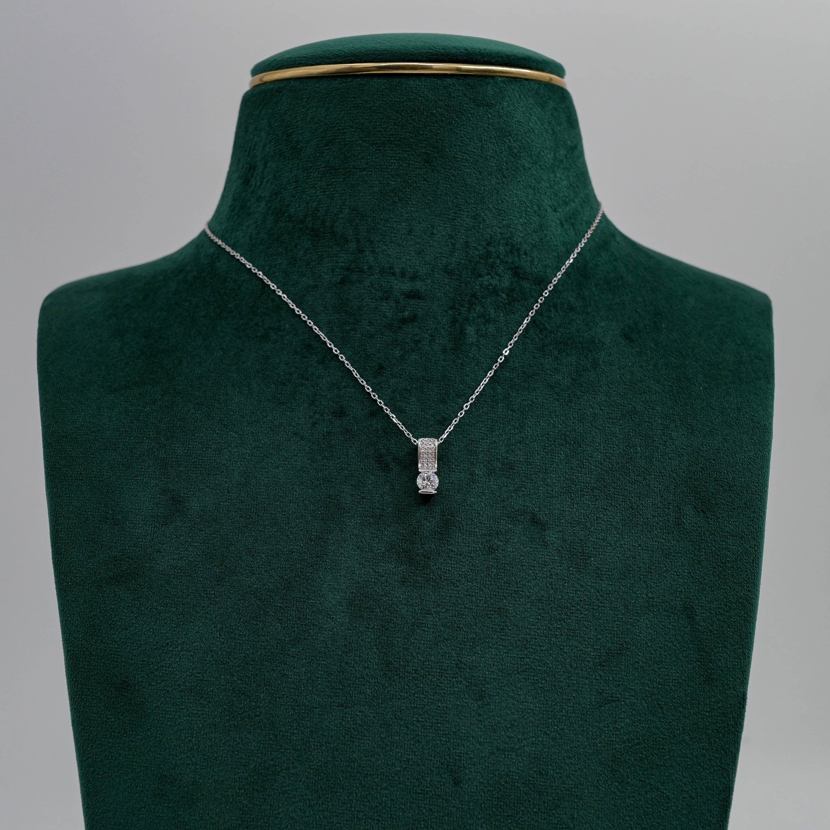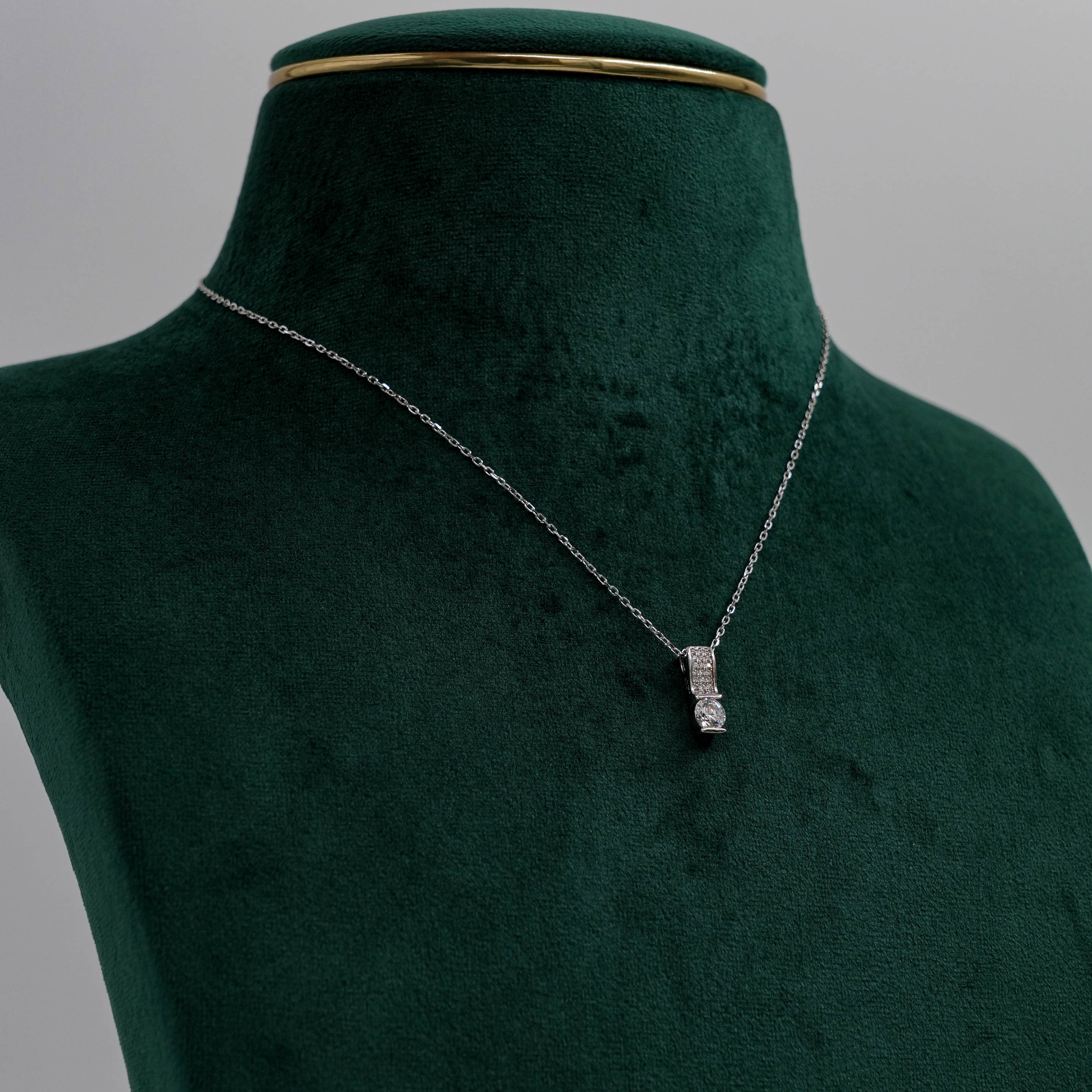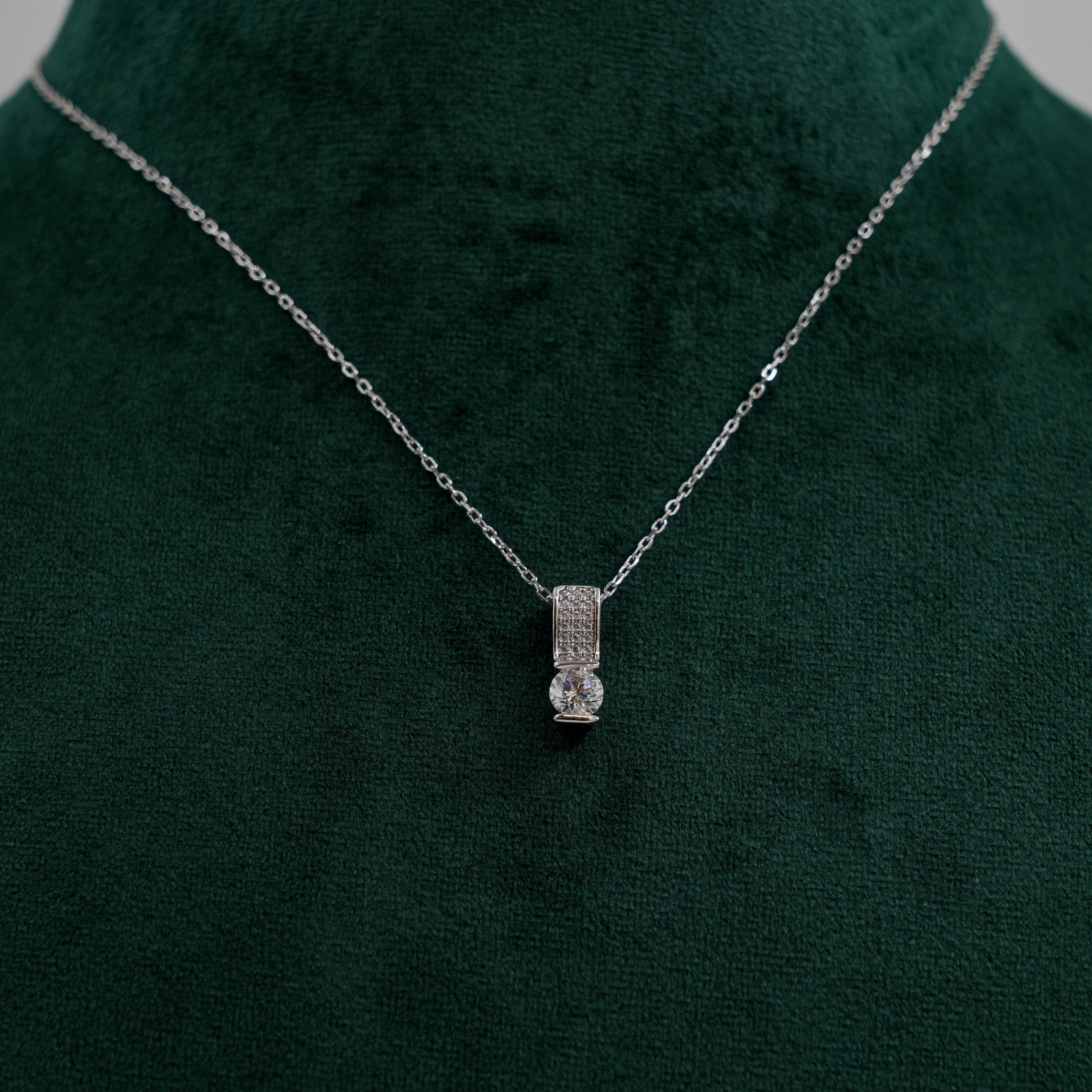 Elegant silver pendant Necklace with sparkling cubic zirconia, ideal for everyday wear. Buy silver pendant Necklace from Raag Silver Jewellery in Hyderabad.