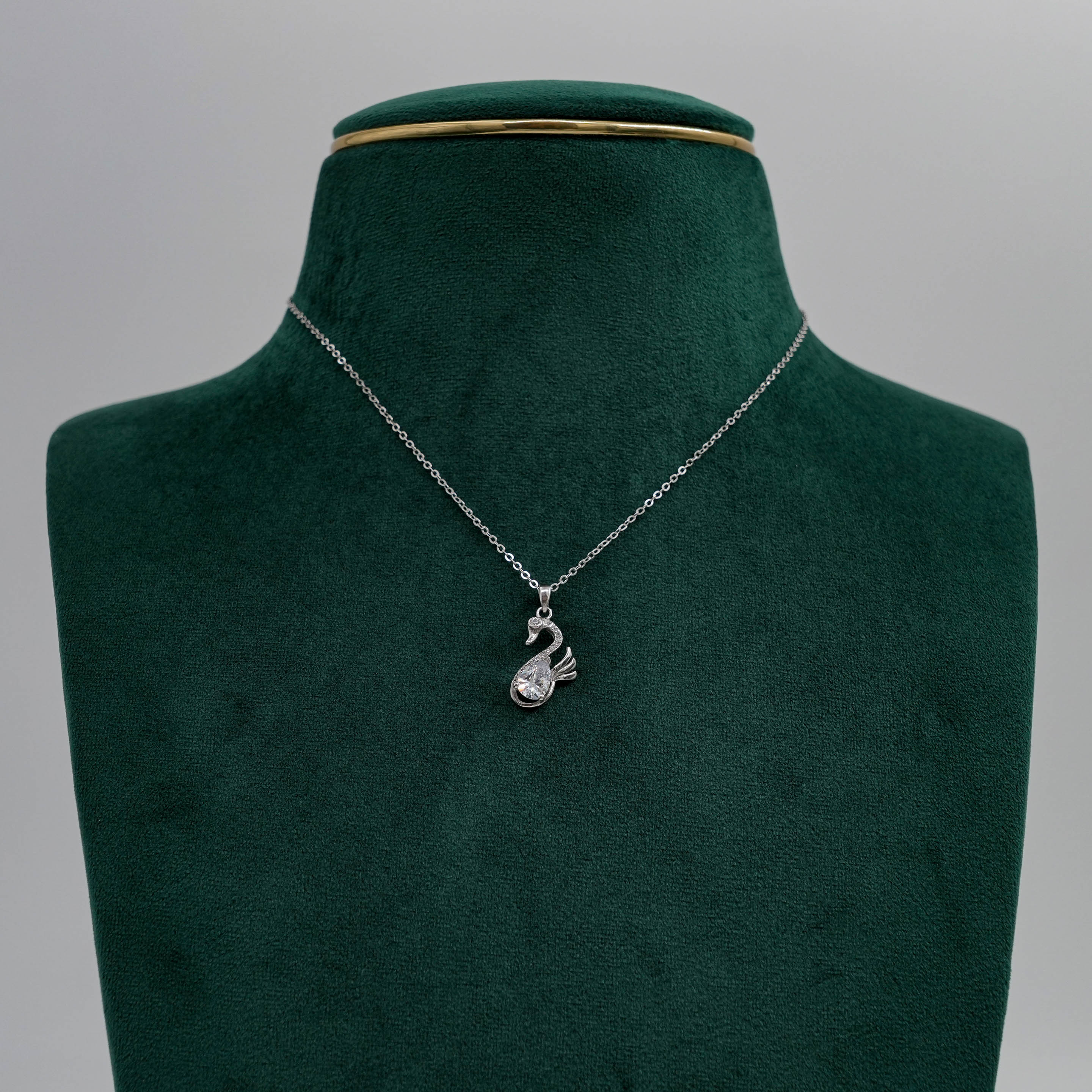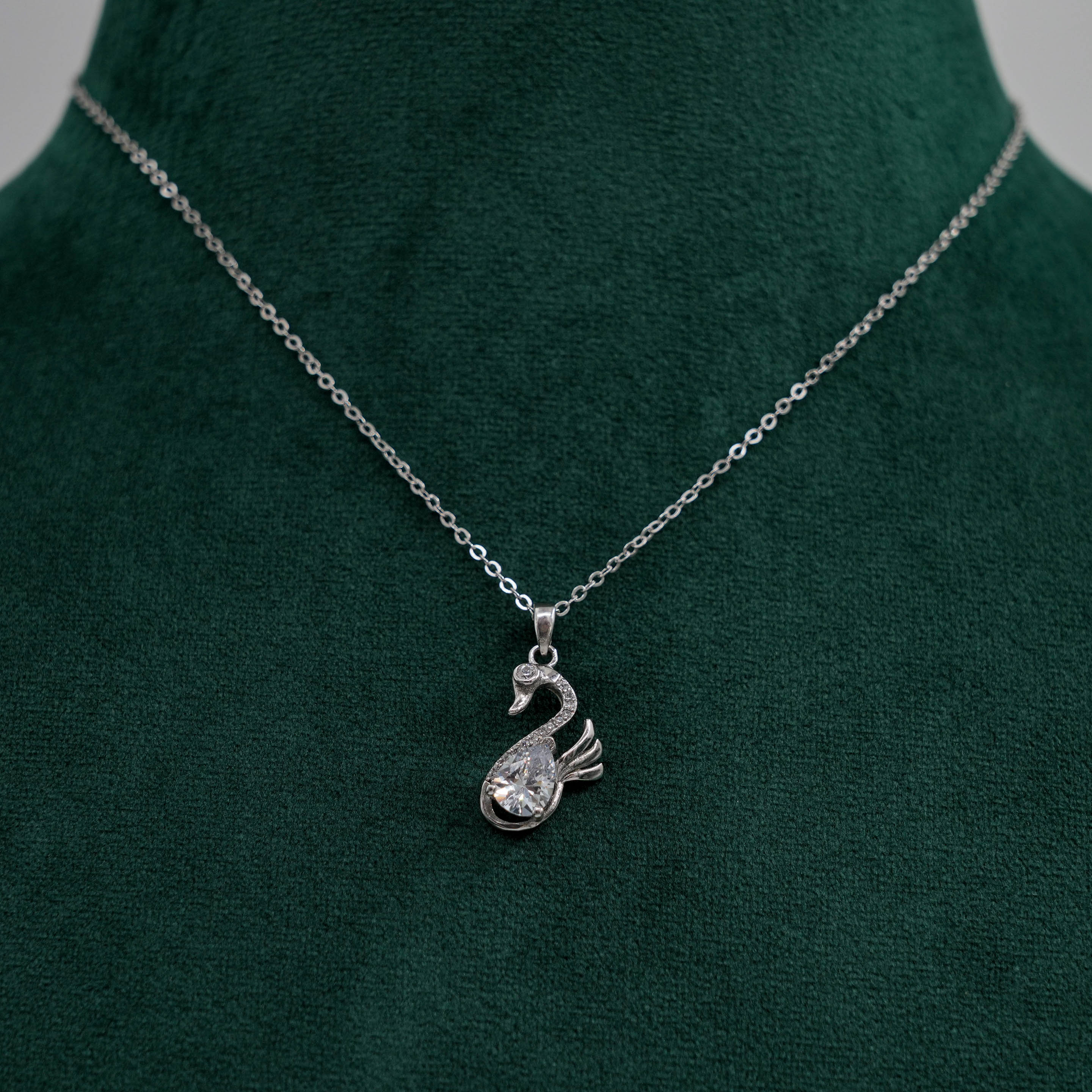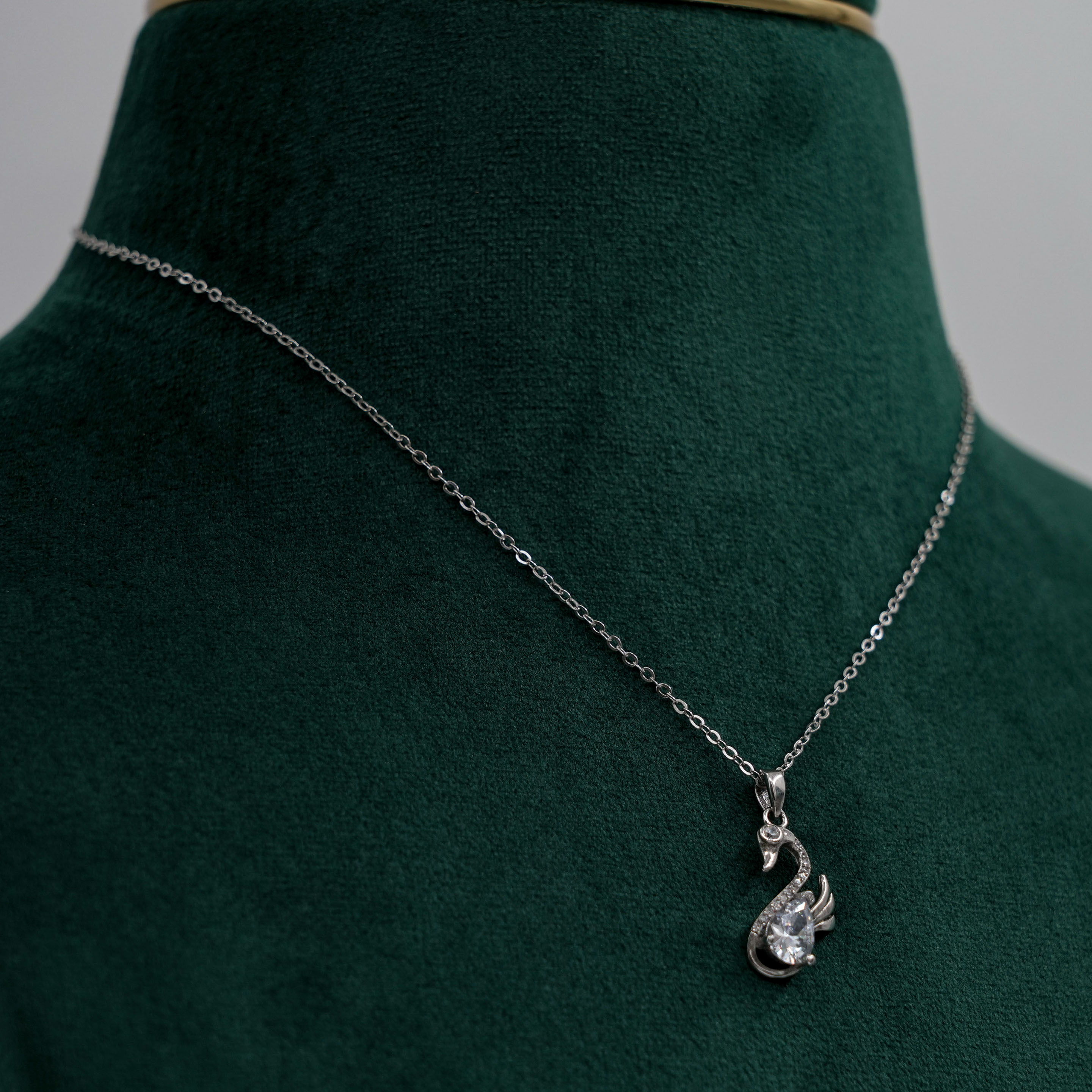 Elegant swan pendant Necklace in sterling silver with crystal accents, perfect for gifting. Buy silver swan Necklace from Raag Silver Jewellery in Hyderabad.