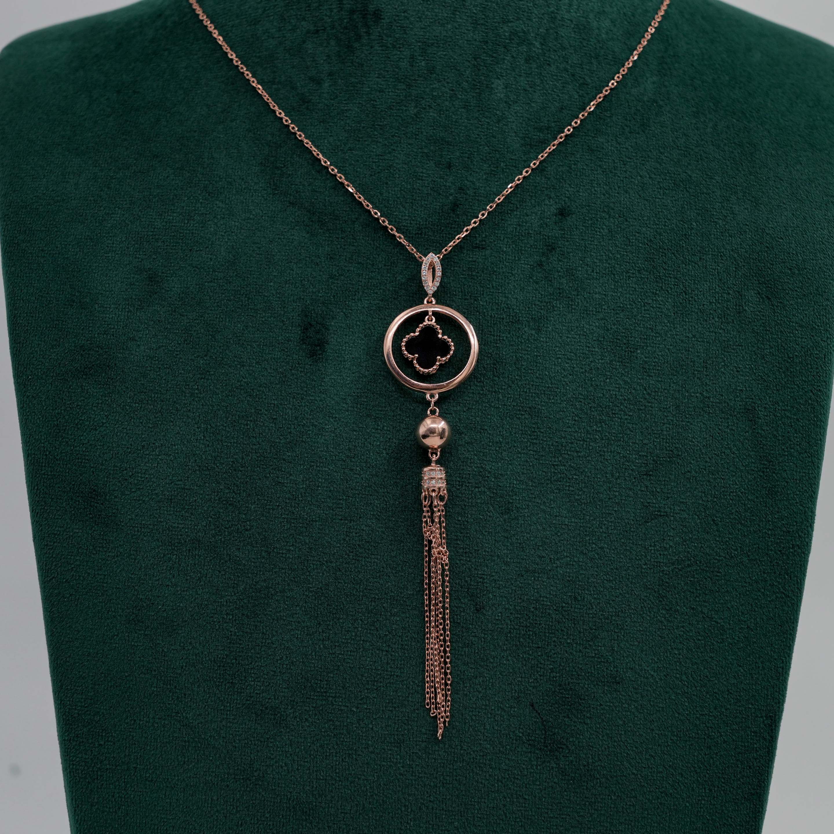 Elegant tassel pendant Necklace with clover detail, suitable for daily wear and special occasions. Buy tassel pendant Necklace from Raag Silver Jewellery in Hyderabad.