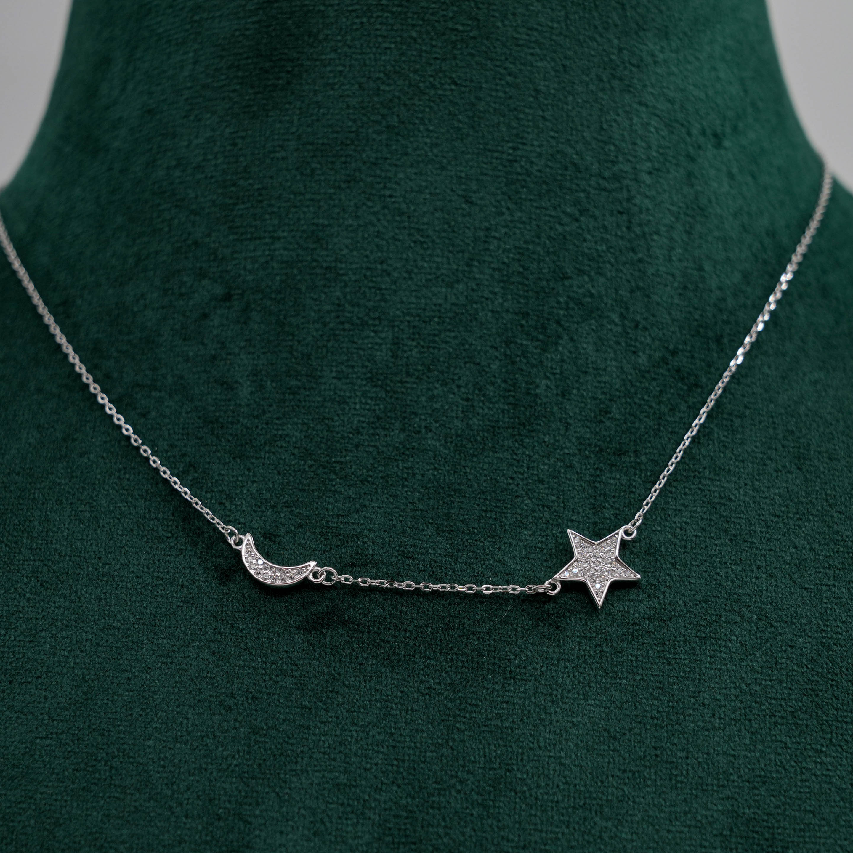 Elegant silver pendant Necklace with cubic zirconia stones, perfect for everyday wear and gifting. Buy silver pendant Necklace from Raag Silver Jewellery in Hyderabad.