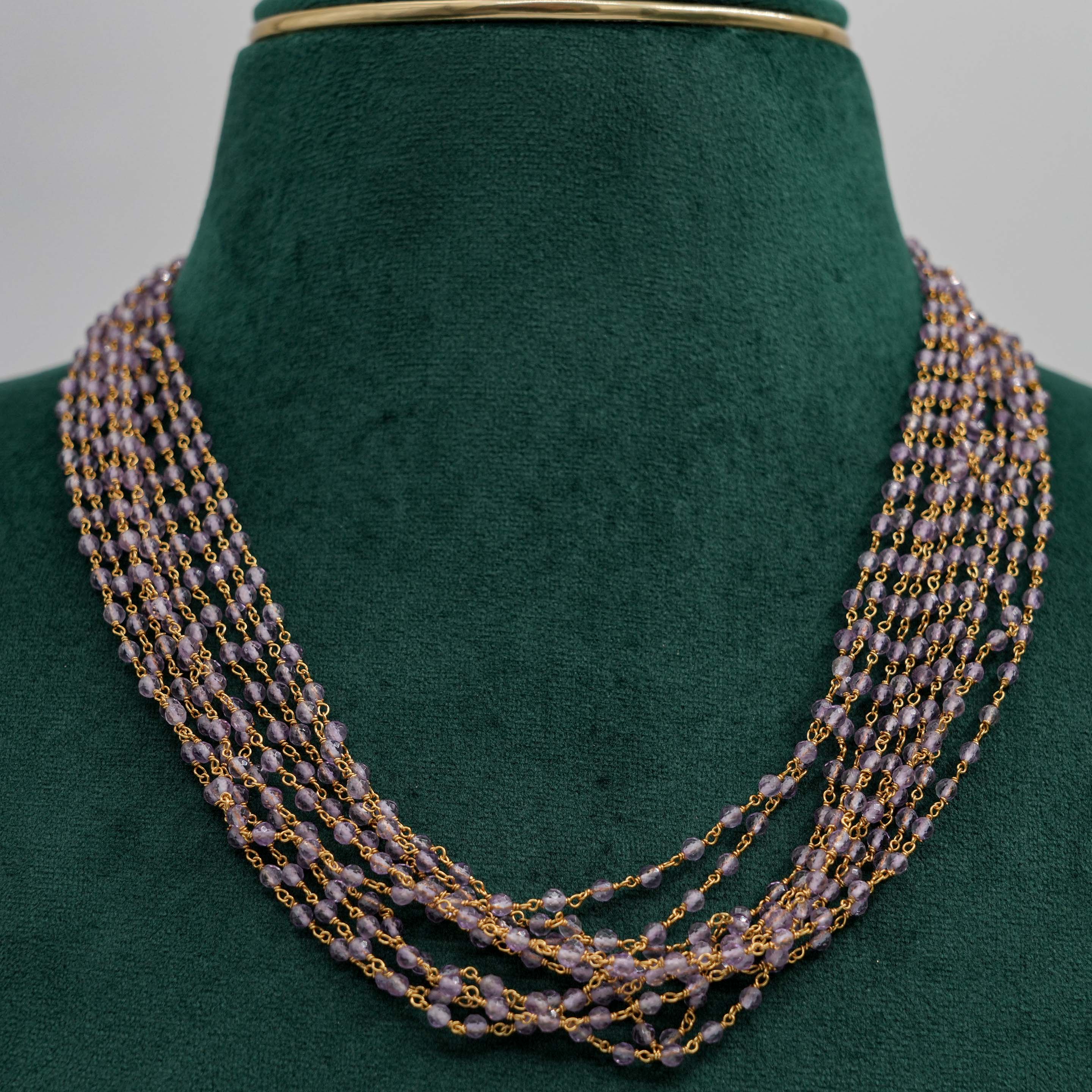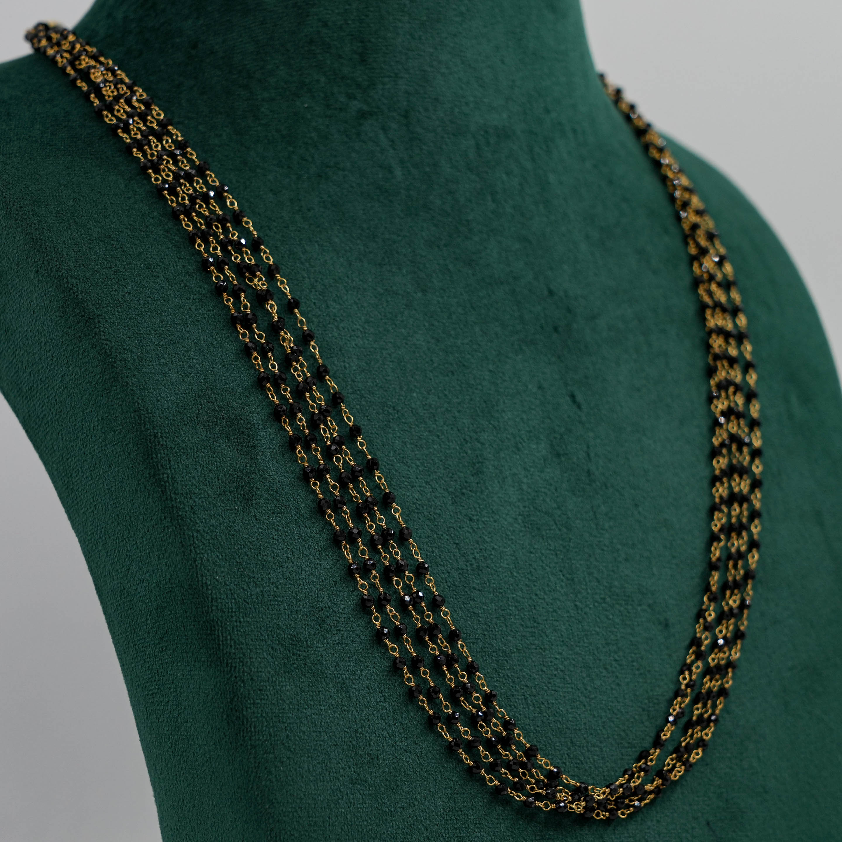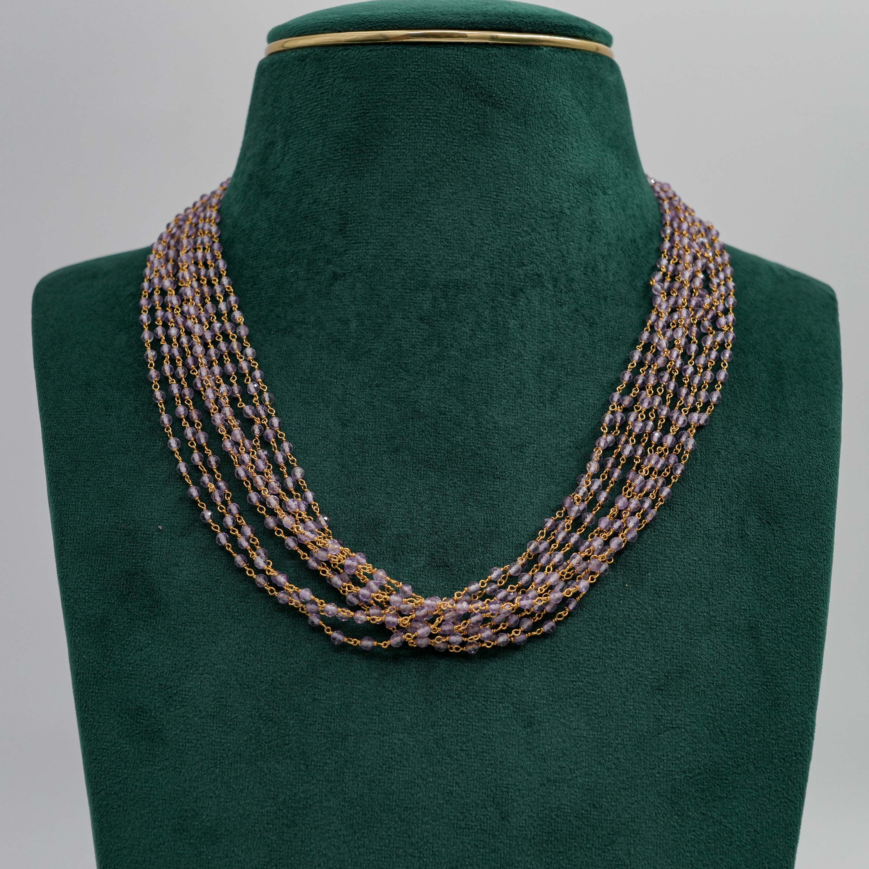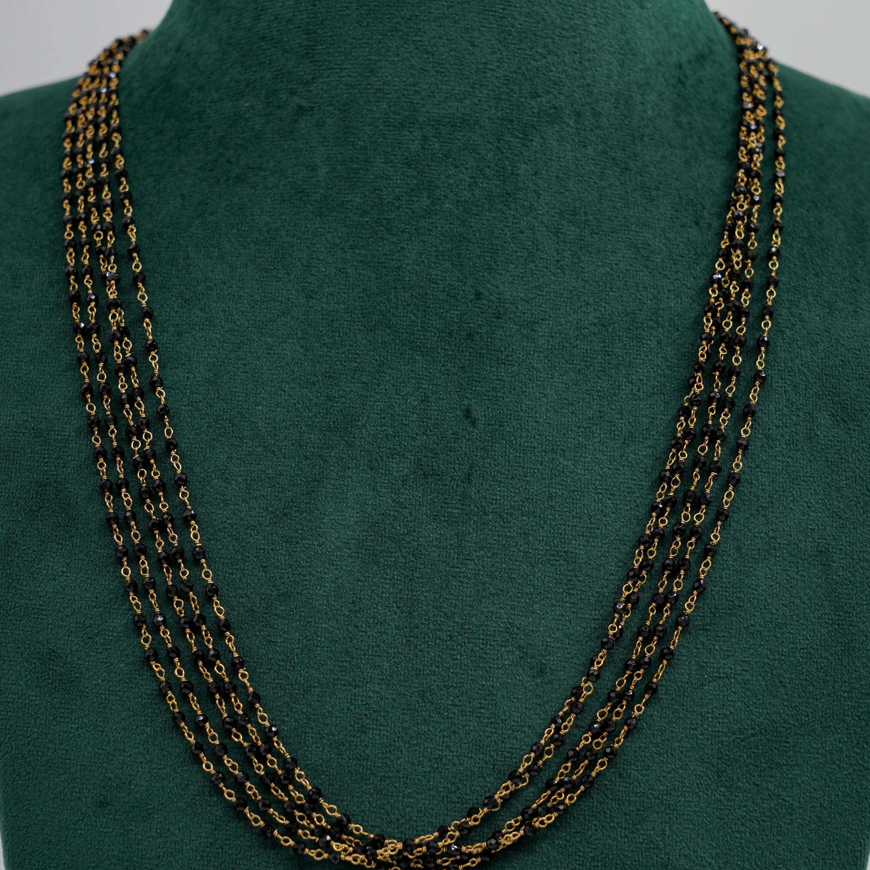 Delicate beaded chain Necklace with gold accents, suitable for daily wear and special occasions. Buy beaded chain Necklace from Raag Silver Jewellery in Hyderabad.