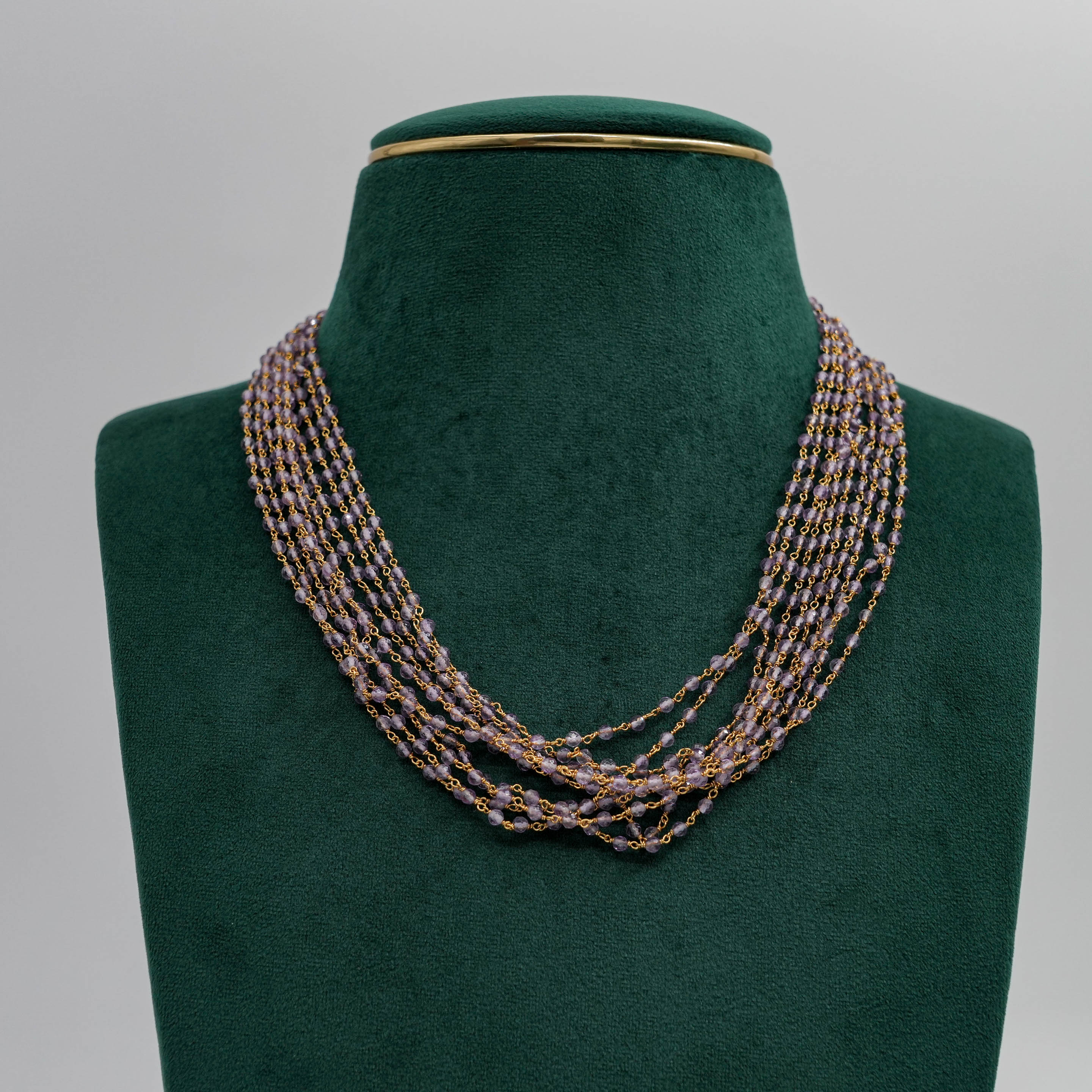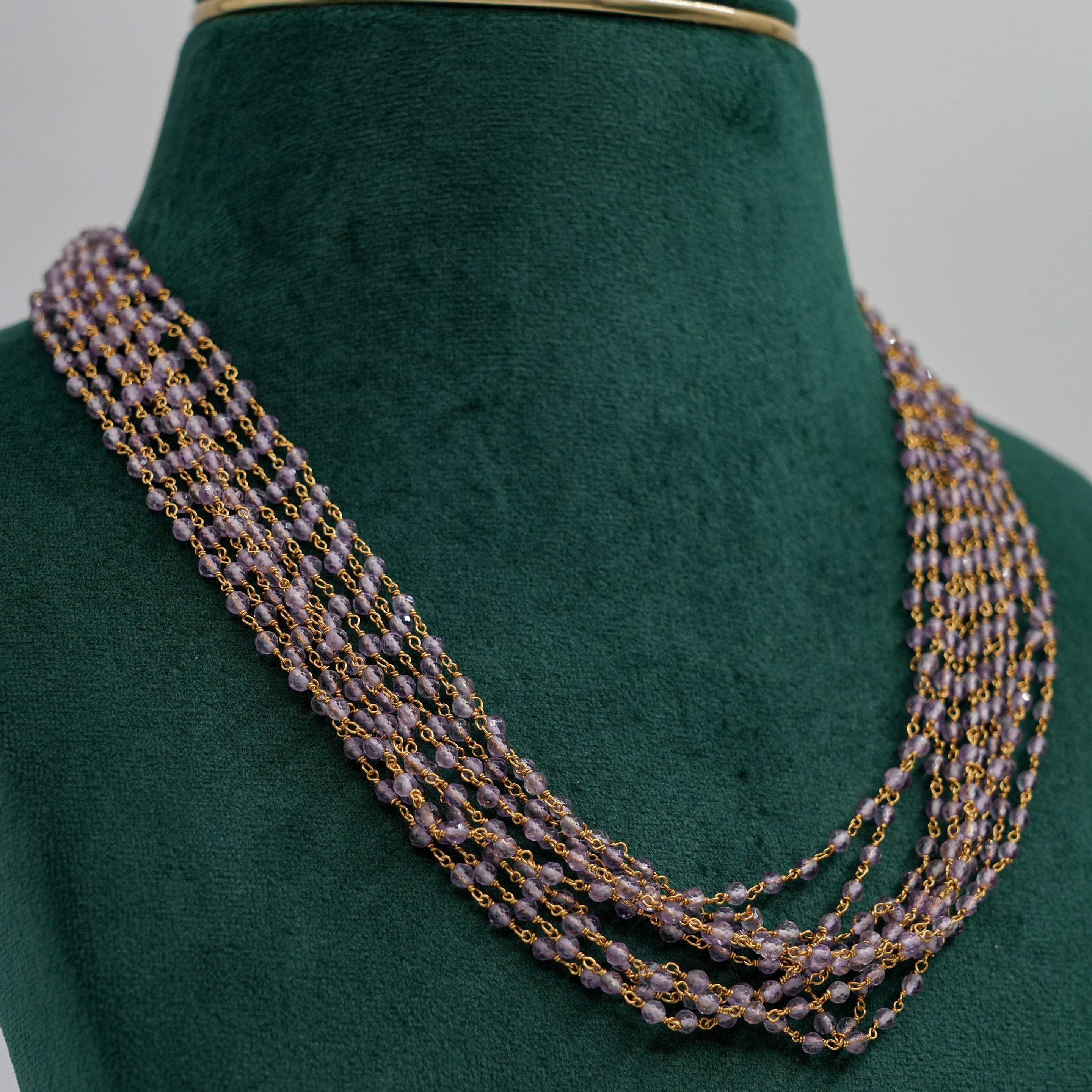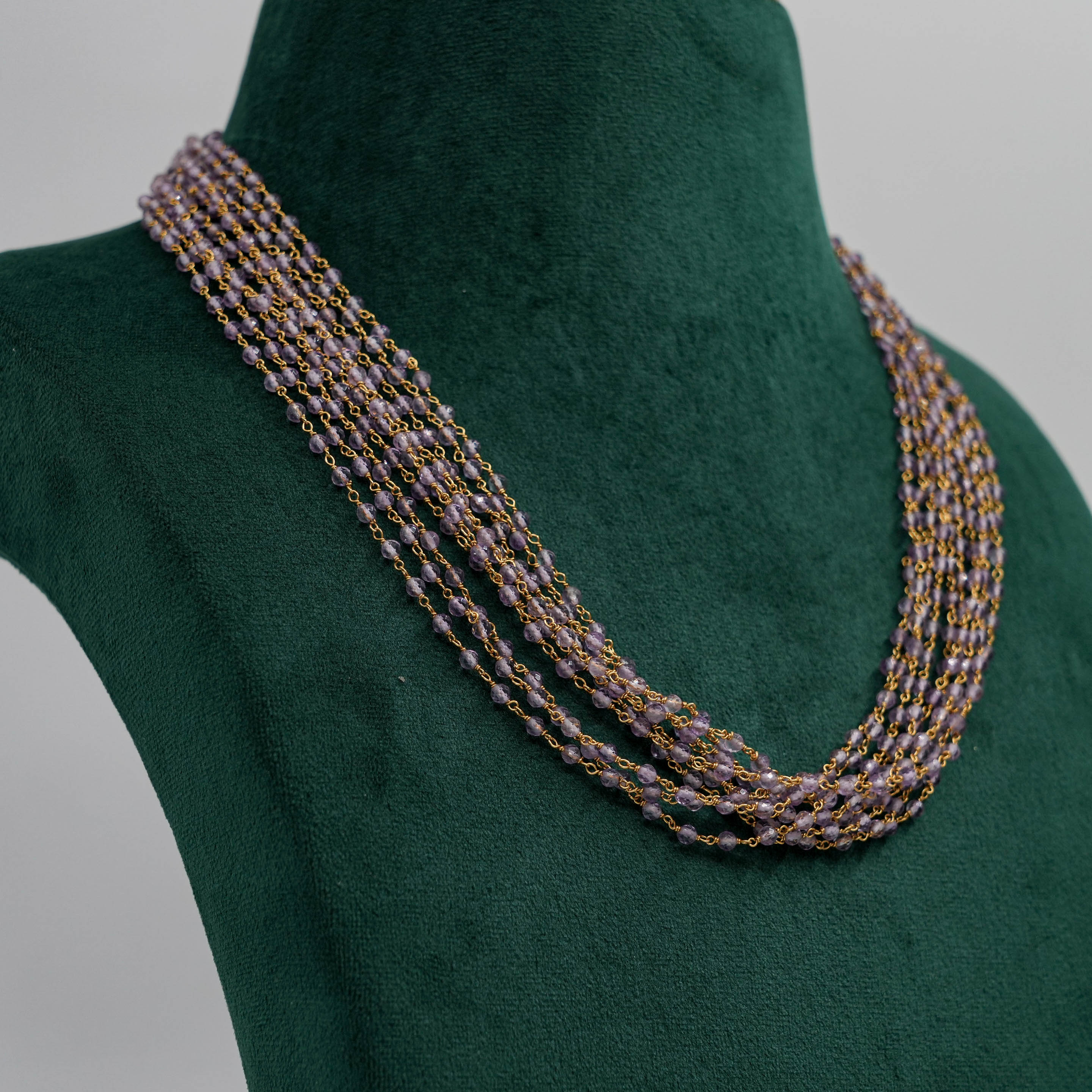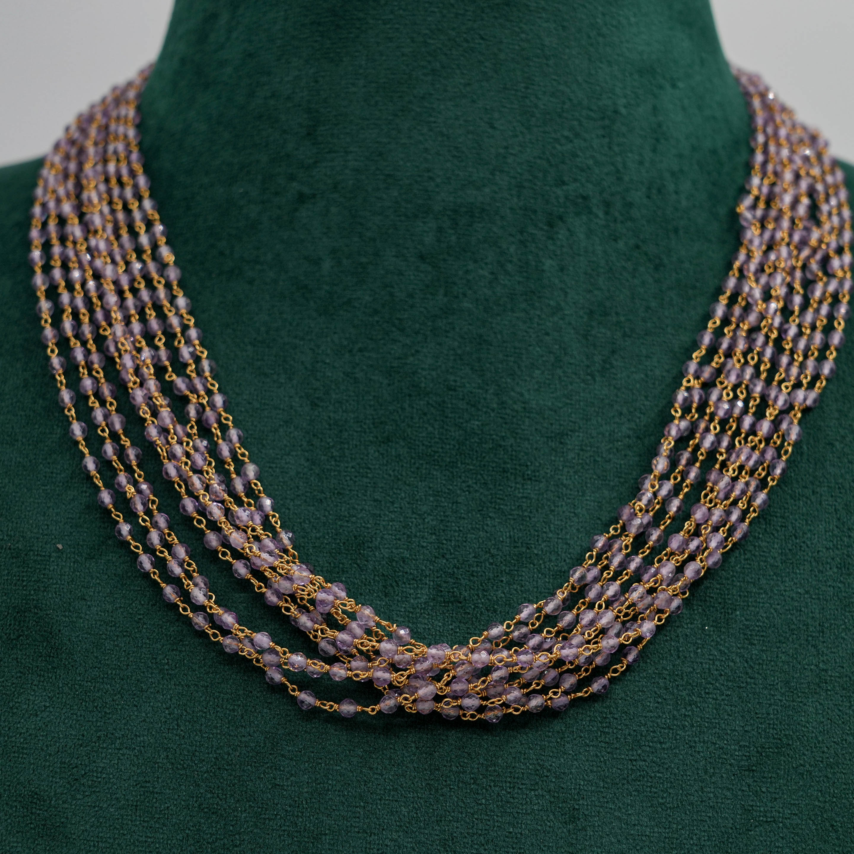 Delicate beaded chain Necklace with gold accents, suitable for daily wear and special occasions. Buy beaded chain Necklace from Raag Silver Jewellery in Hyderabad.