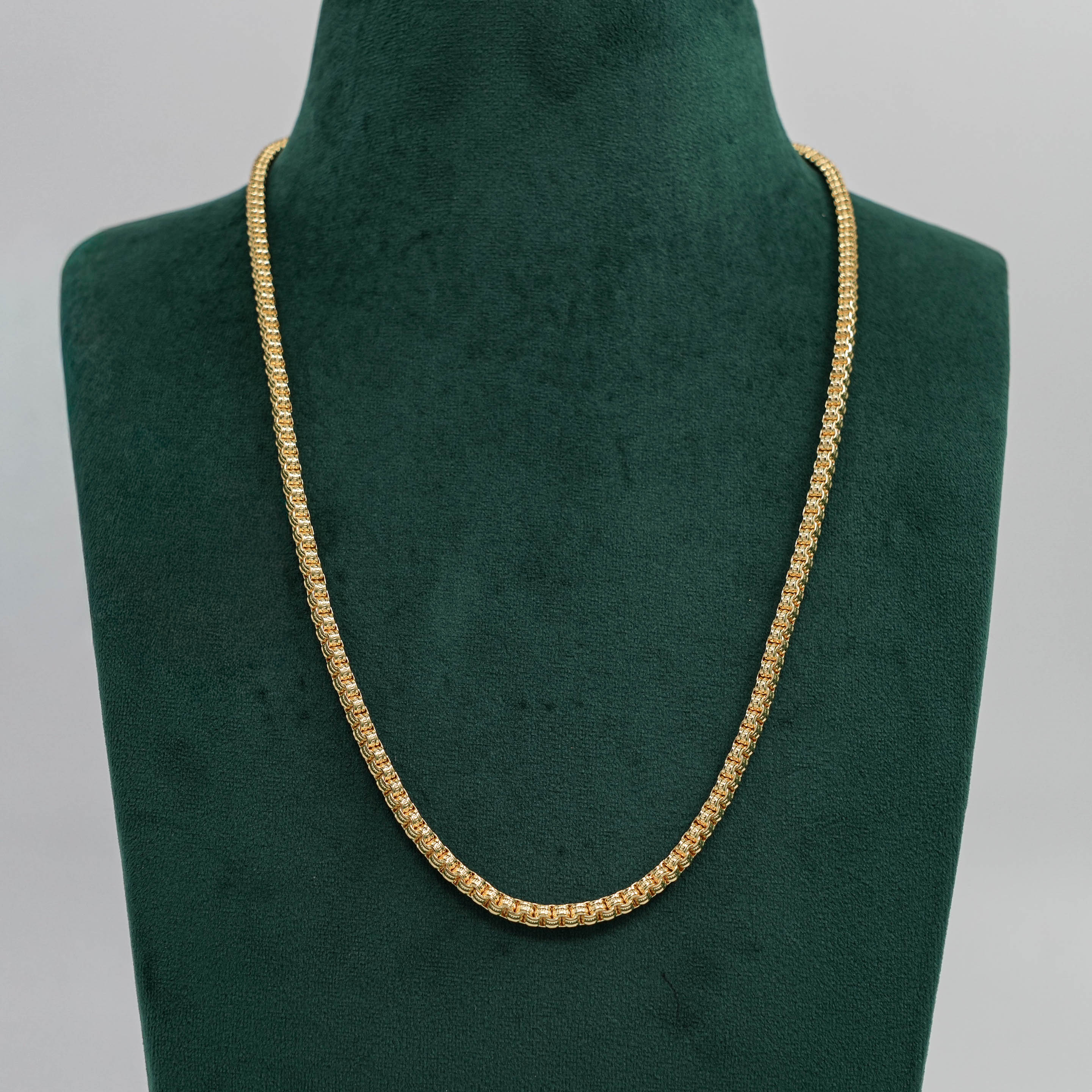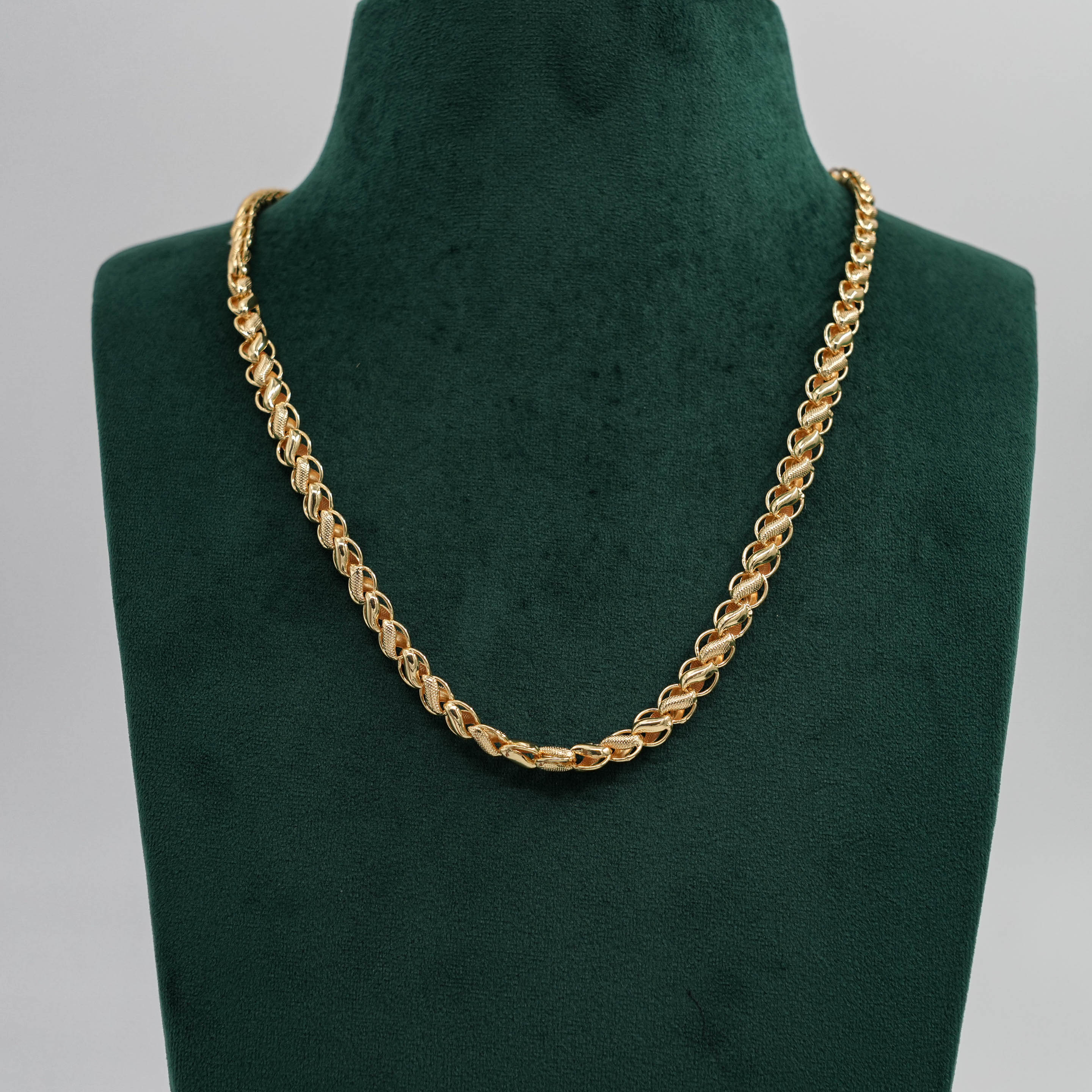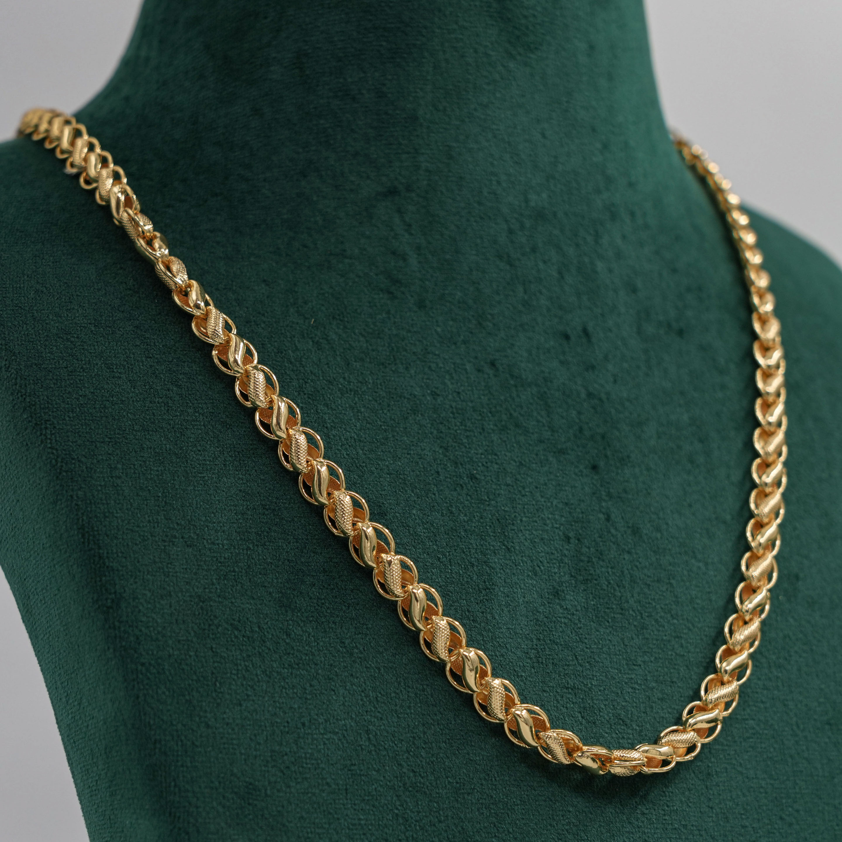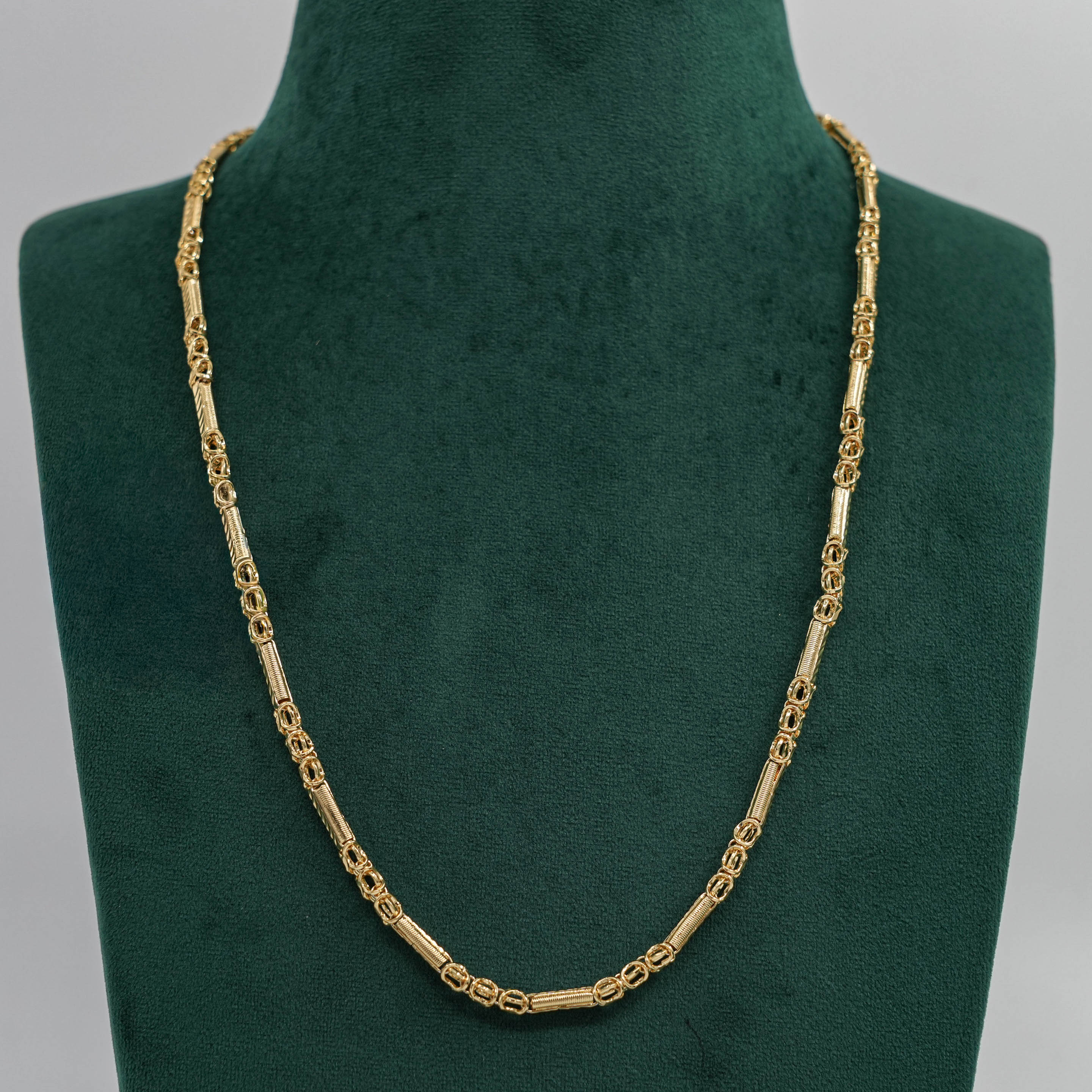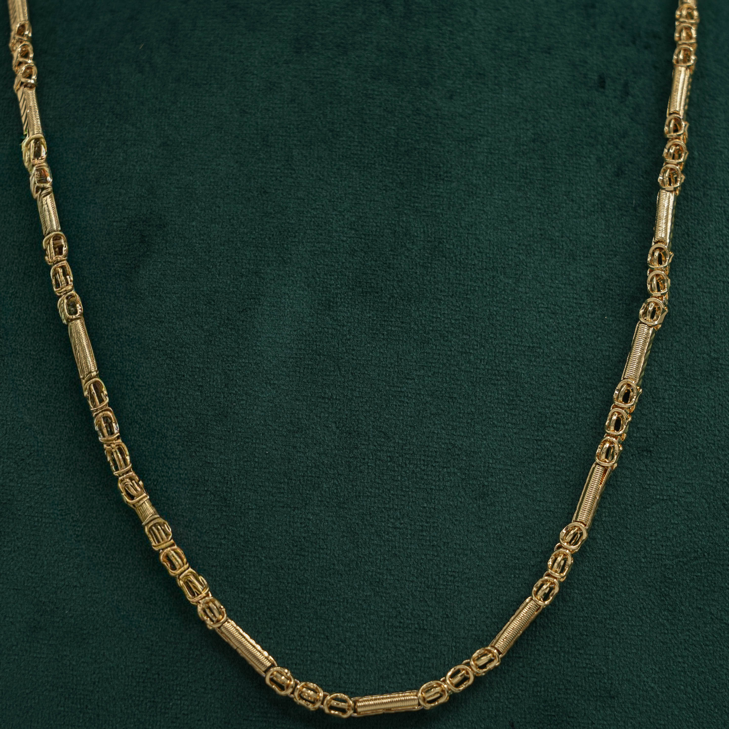 Classic gold chain Necklace with a unique link design. Perfect for daily wear or special occasions. Buy gold chain Necklace from Raag Silver Jewellery in Hyderabad.