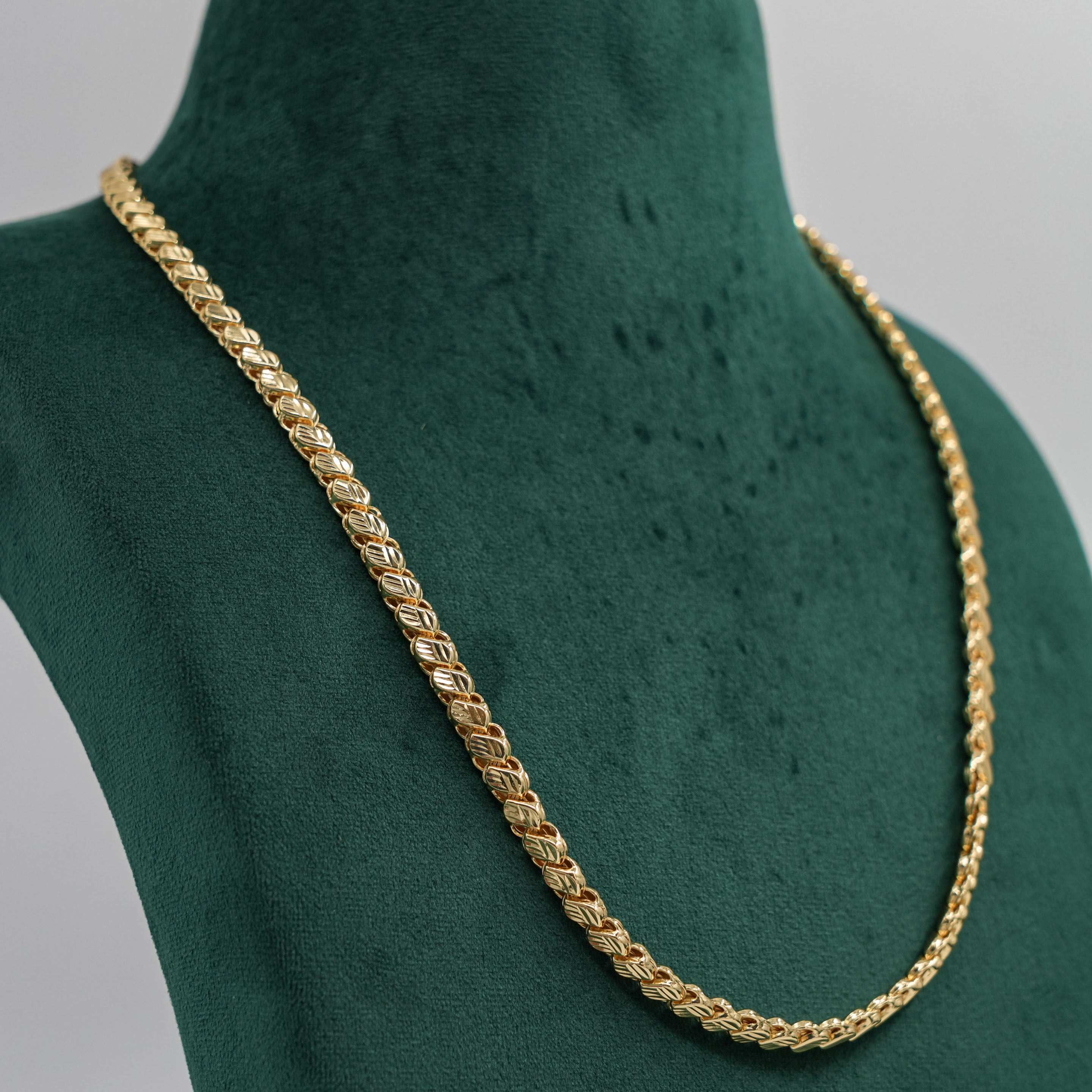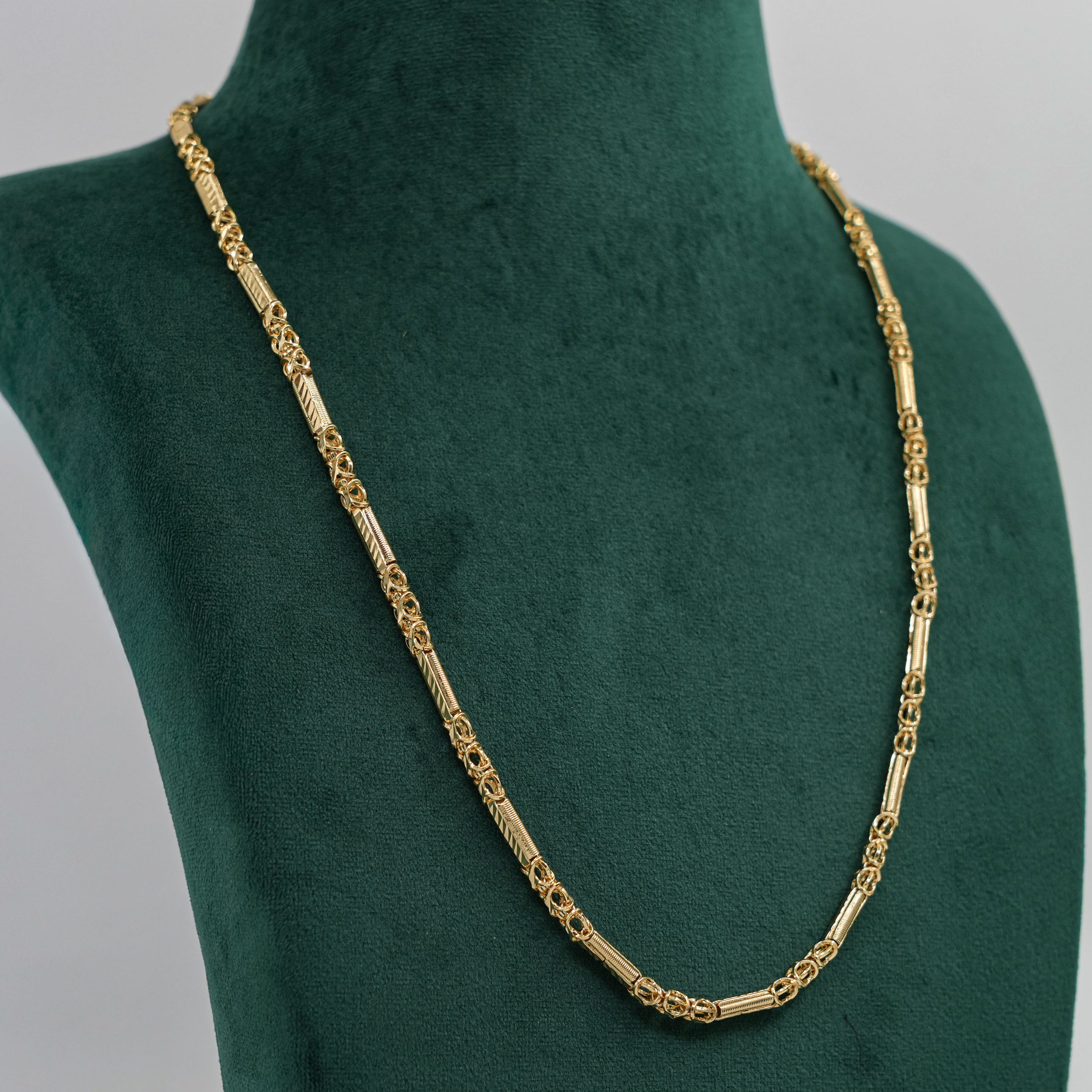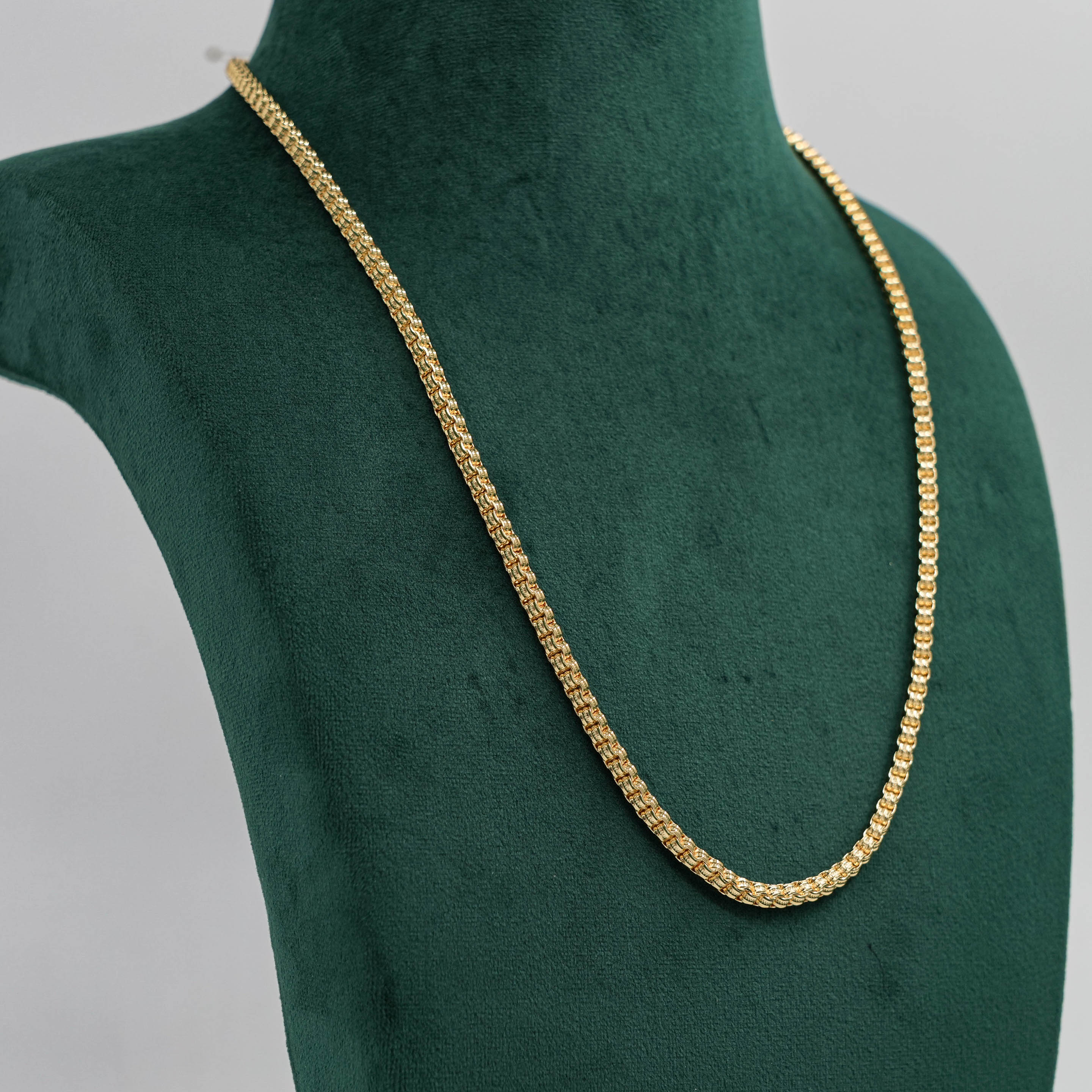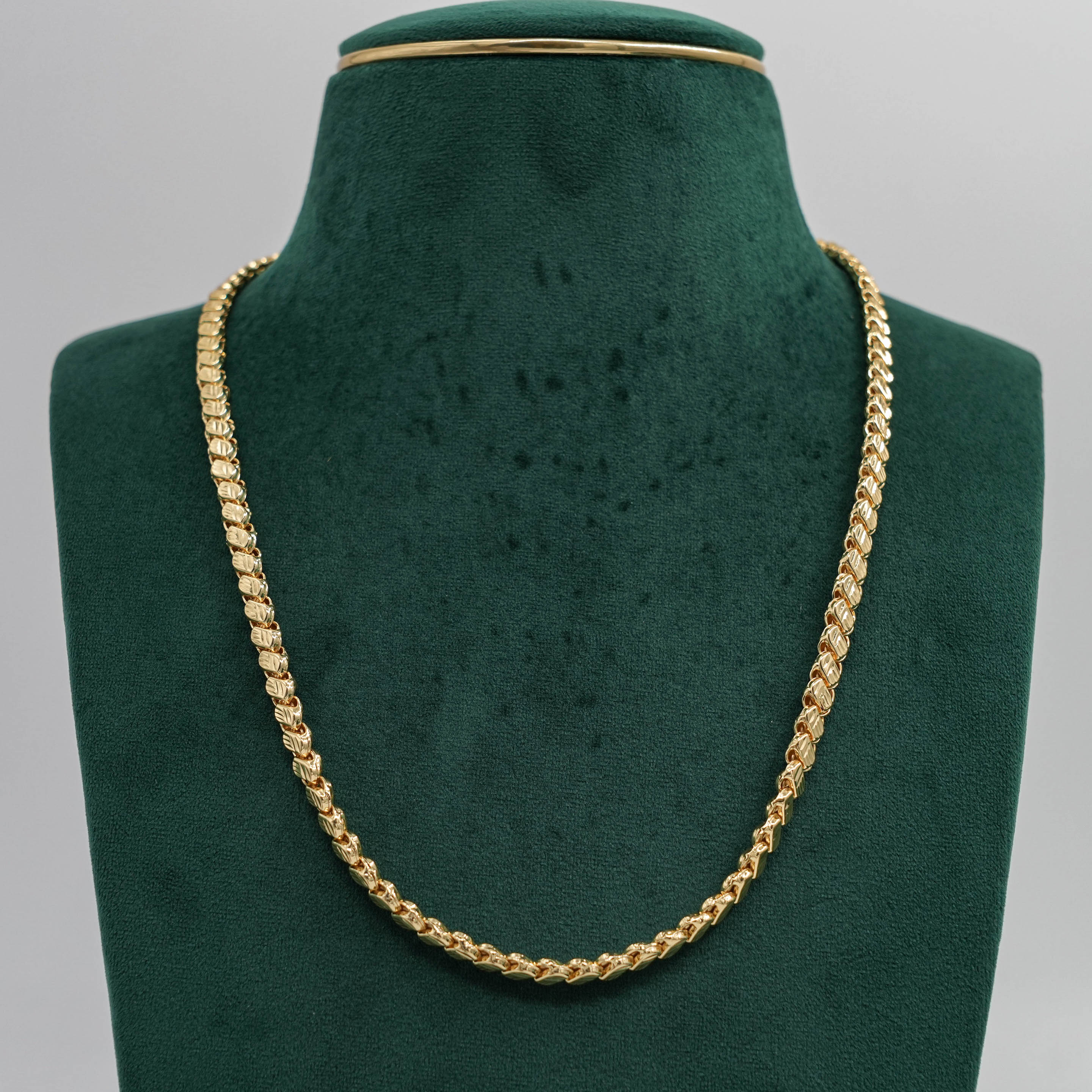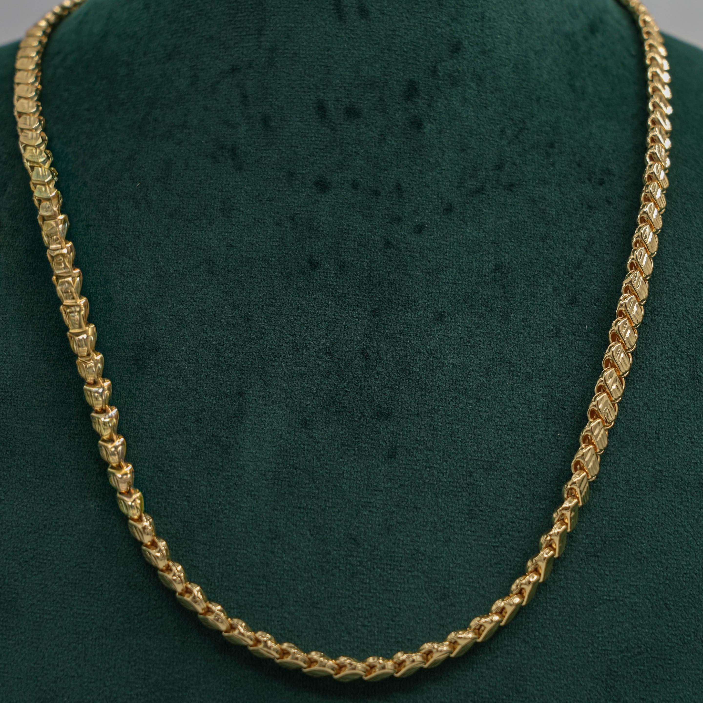 Classic gold chain Necklace with a unique link design. Perfect for daily wear or special occasions. Buy gold chain Necklace from Raag Silver Jewellery in Hyderabad.