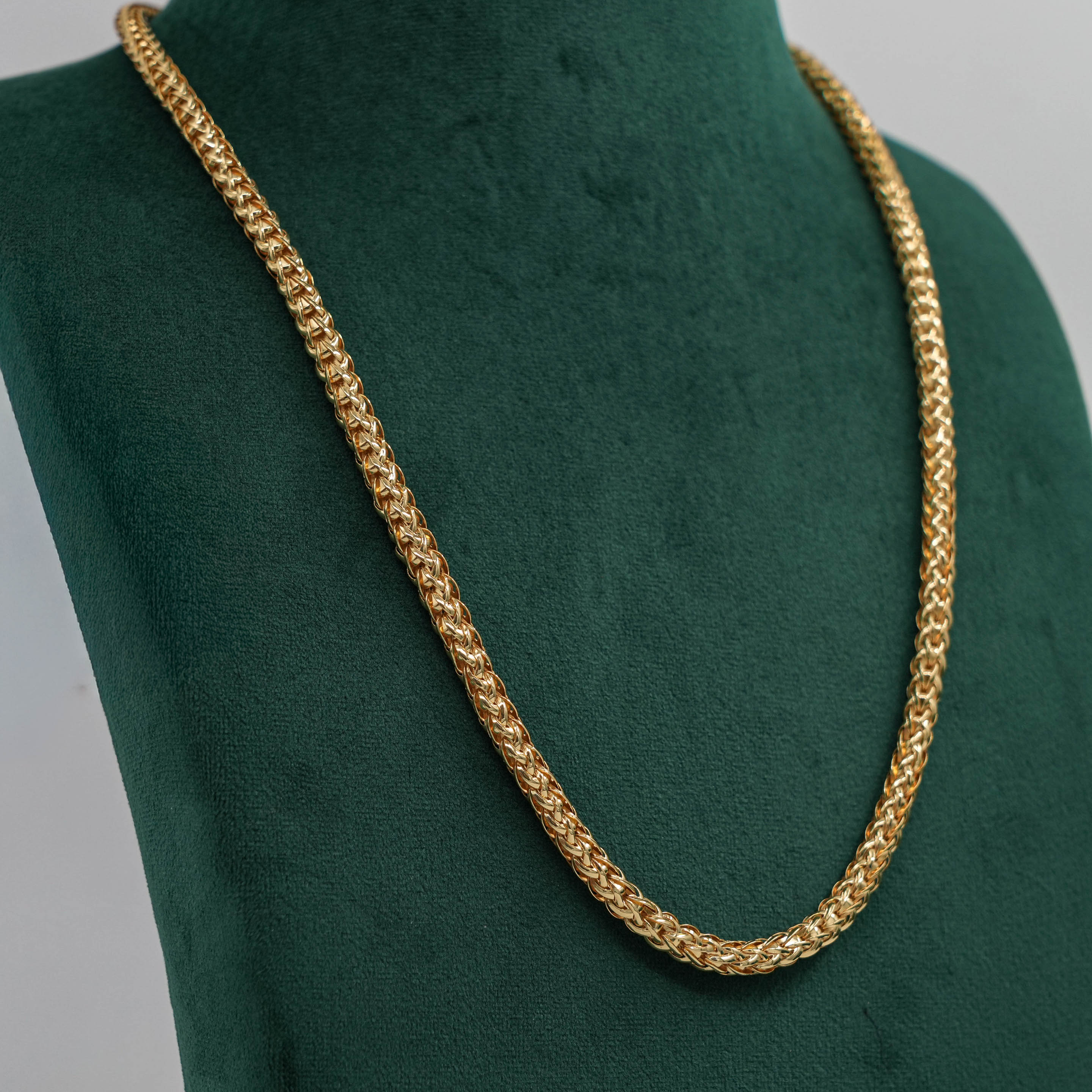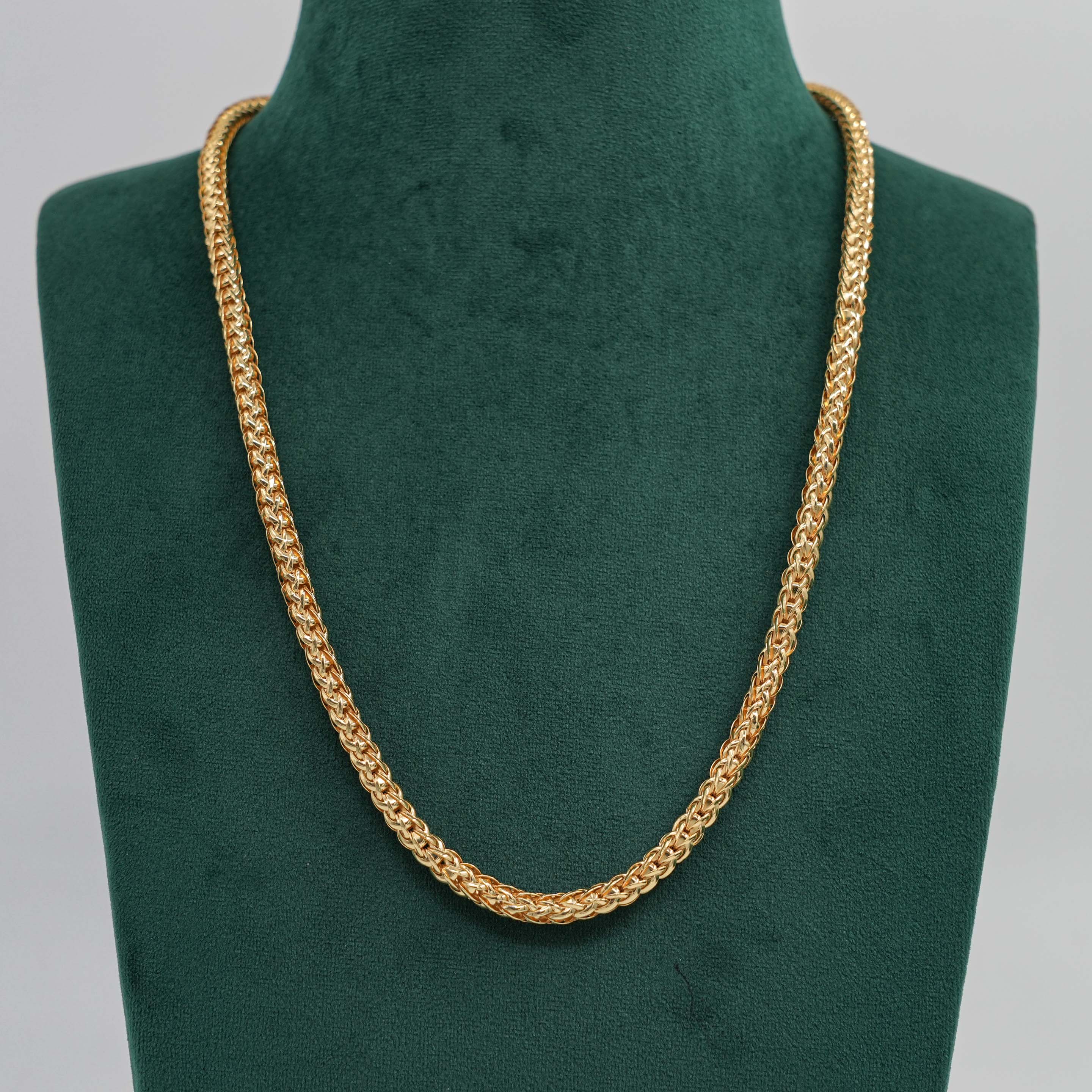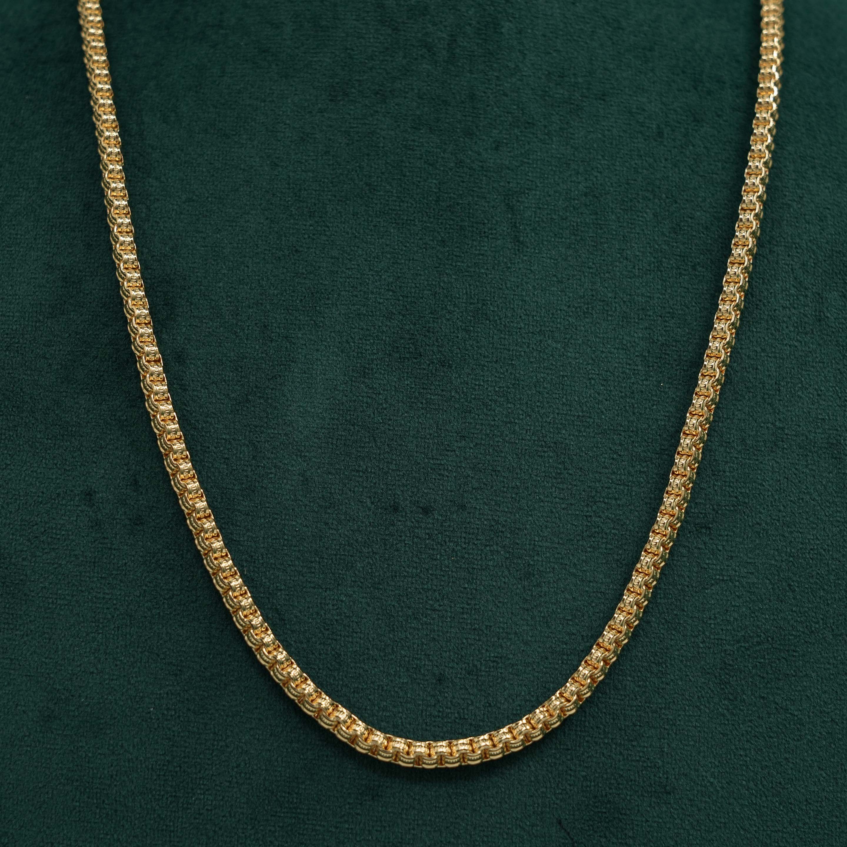 Classic gold chain Necklace with intricately woven links, perfect for everyday wear and special occasions. Buy gold chain Necklace from Raag Silver Jewellery in Hyderabad.