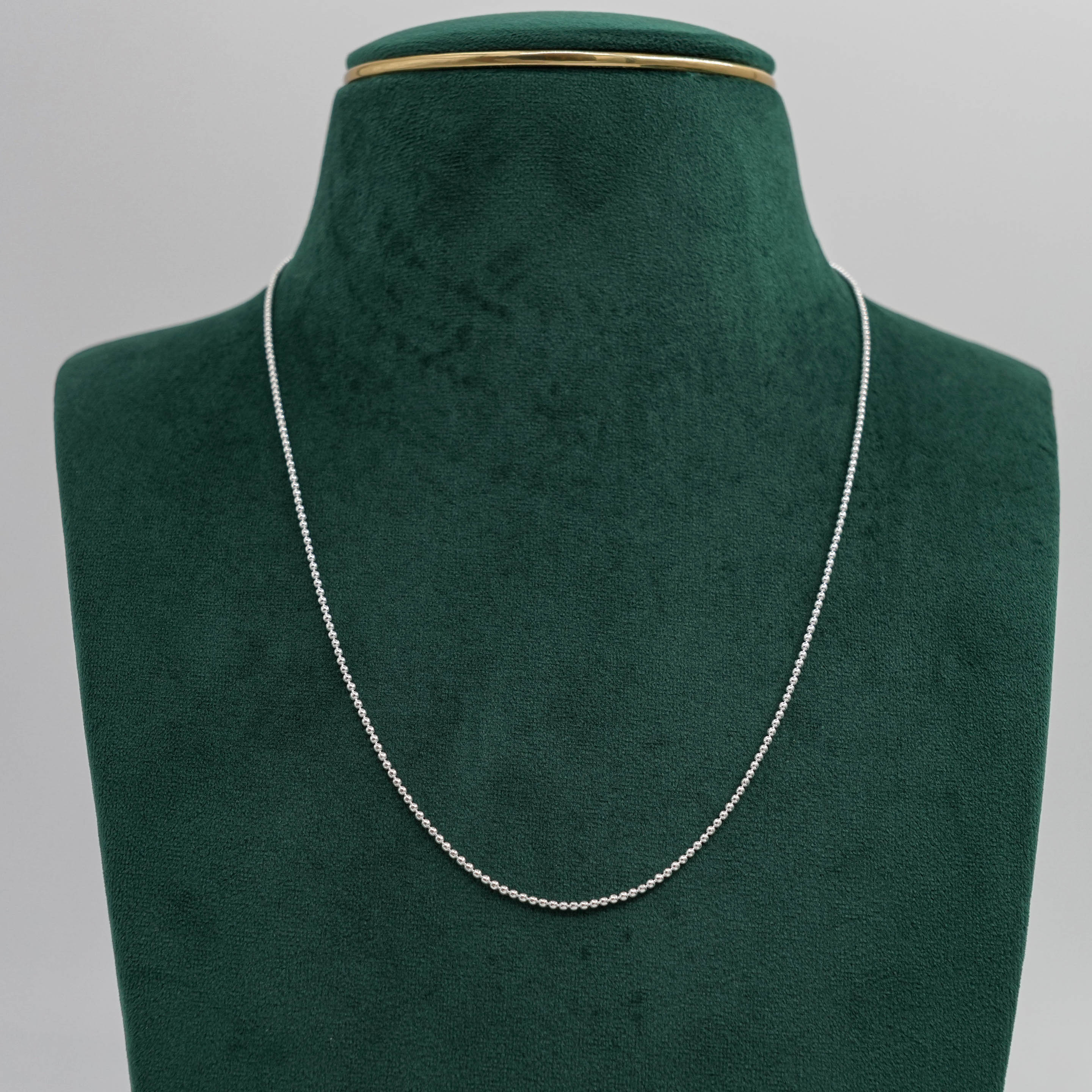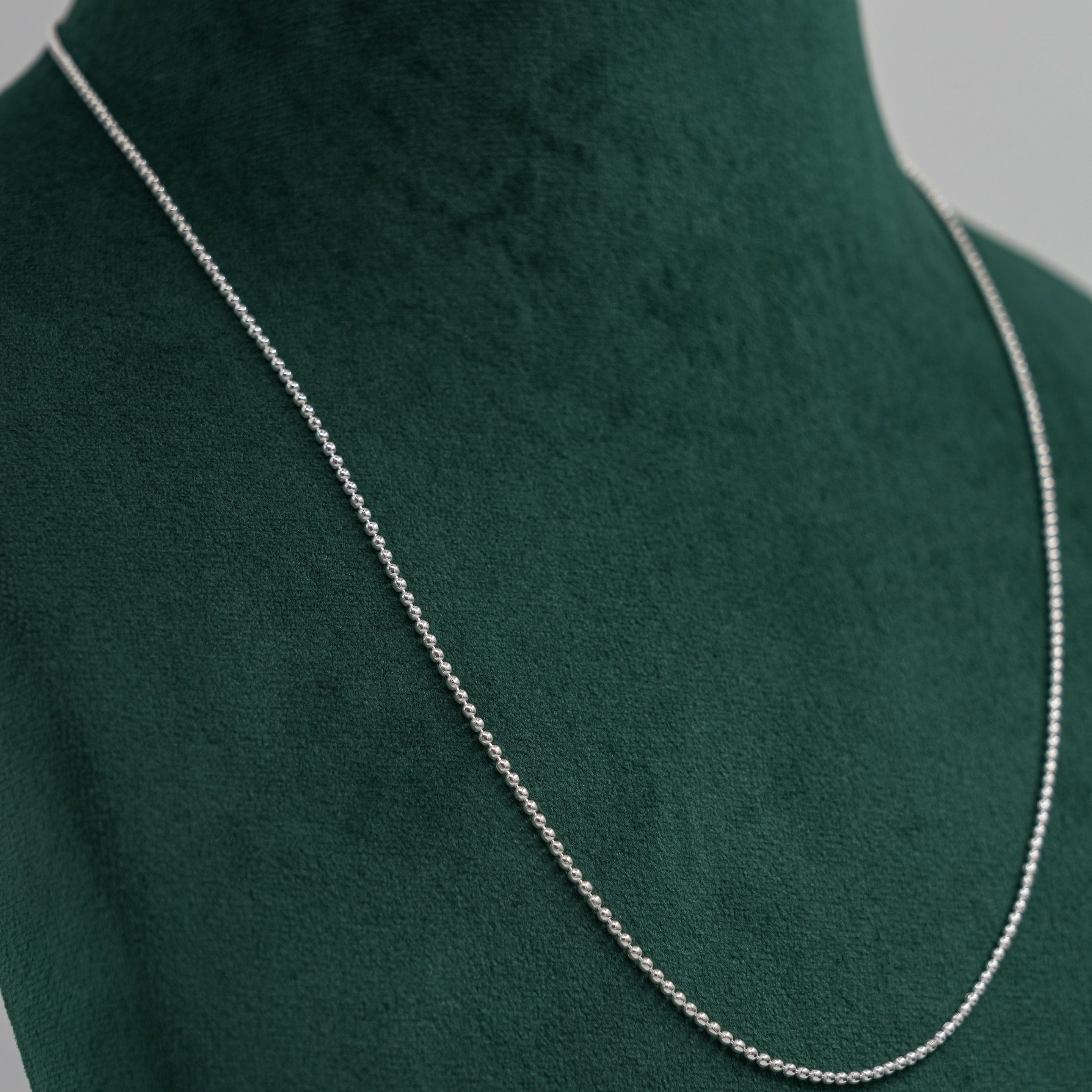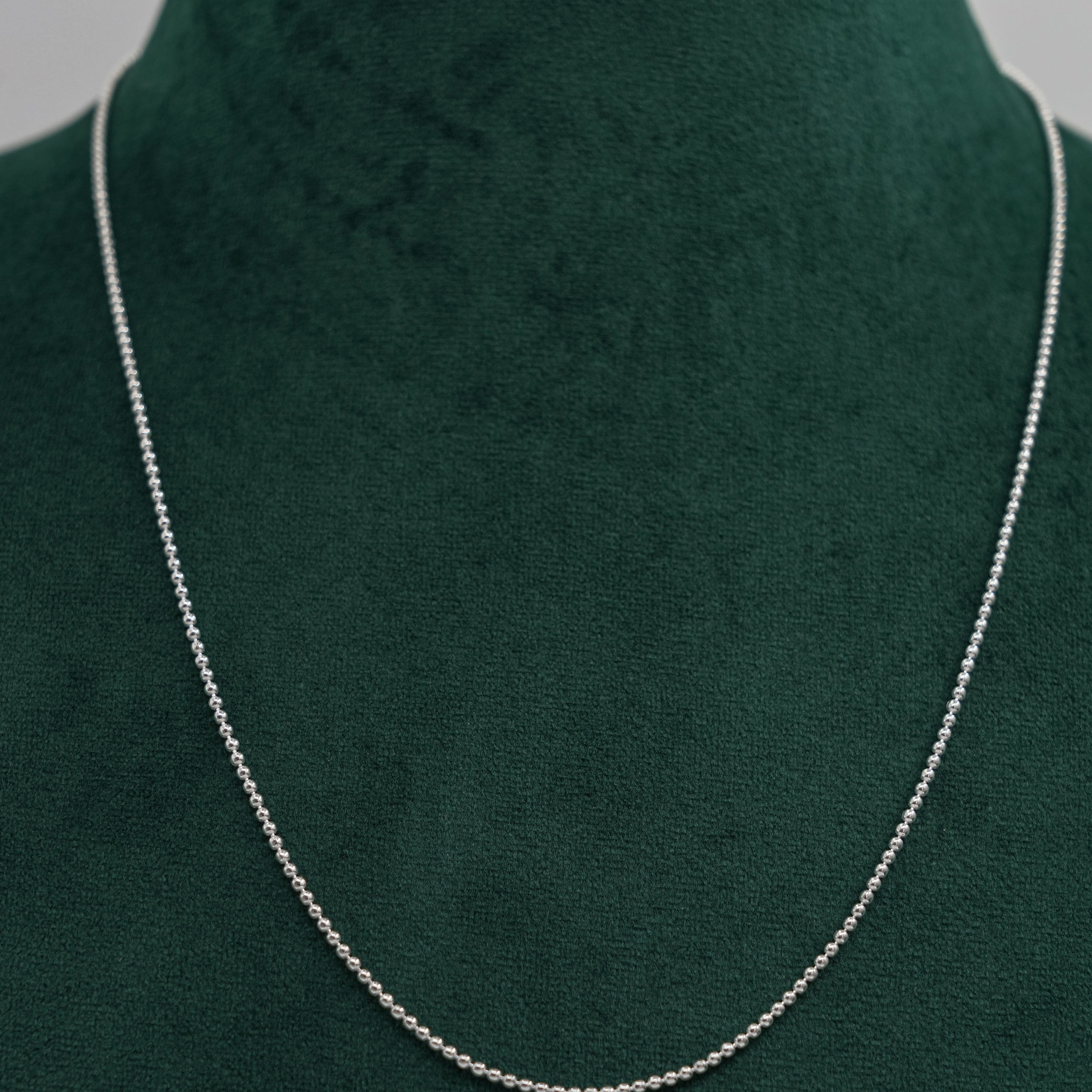 Delicate silver ball chain Necklace, perfect for everyday wear or layering with pendants. Buy silver ball chain from Raag Silver Jewellery in Hyderabad.