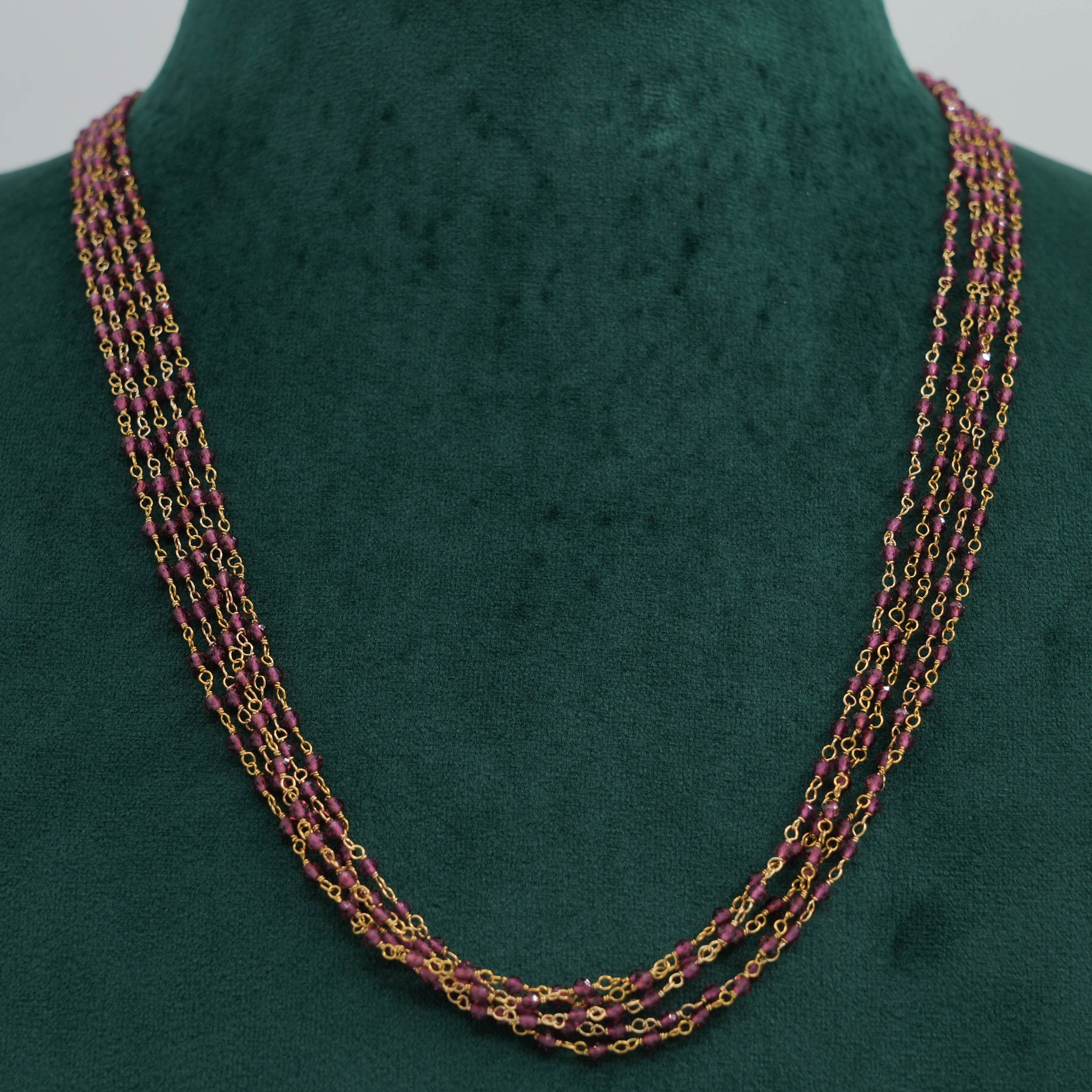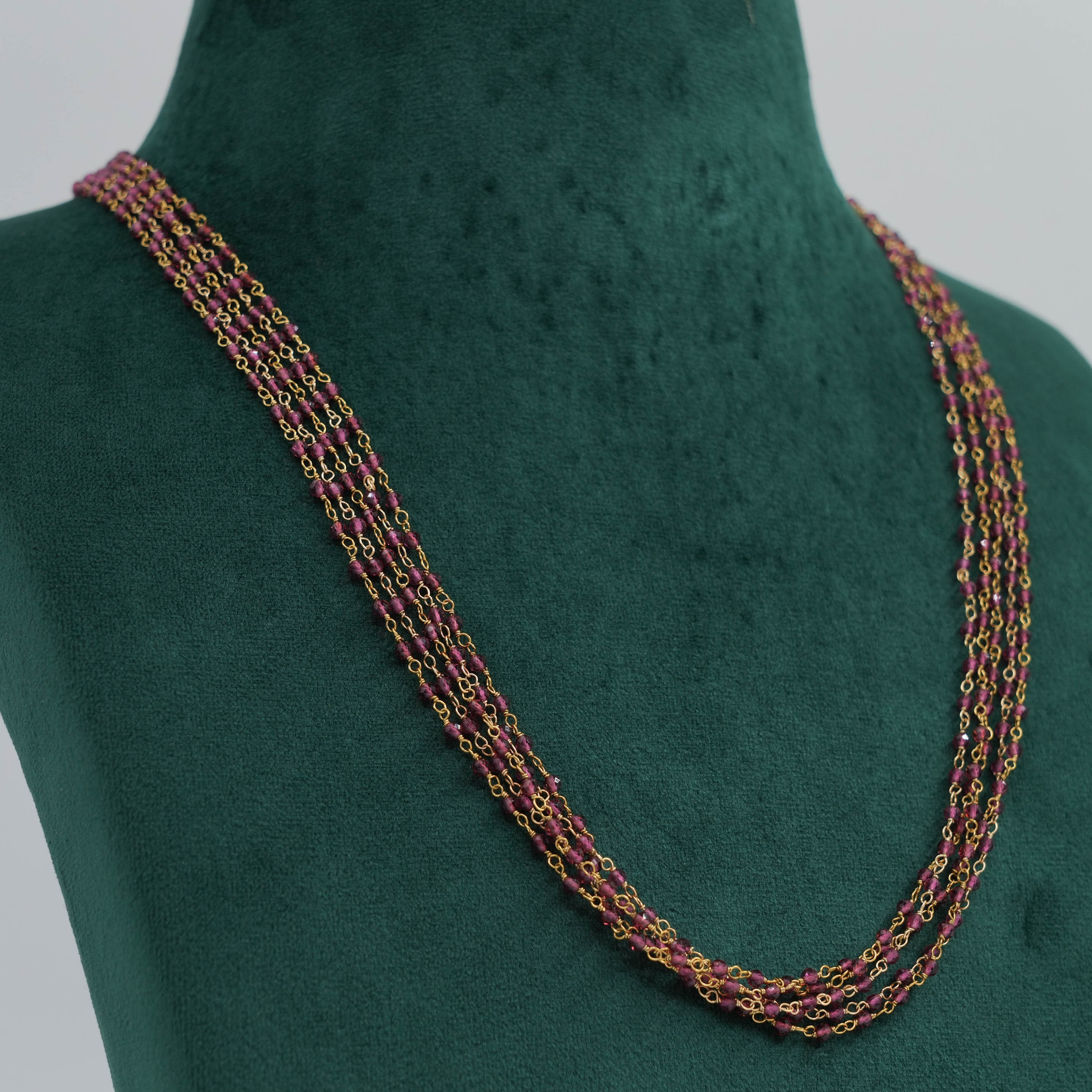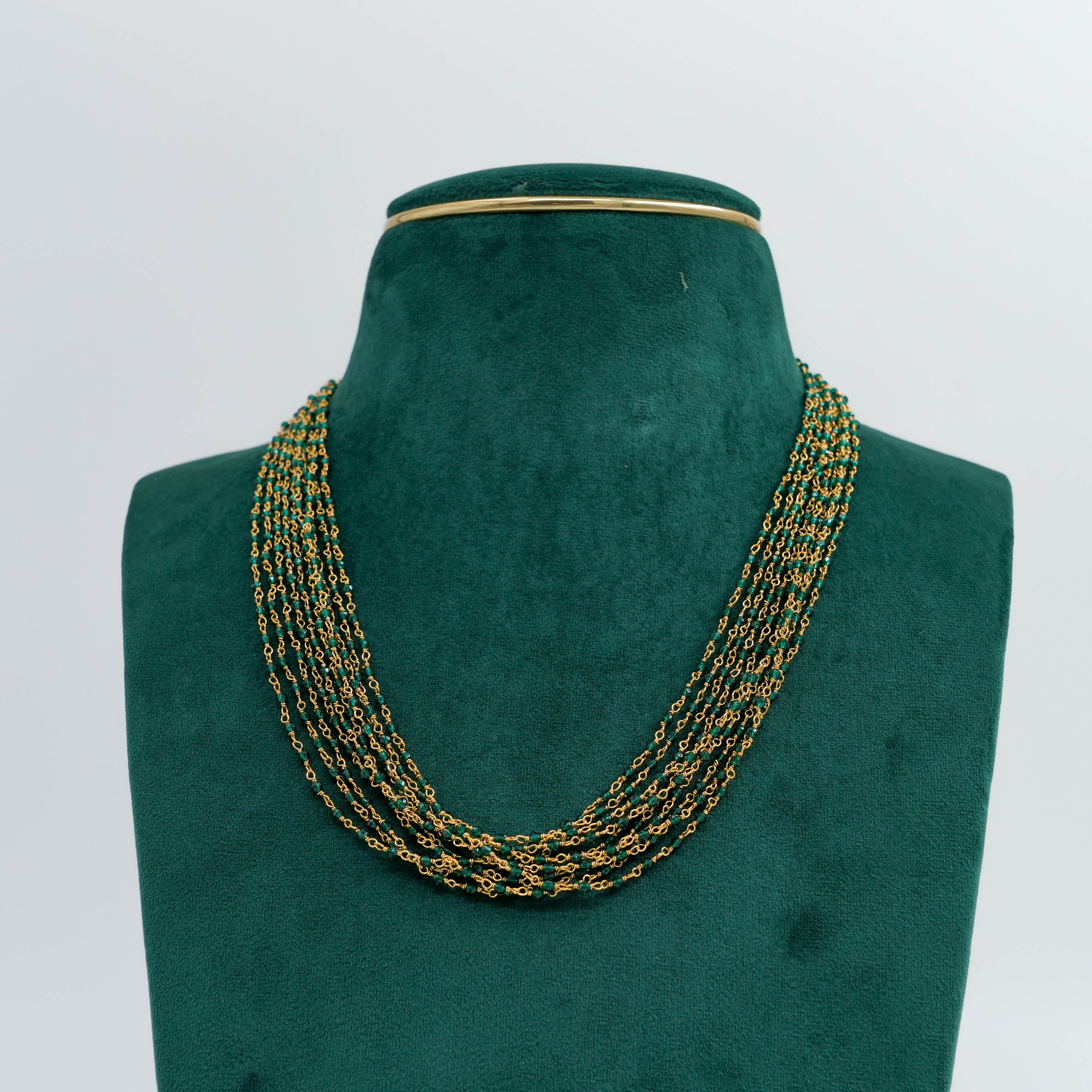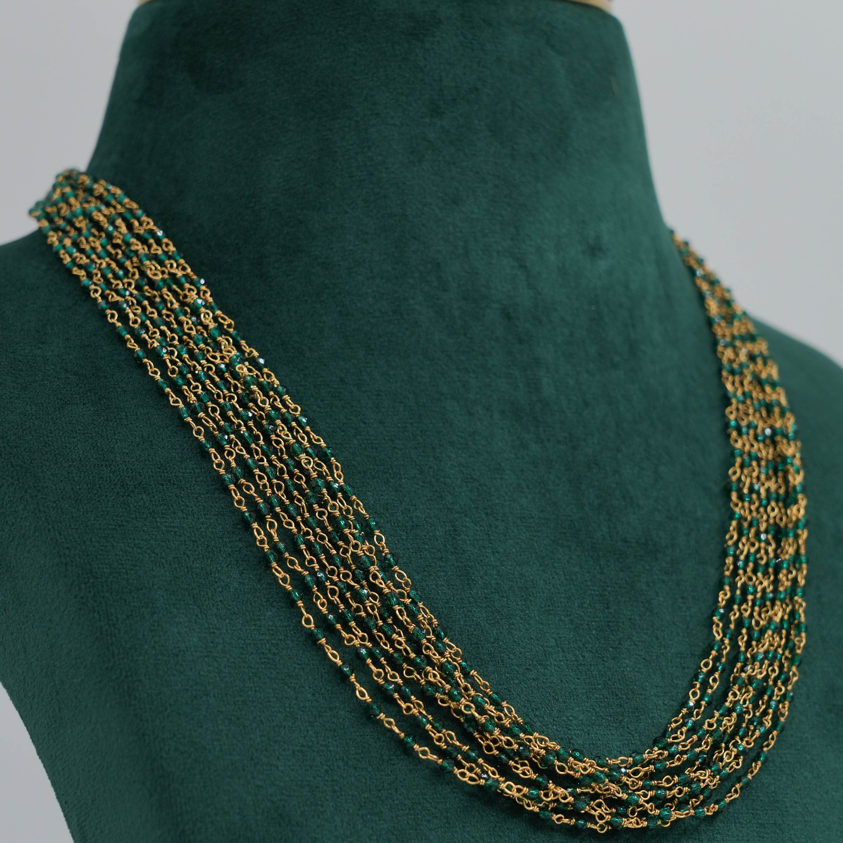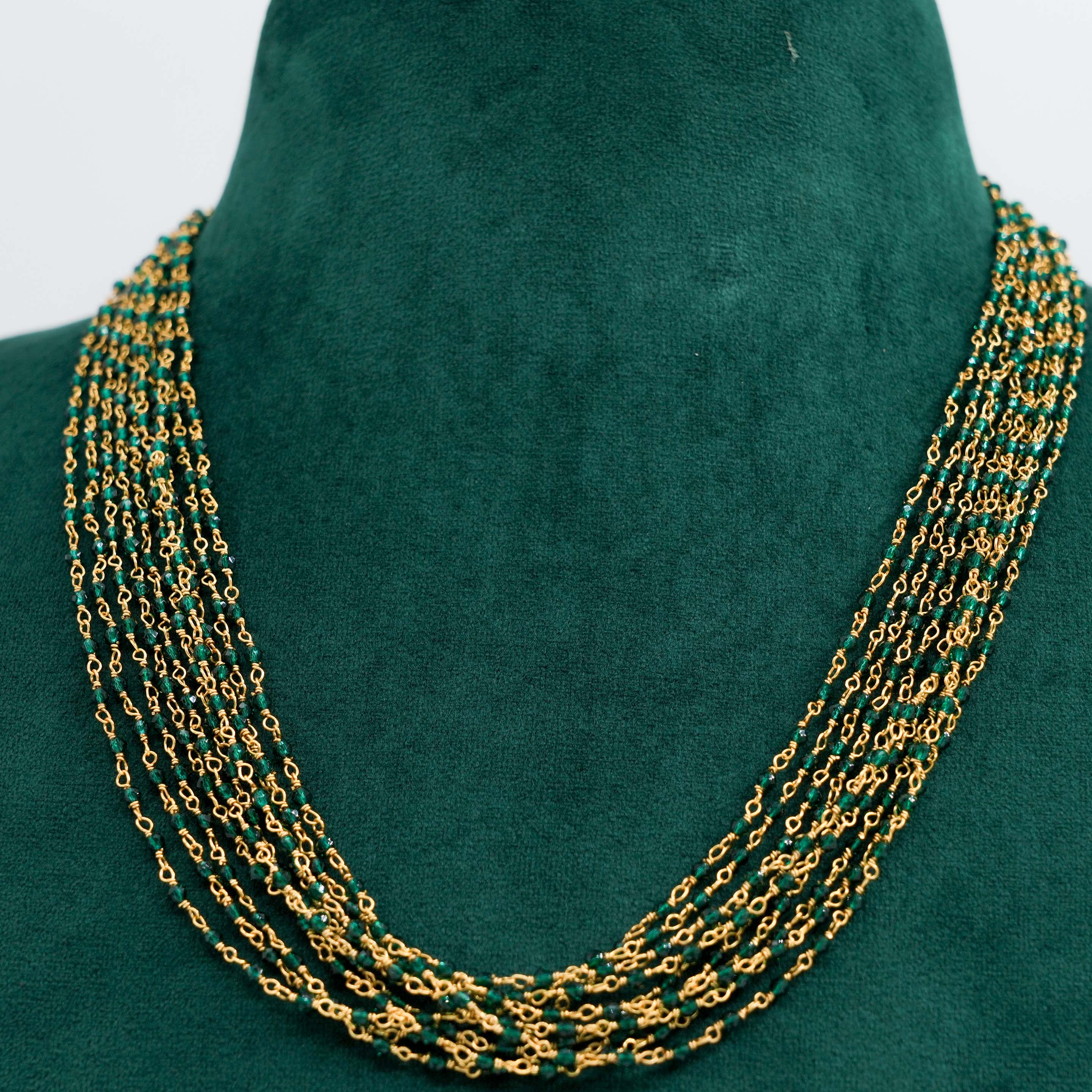 Delicate layered chain Necklace with green beads, perfect for everyday wear and special occasions. Buy layered chain Necklace from Raag Silver Jewellery in Hyderabad.