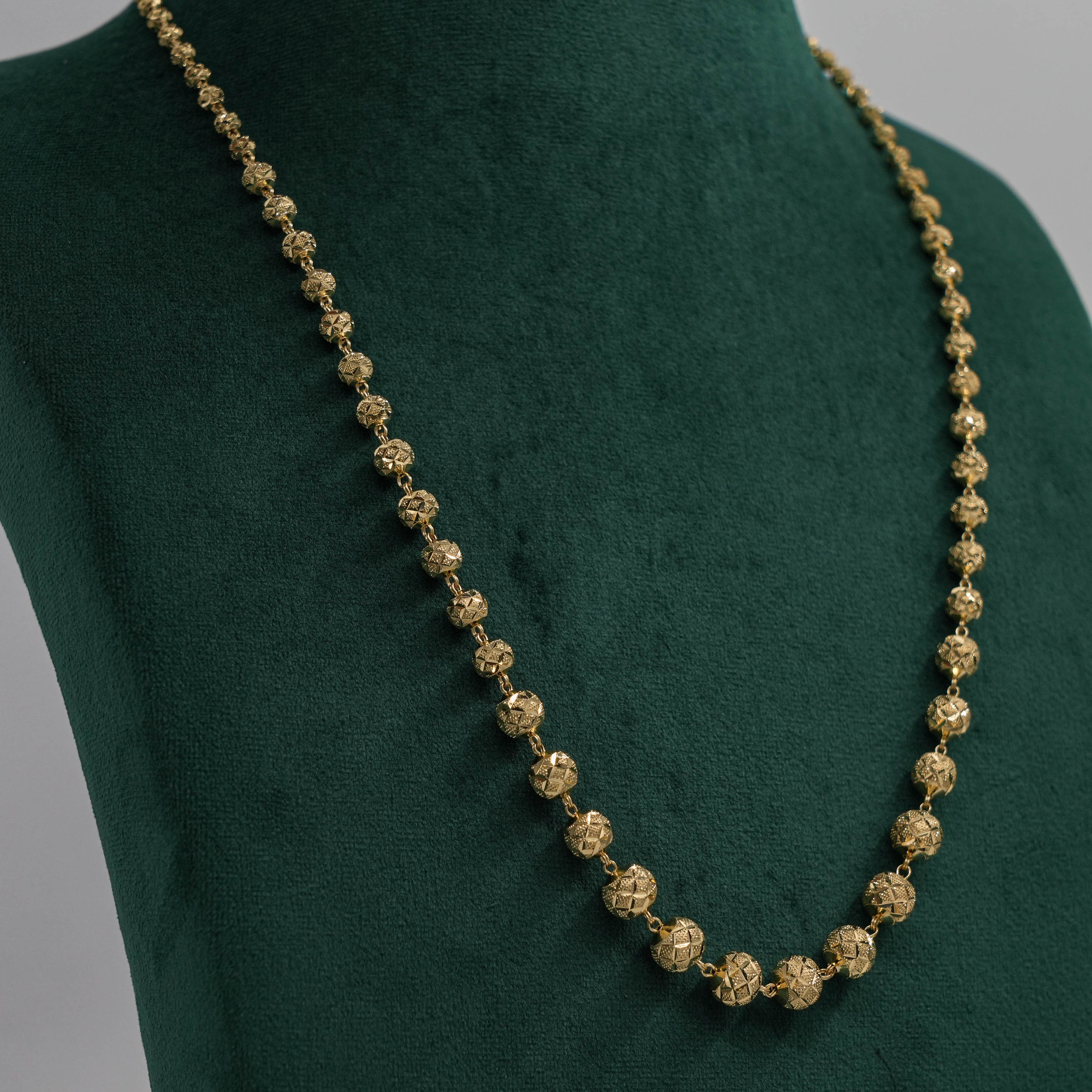 Elegant gold ball Necklace with textured finish, perfect for everyday wear and special occasions. Buy gold ball Necklace from Raag Silver Jewellery in Hyderabad.