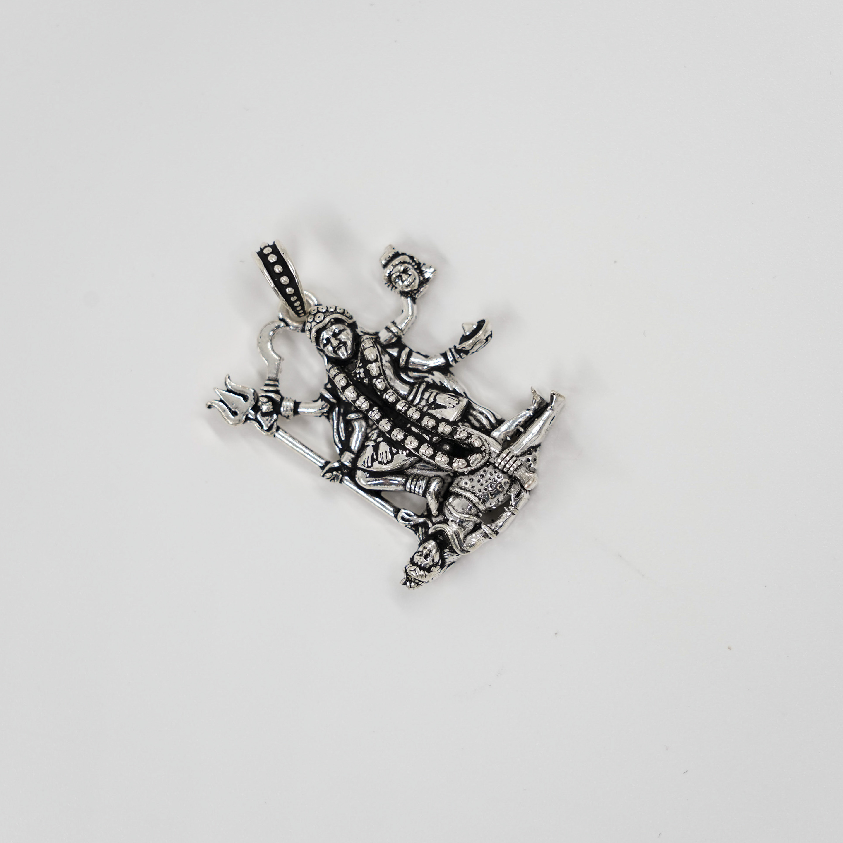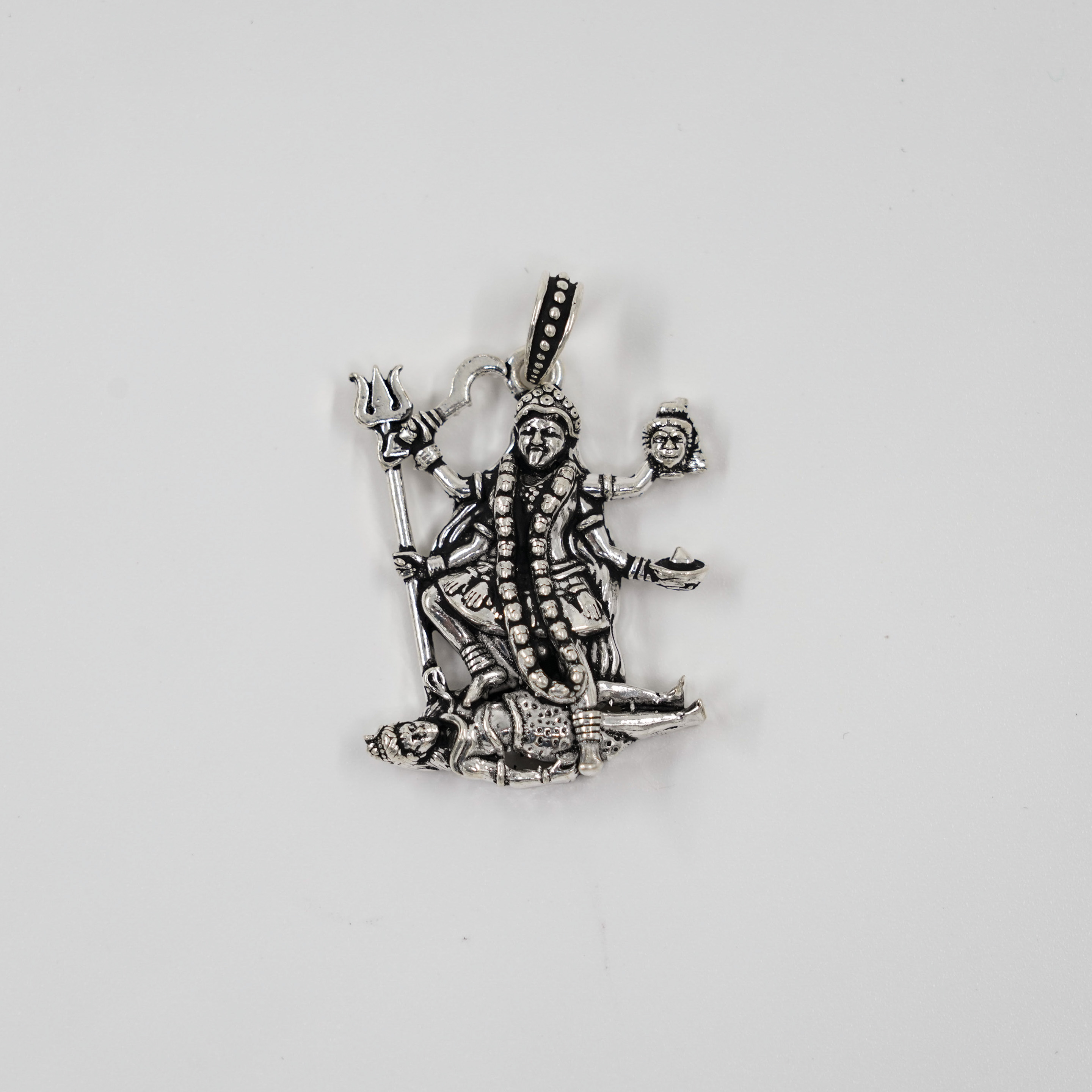 Ornate silver Kali pendant with intricate detailing and divine craftsmanship. Perfect for religious occasions. Buy Silver Kali Pendant from Raag Silver Jewellery in Hyderabad.