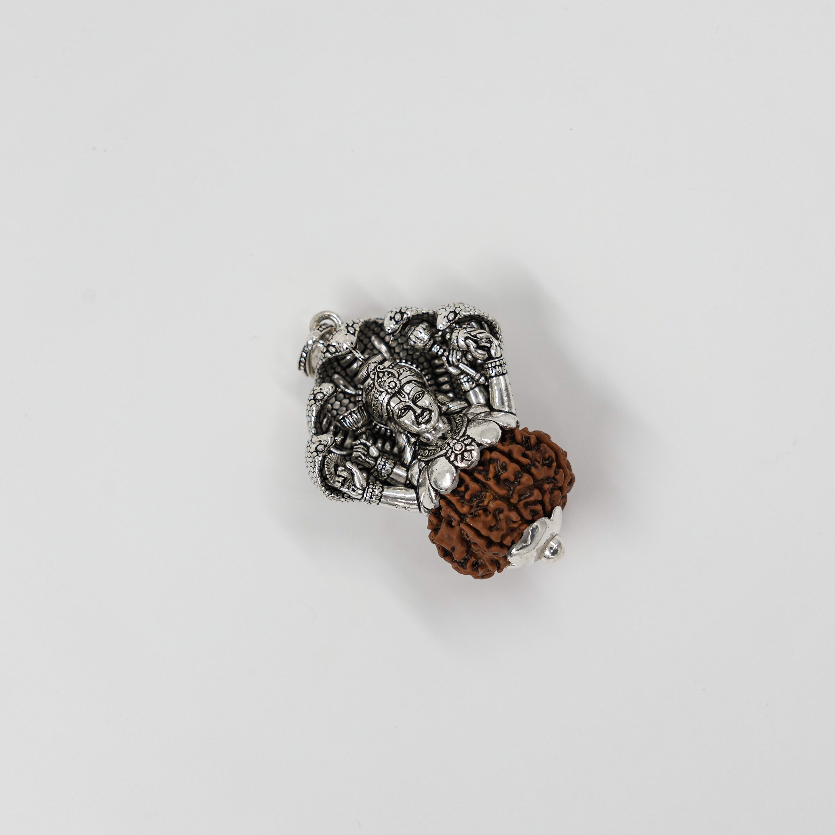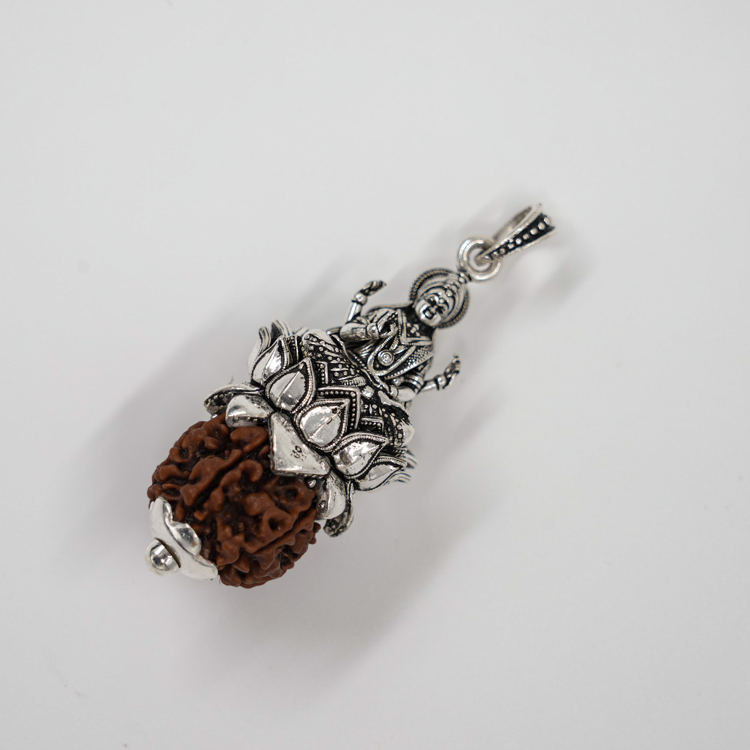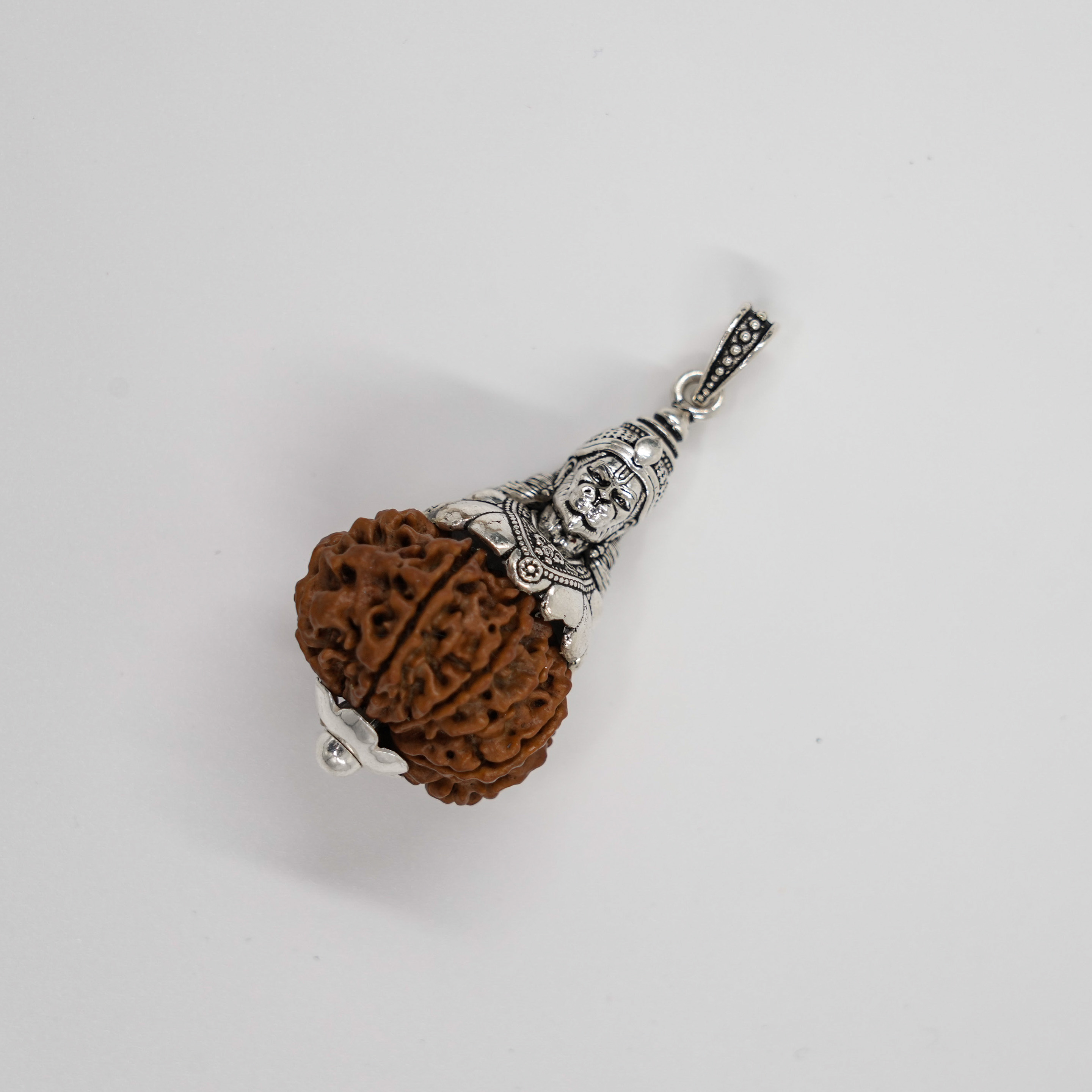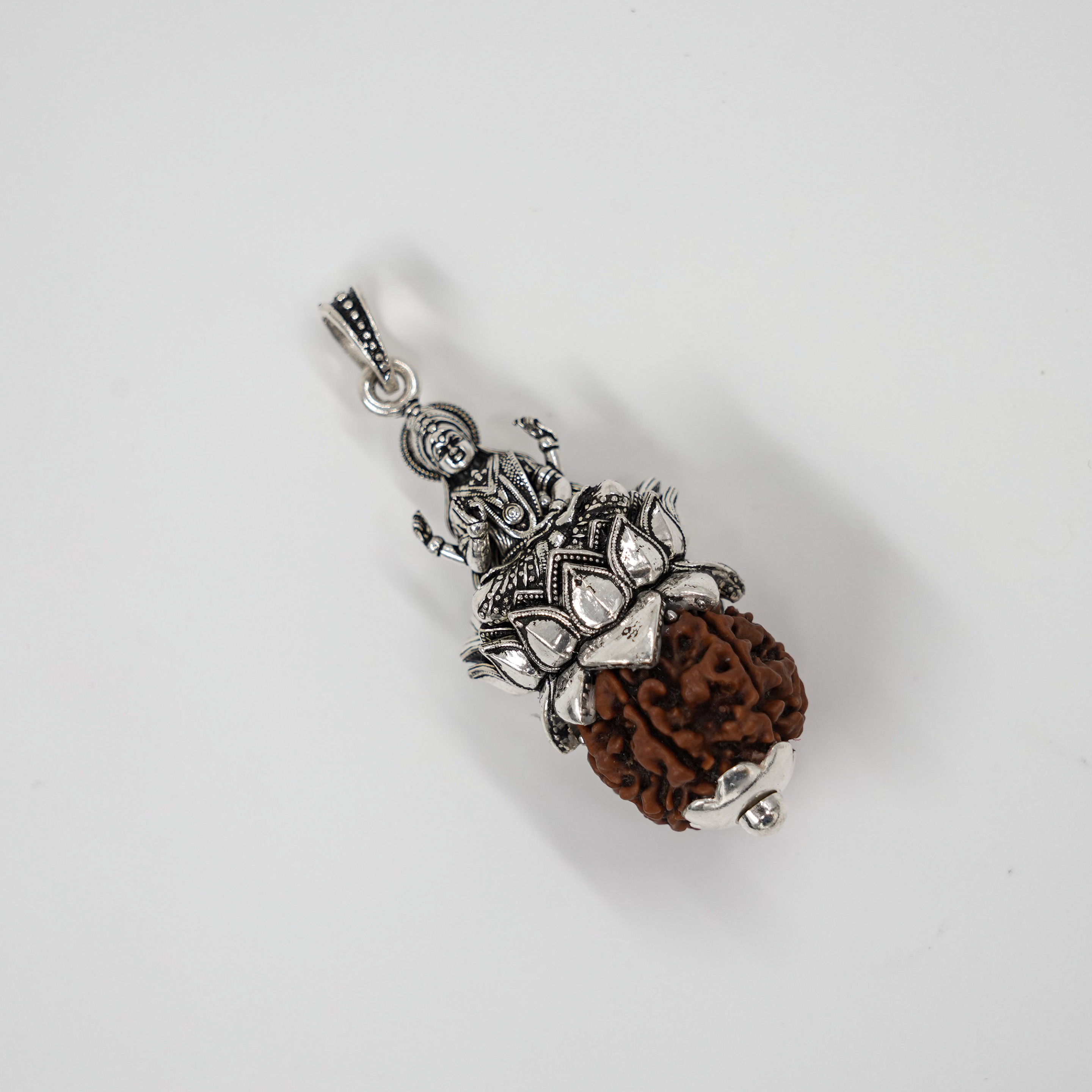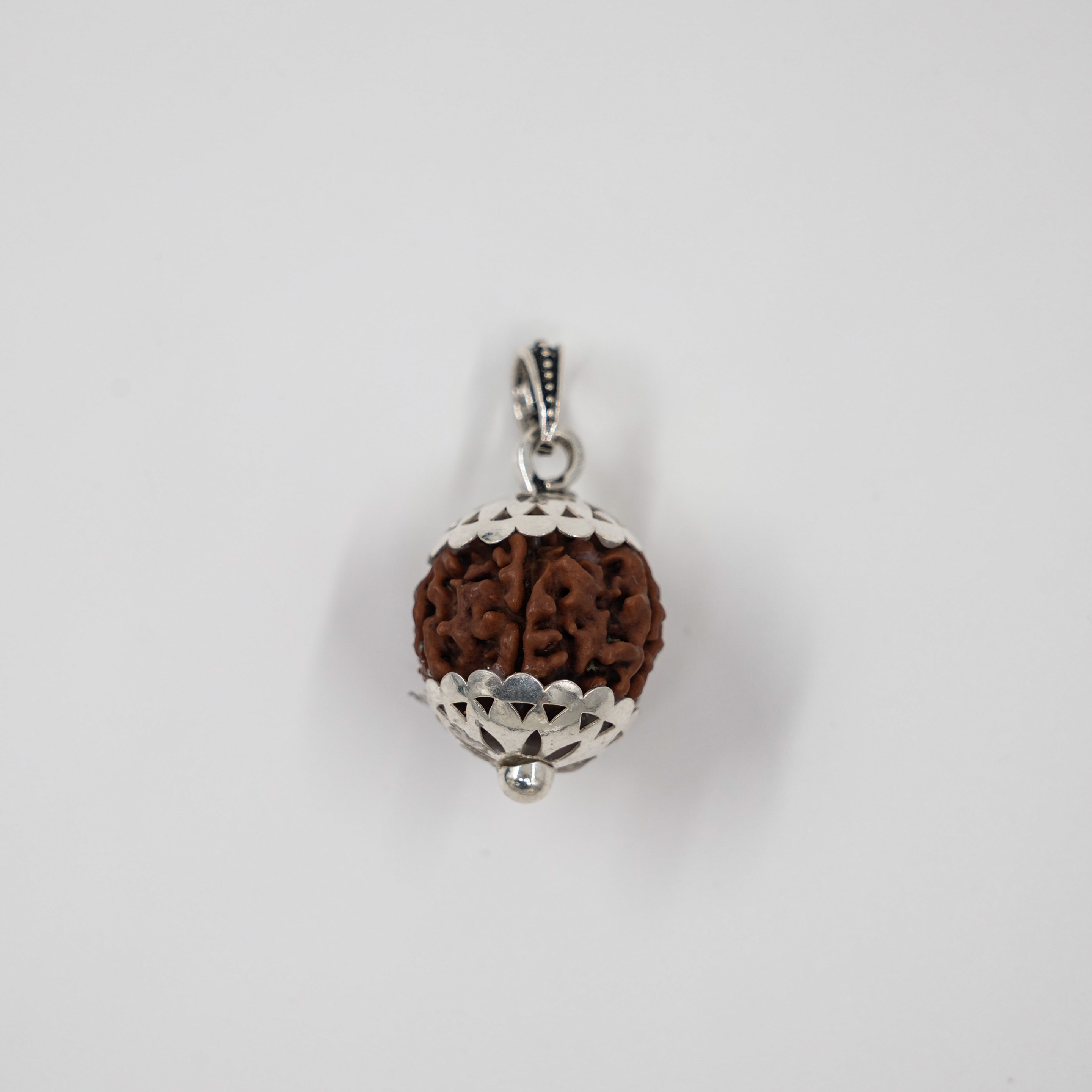 Brown rudraksha pendant in silver setting, traditional design. Perfect for daily wear. Buy rudraksha silver pendant from Raag Silver Jewellery in Hyderabad.