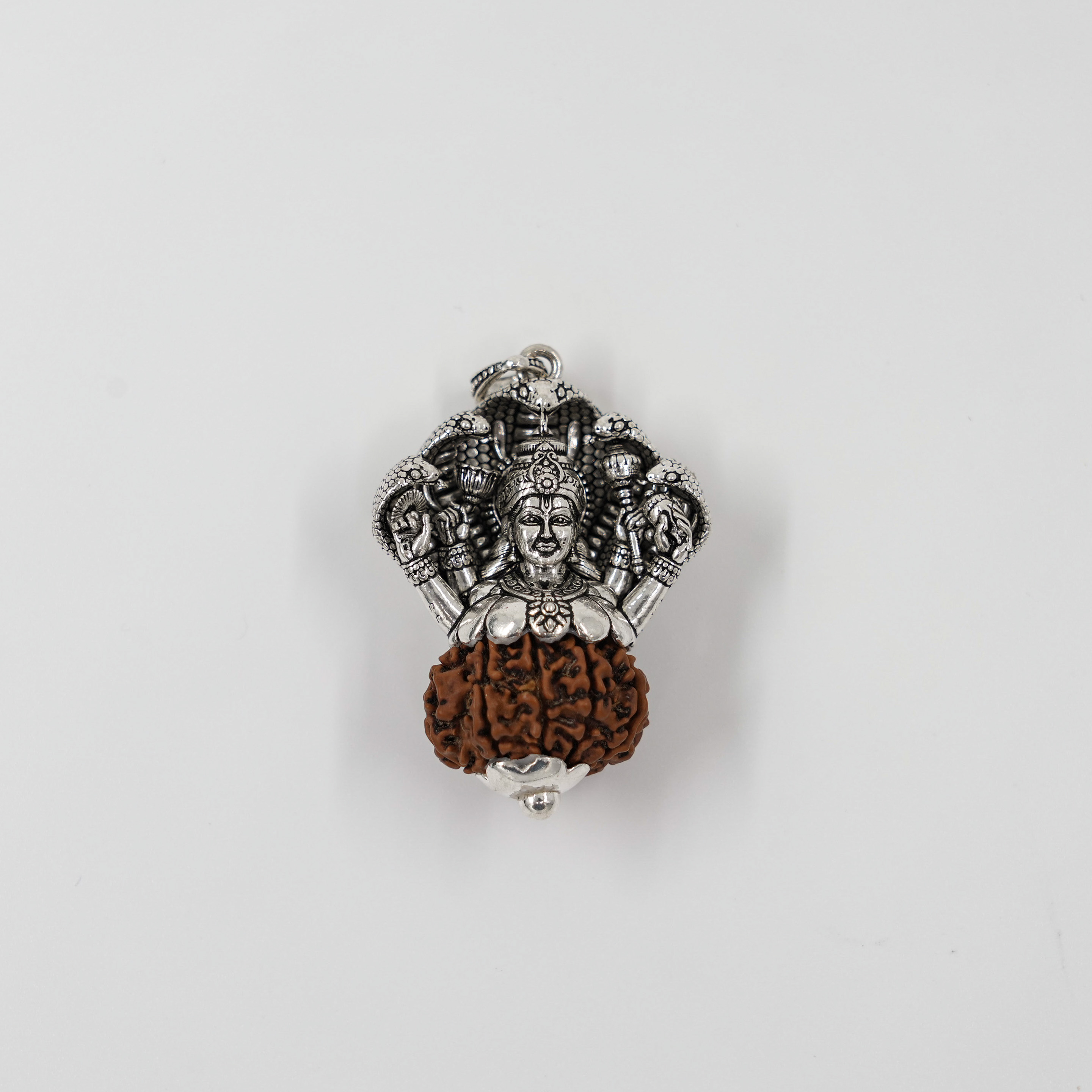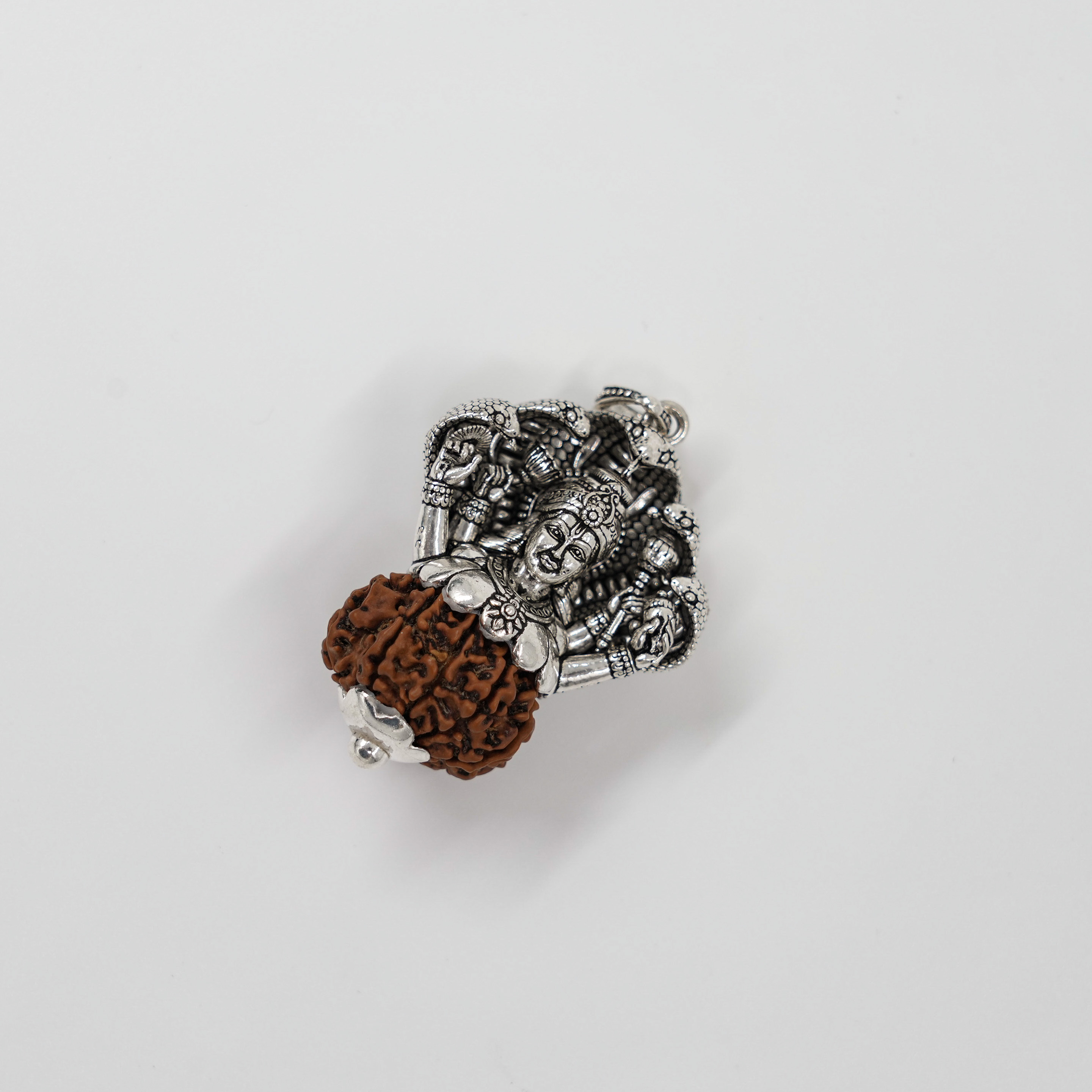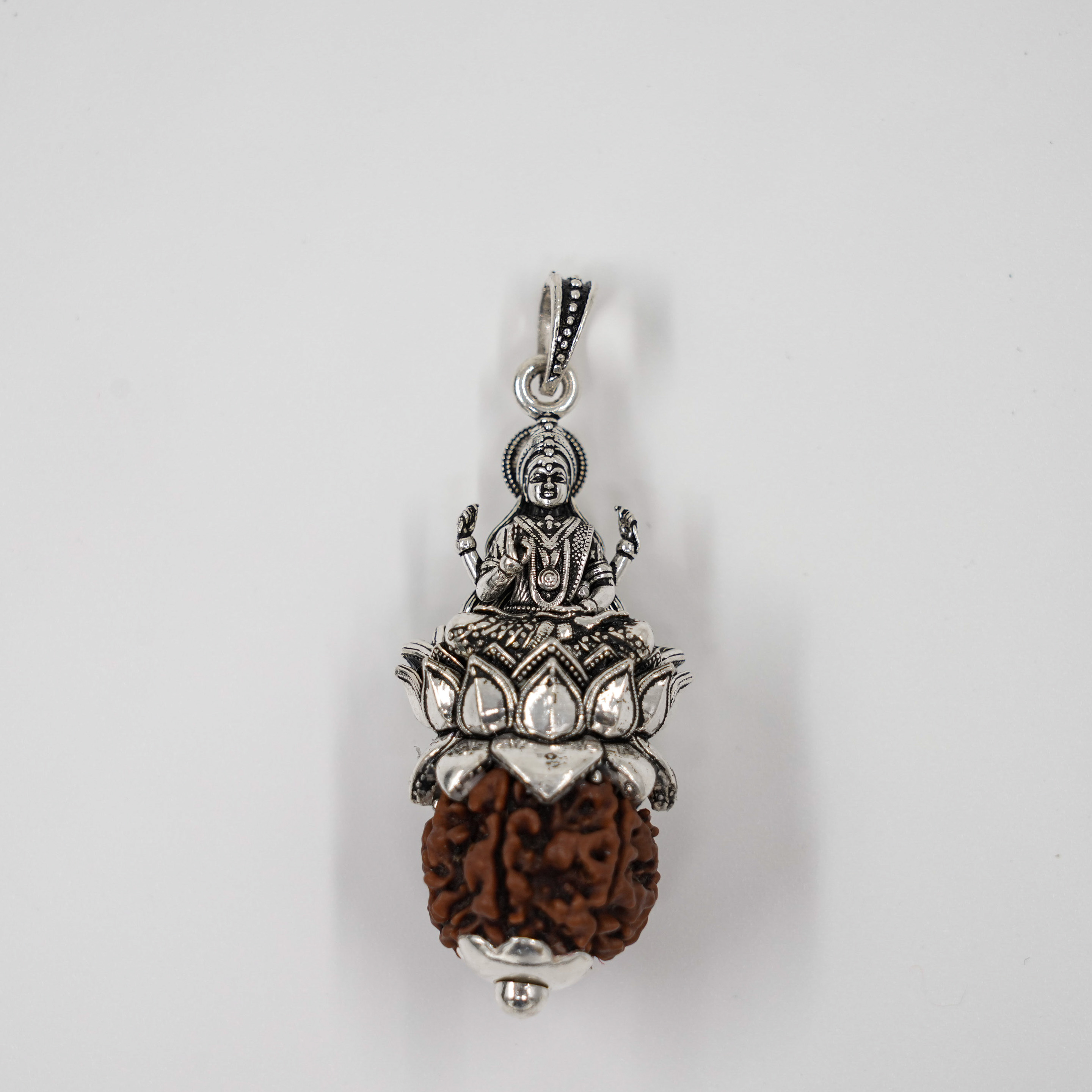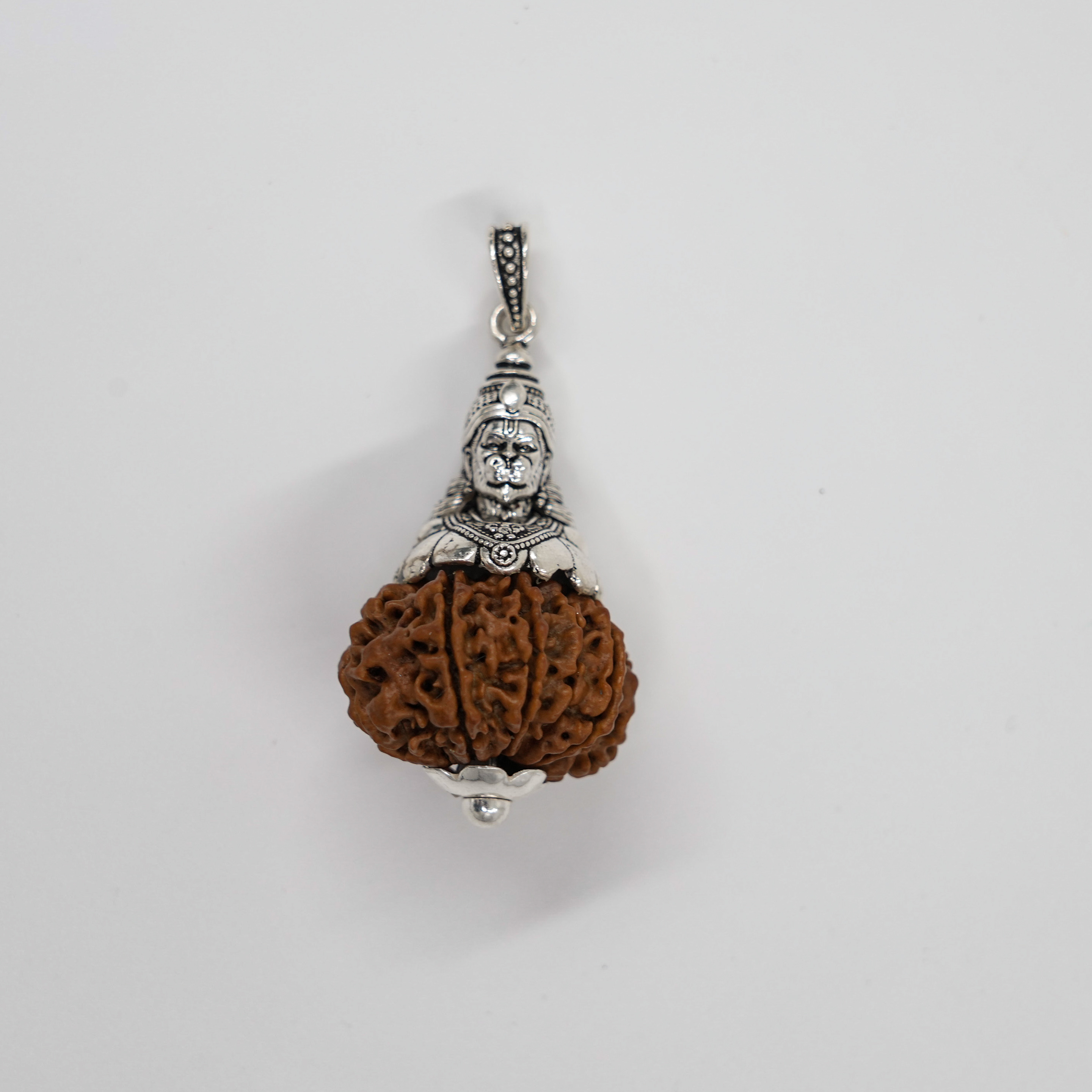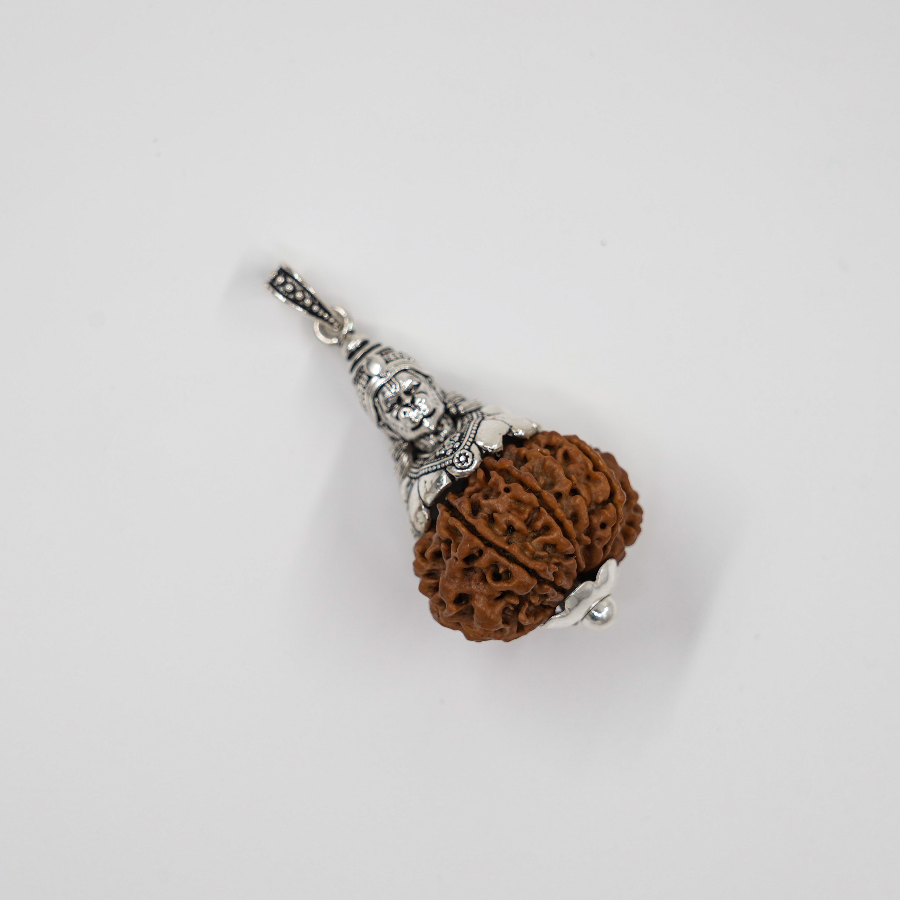Brown rudraksha pendant in silver setting, traditional design. Perfect for daily wear. Buy rudraksha silver pendant from Raag Silver Jewellery in Hyderabad.