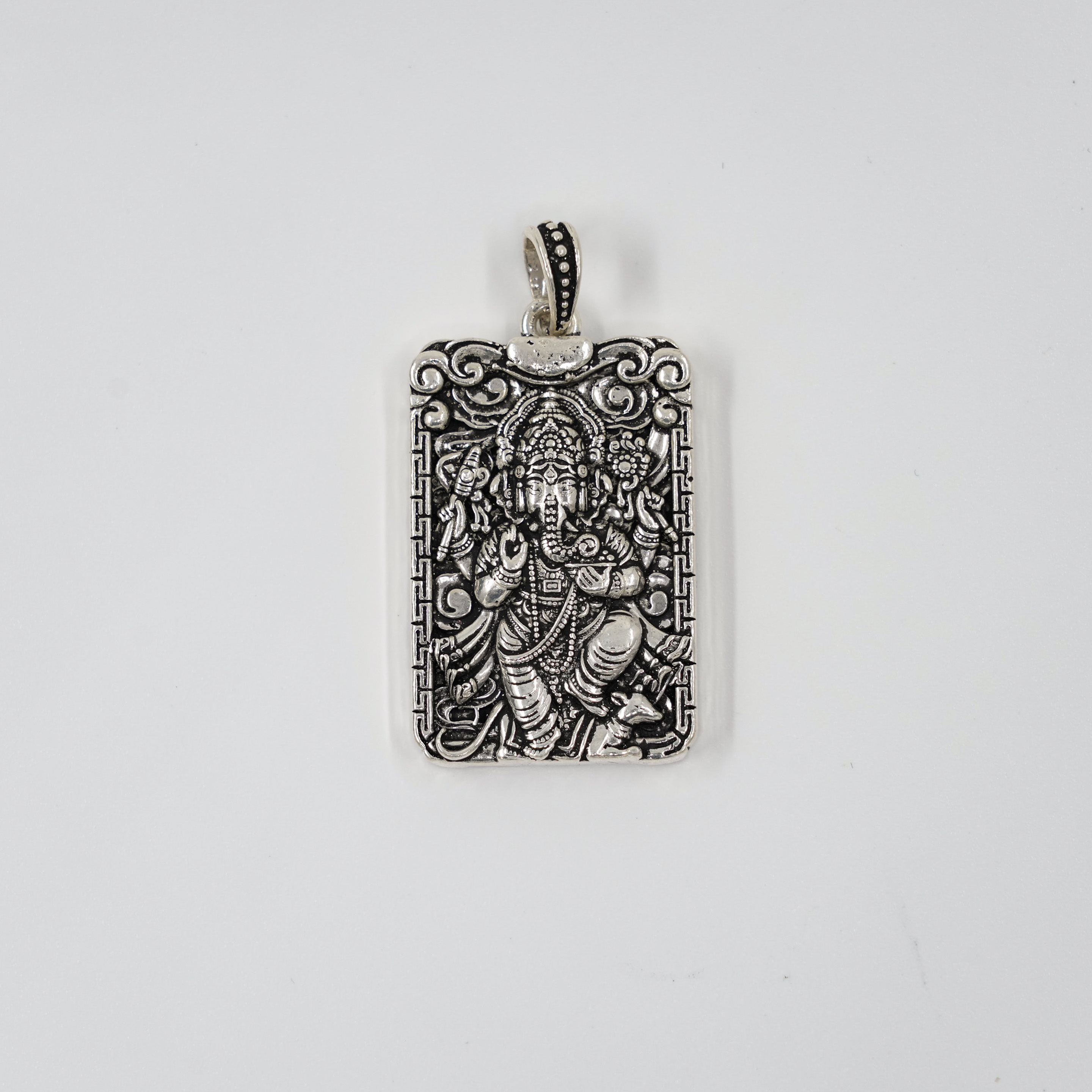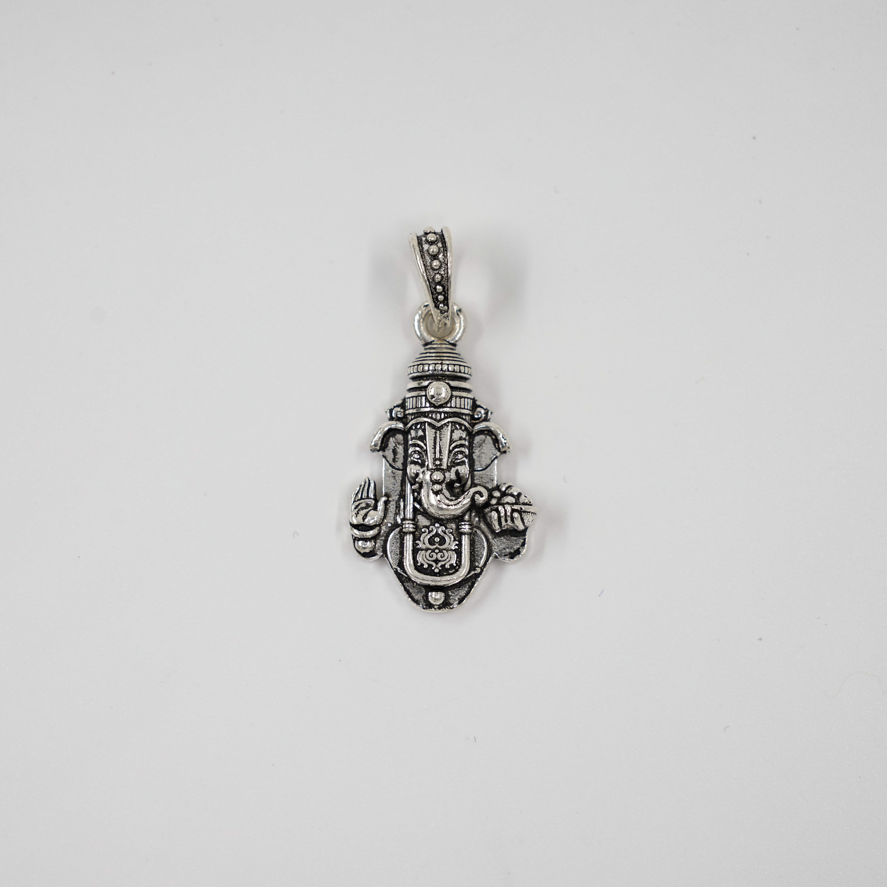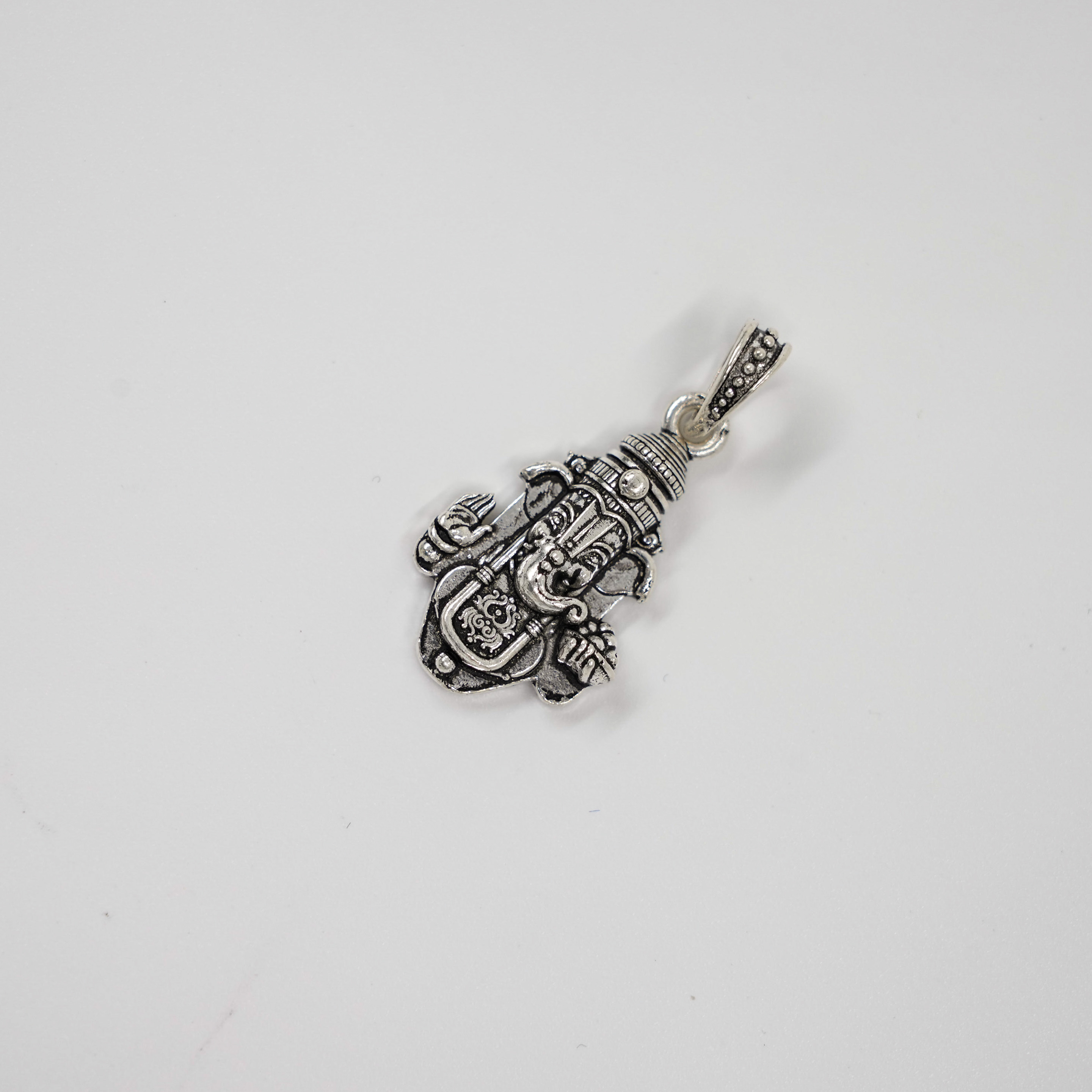 Intricate silver Ganesha pendant with detailed carving. Perfect for spiritual wear. Buy Silver Ganesha Pendant from Raag Silver Jewellery in Hyderabad.