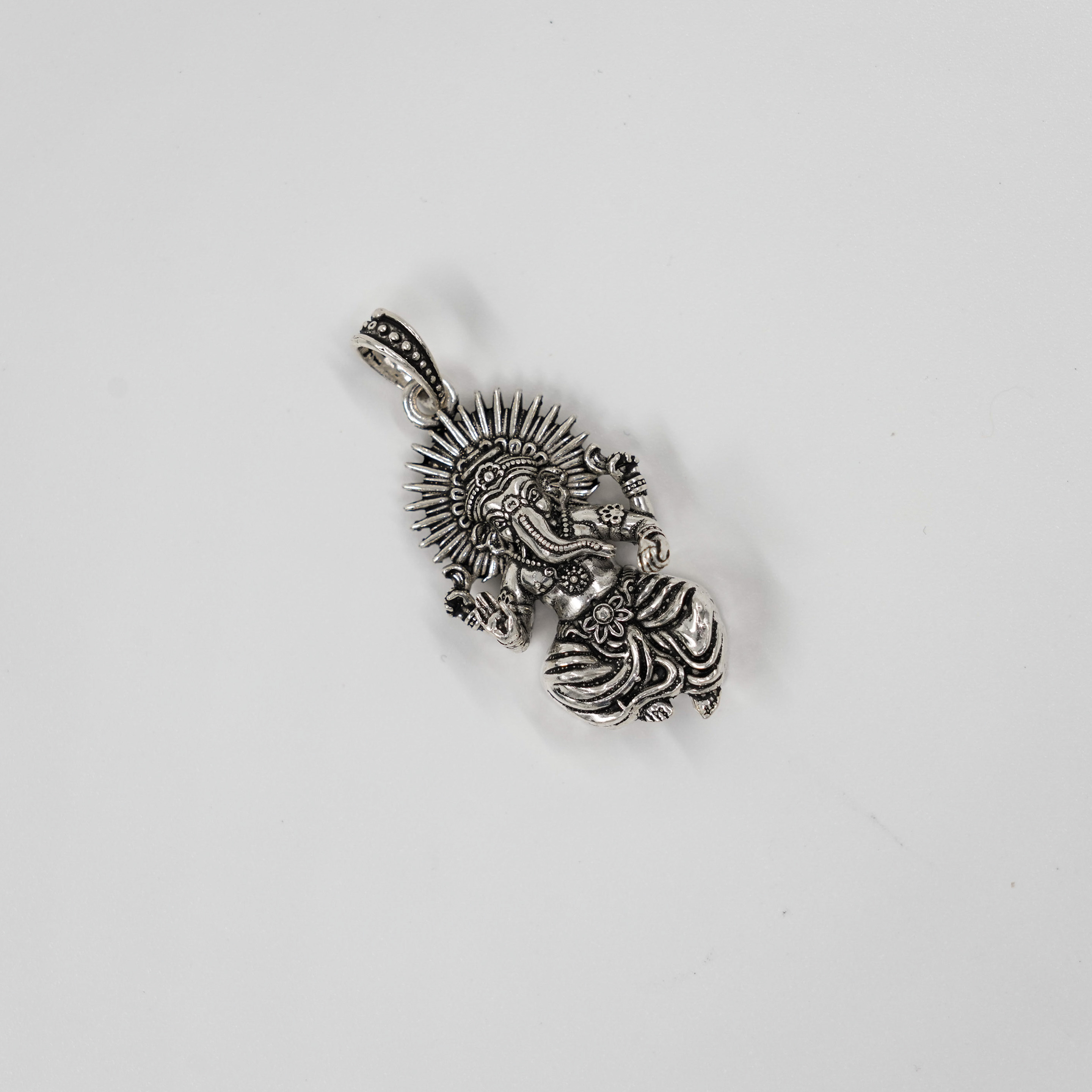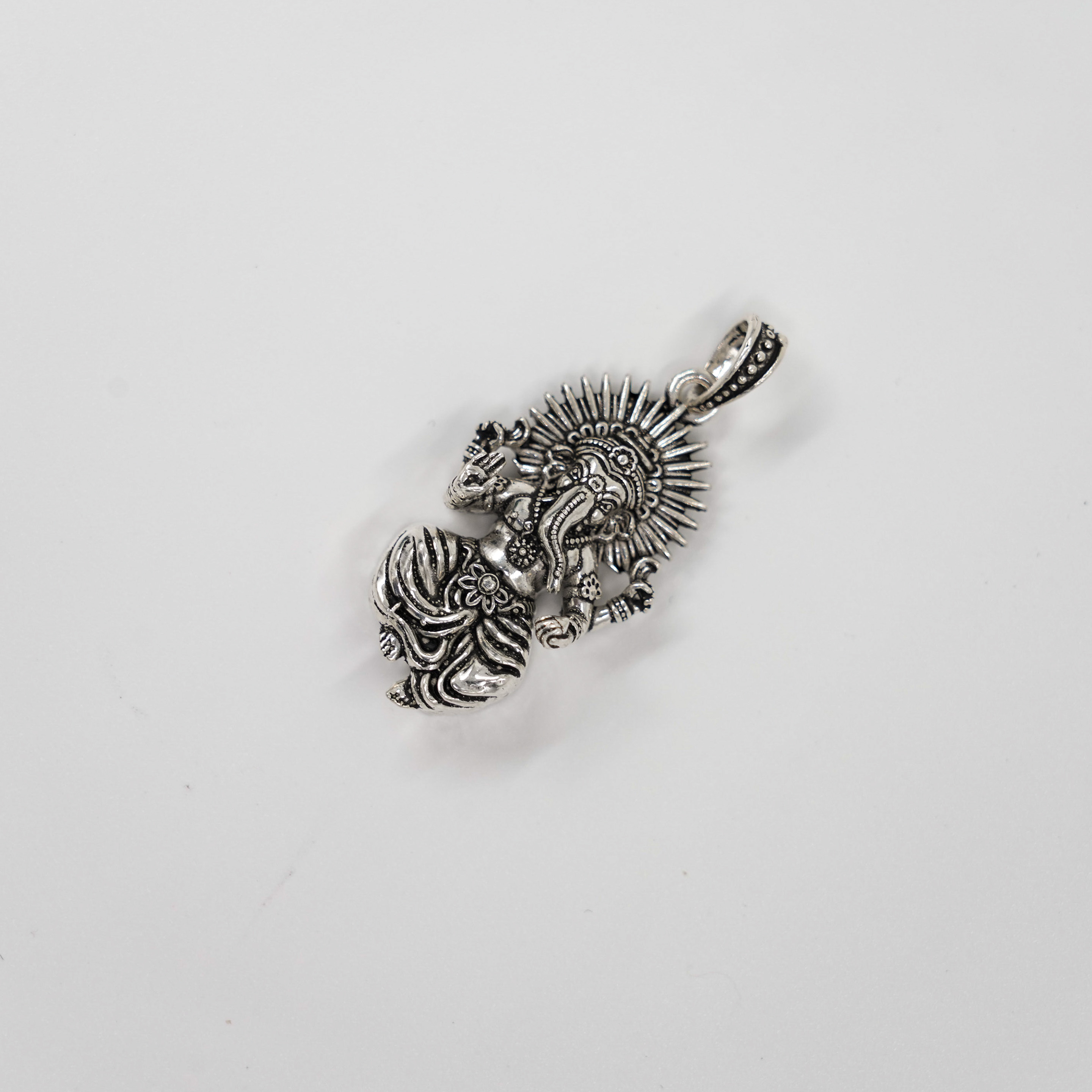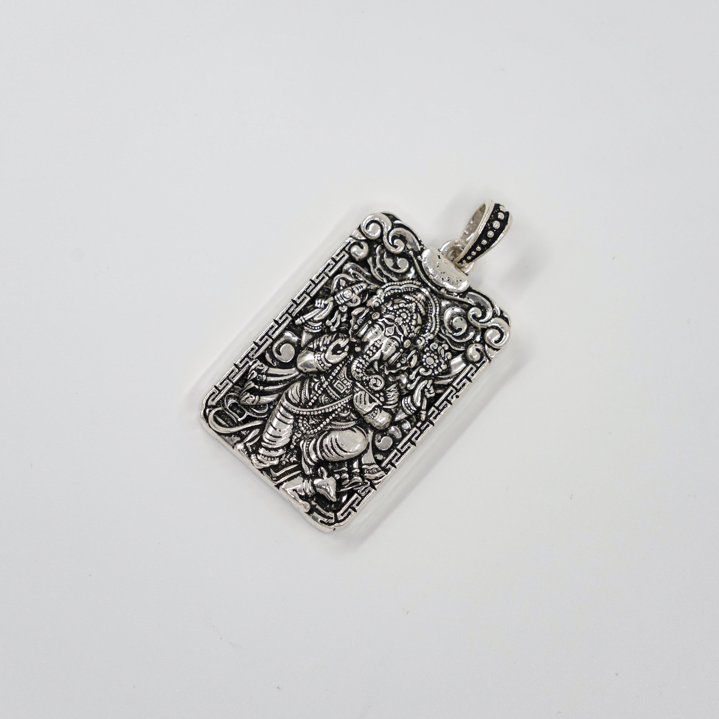 Intricate silver Ganesha pendant with detailed carving. Perfect for spiritual wear. Buy Silver Ganesha Pendant from Raag Silver Jewellery in Hyderabad.