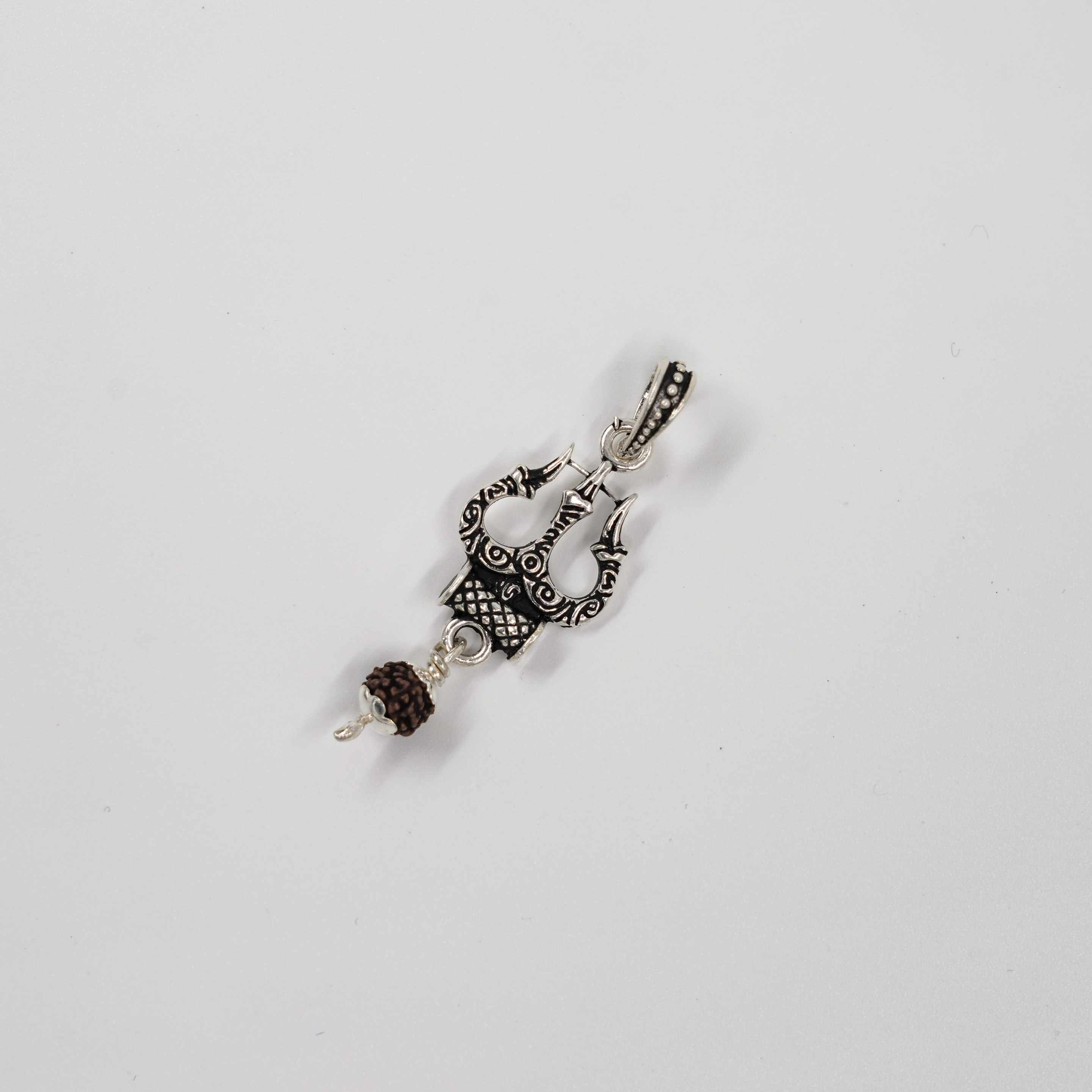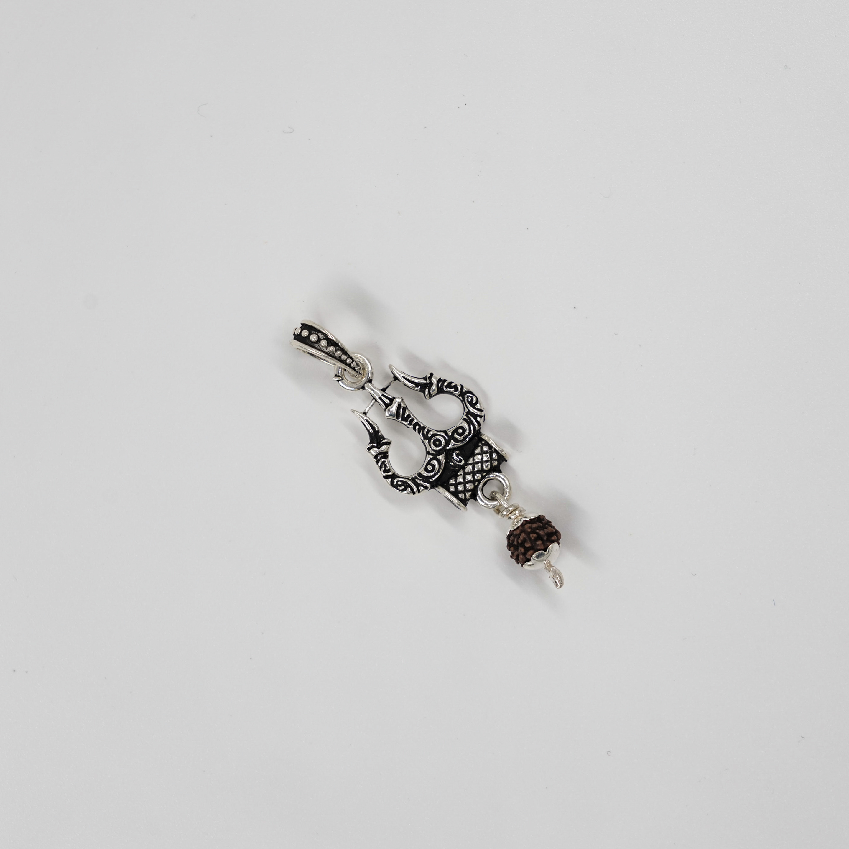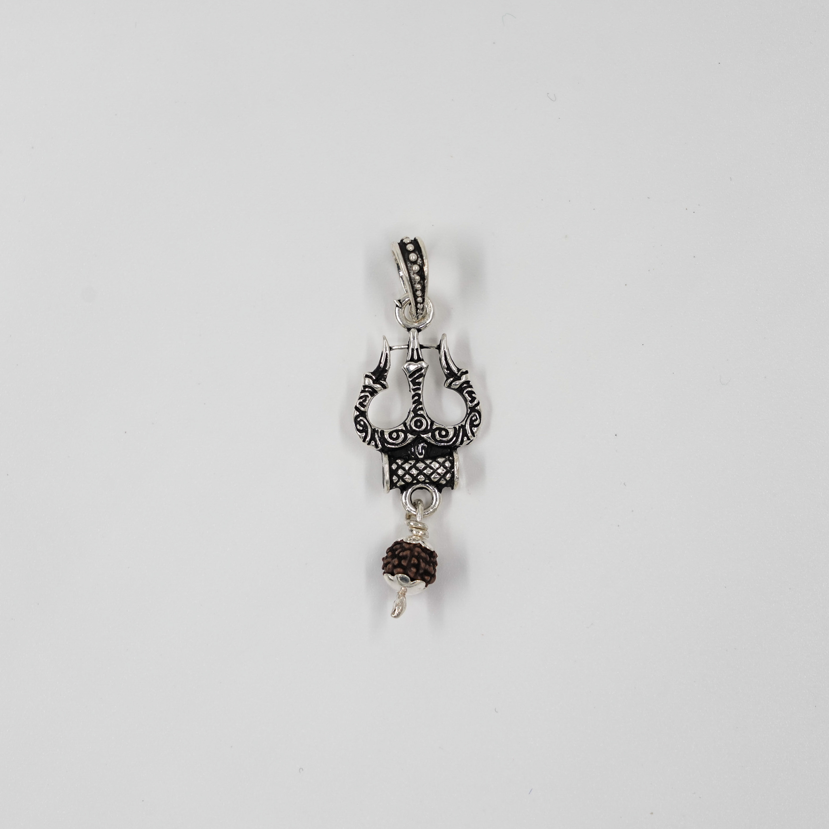 Ornate silver pendant featuring a traditional trident design. A unique spiritual accessory. Buy Silver Trident Pendant from Raag Silver Jewellery in Hyderabad.