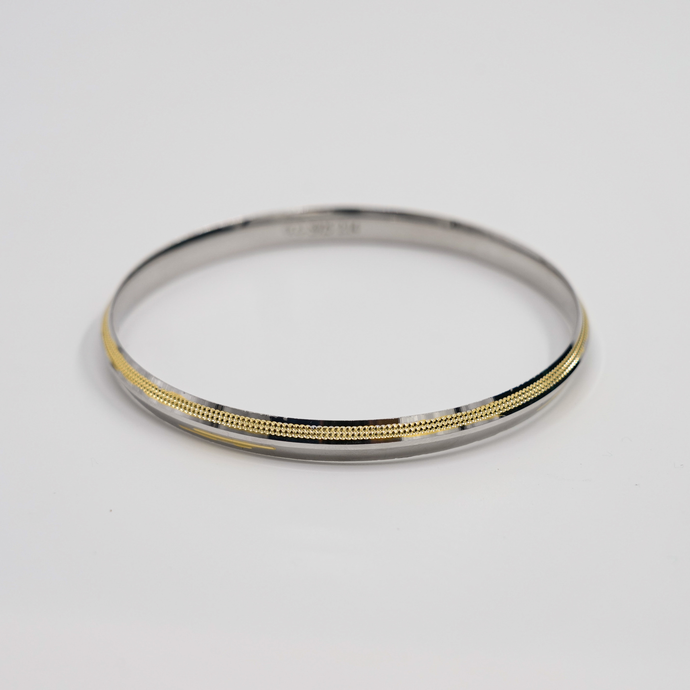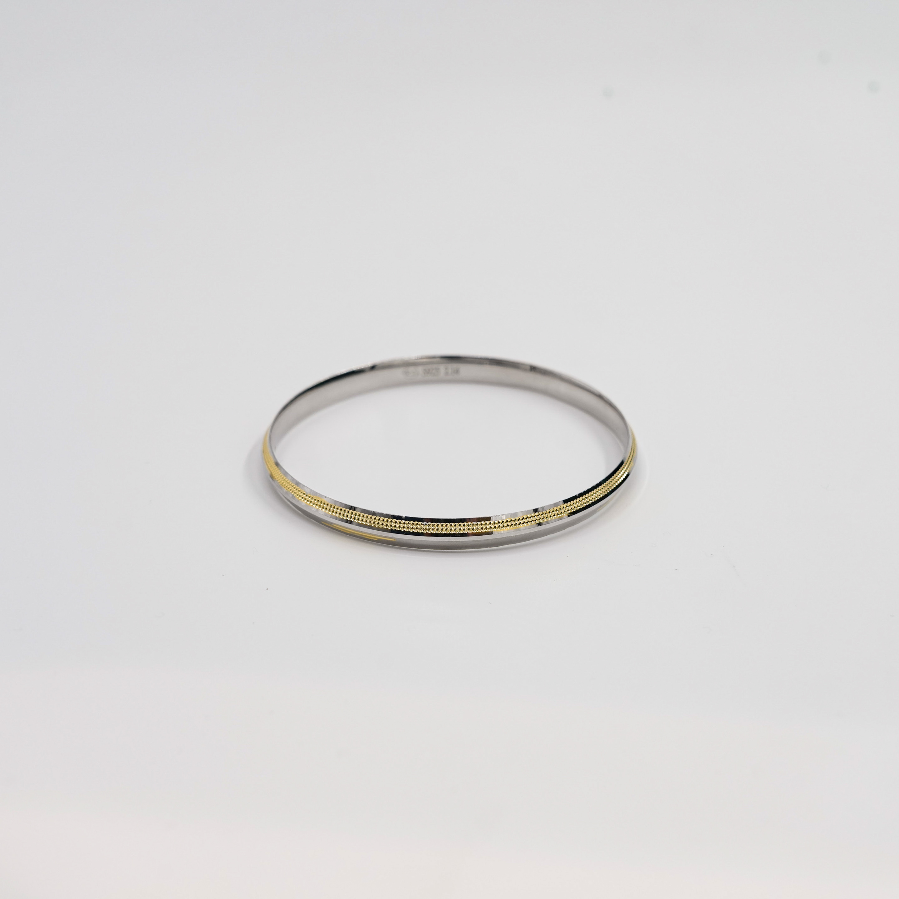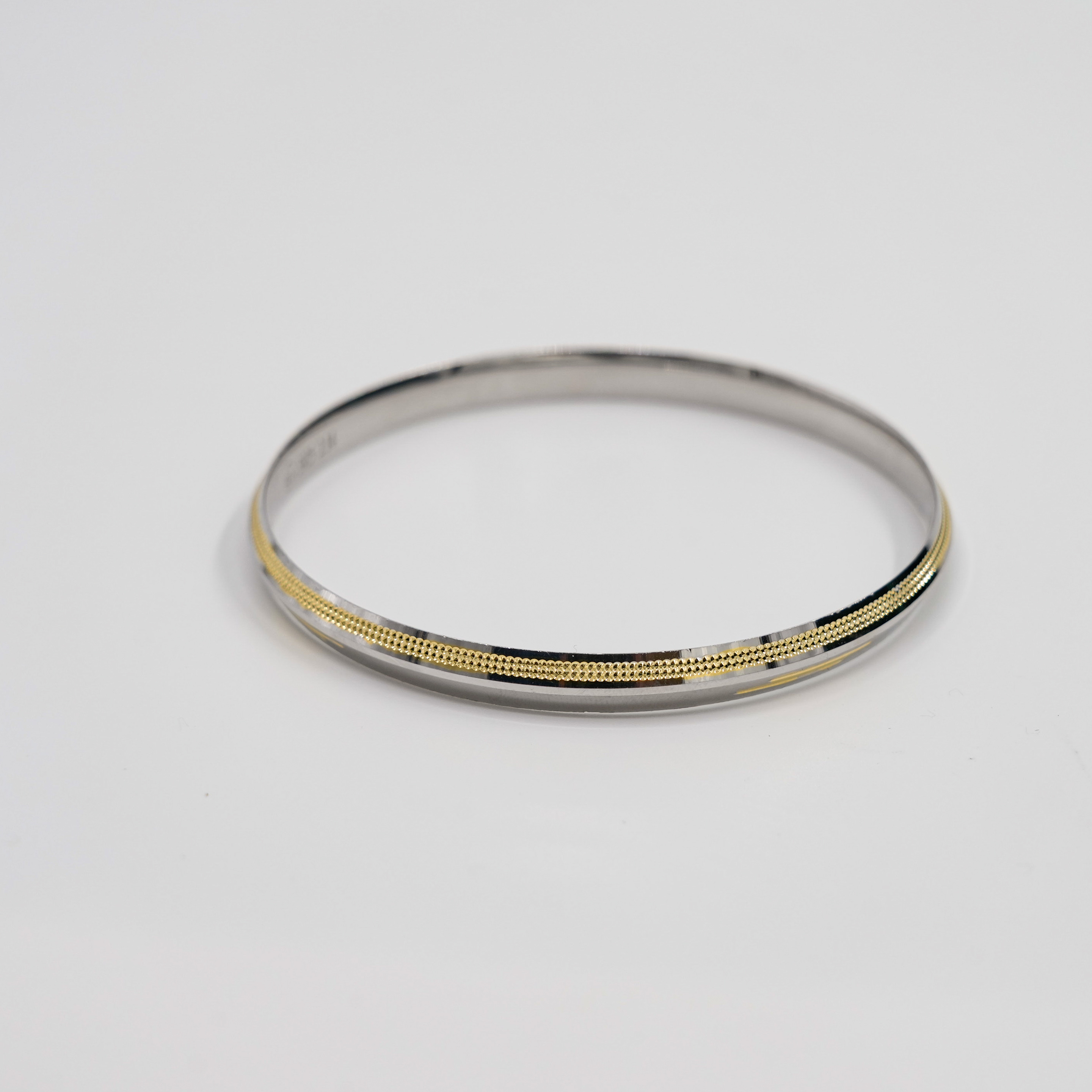 Classic silver Kada bangle with gold plated accent, perfect for traditional attire and daily wear. Buy silver Kada bangle from Raag Silver Jewellery in Hyderabad.