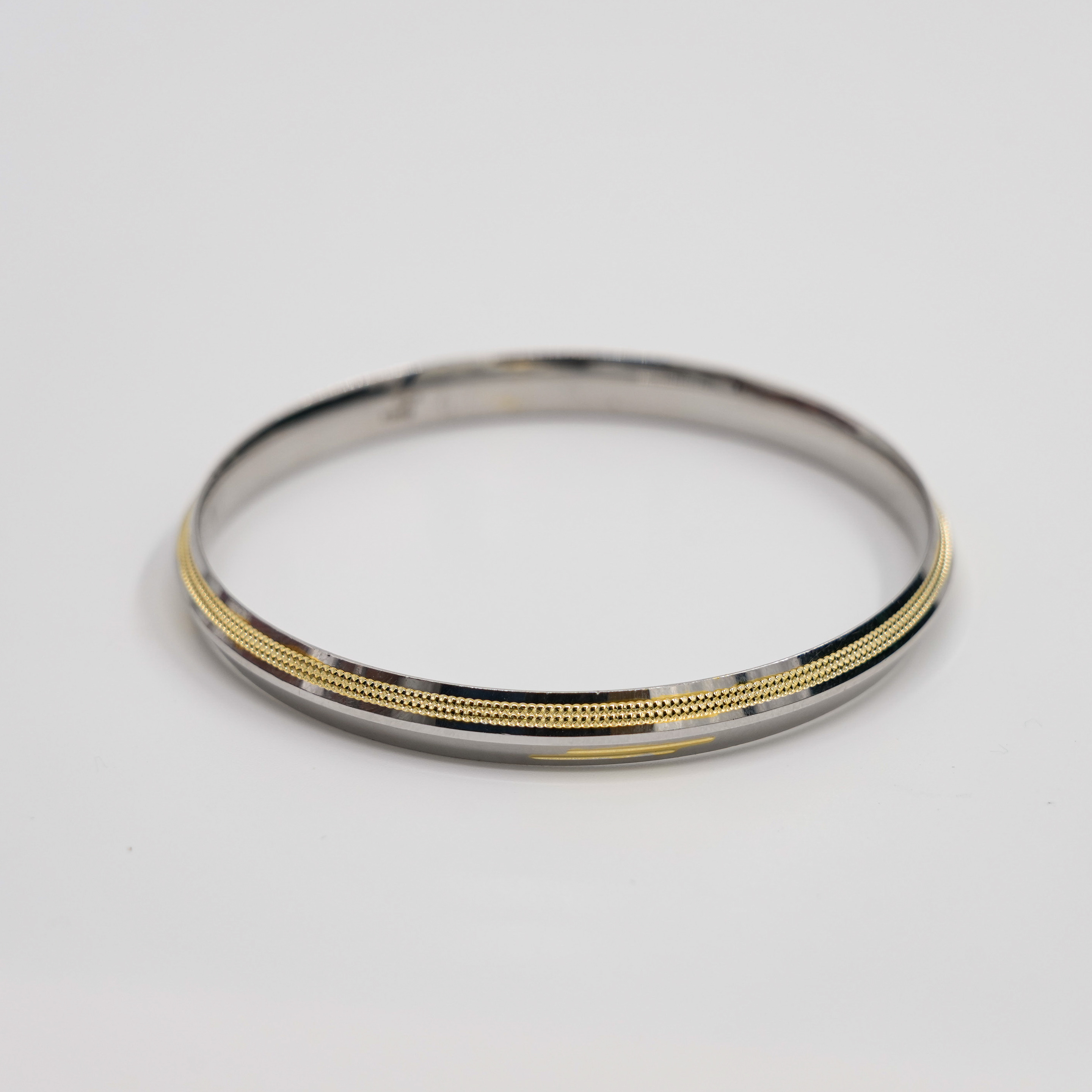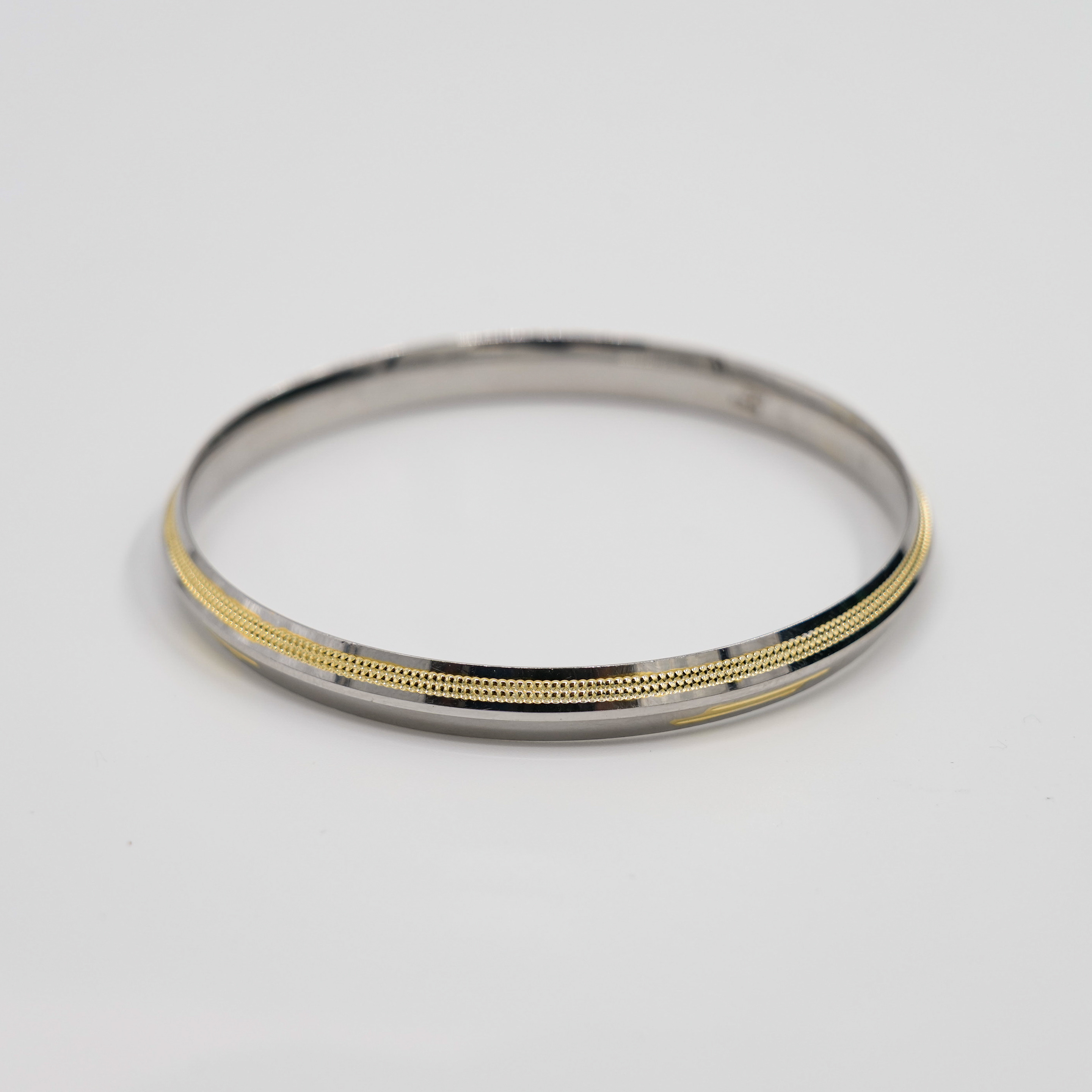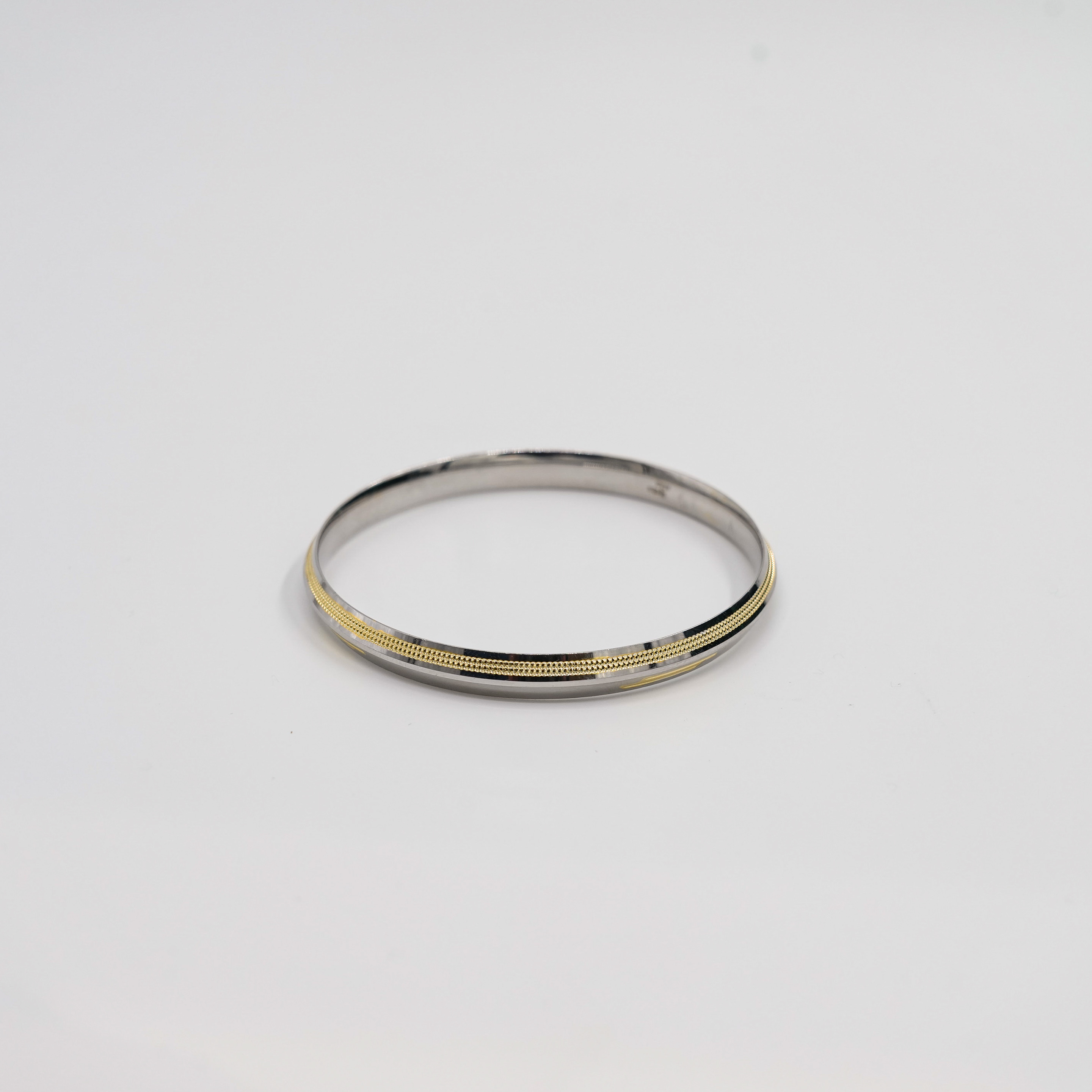 Classic silver Kada bangle with gold plated accent, perfect for traditional attire and daily wear. Buy silver Kada bangle from Raag Silver Jewellery in Hyderabad.