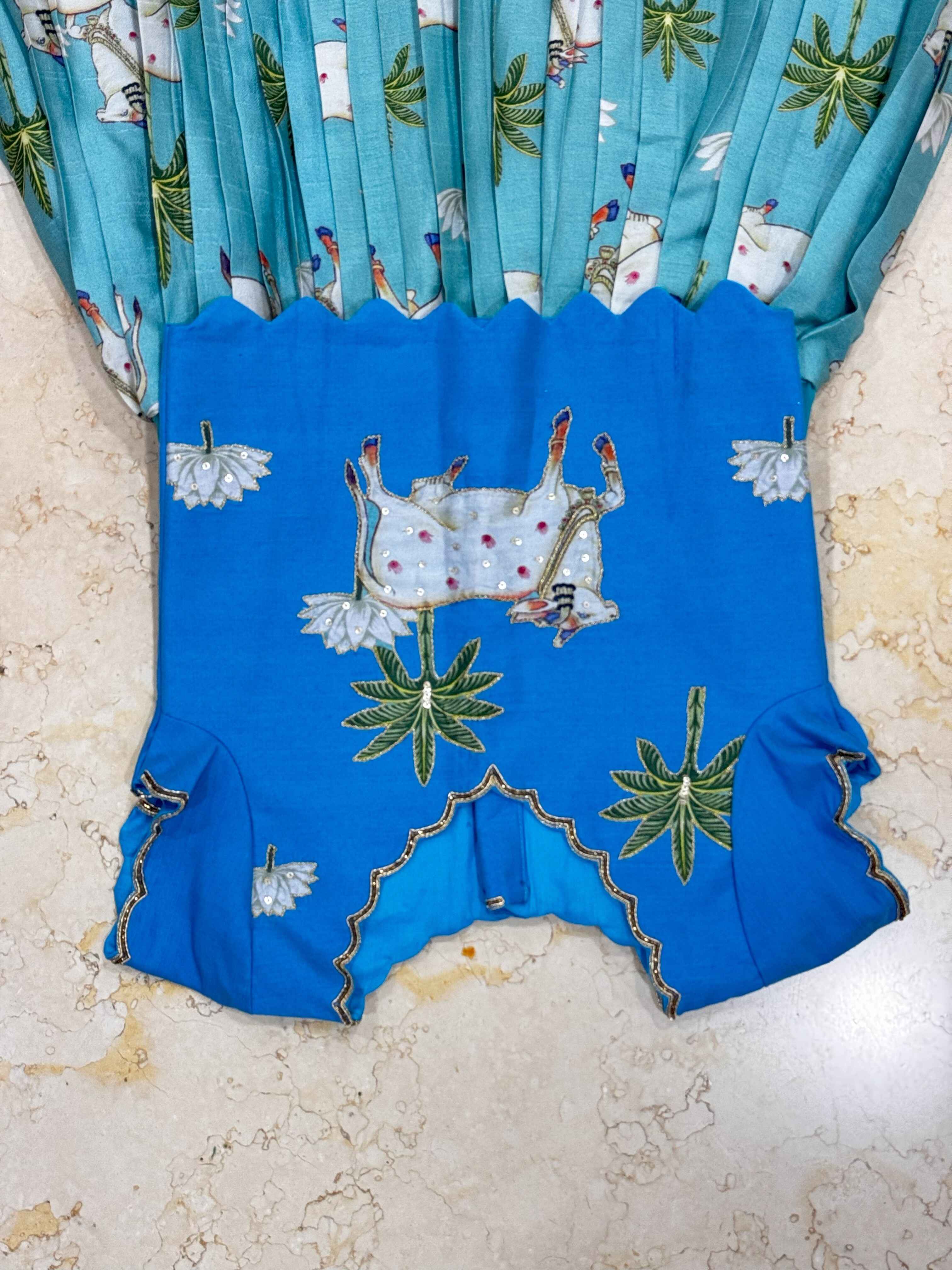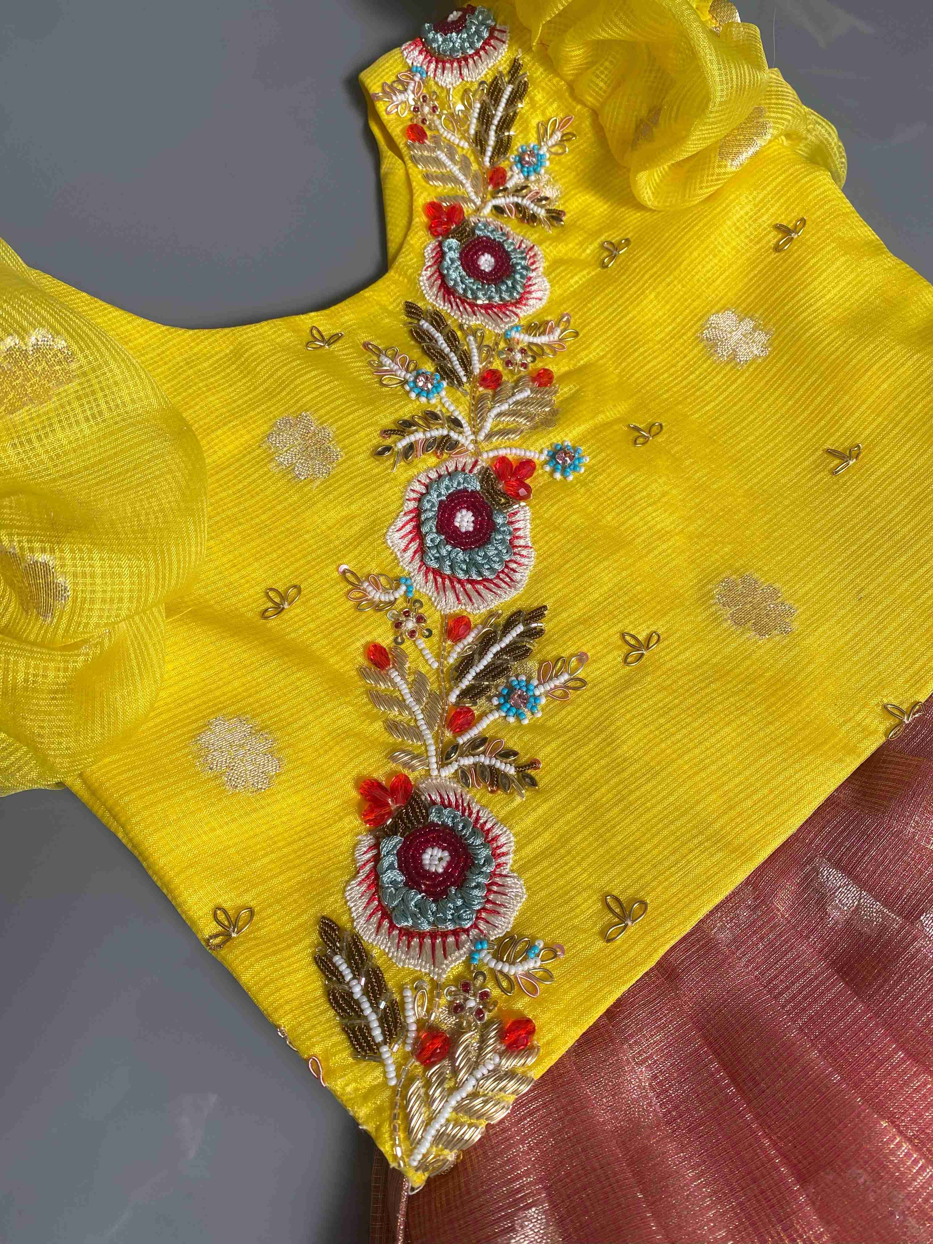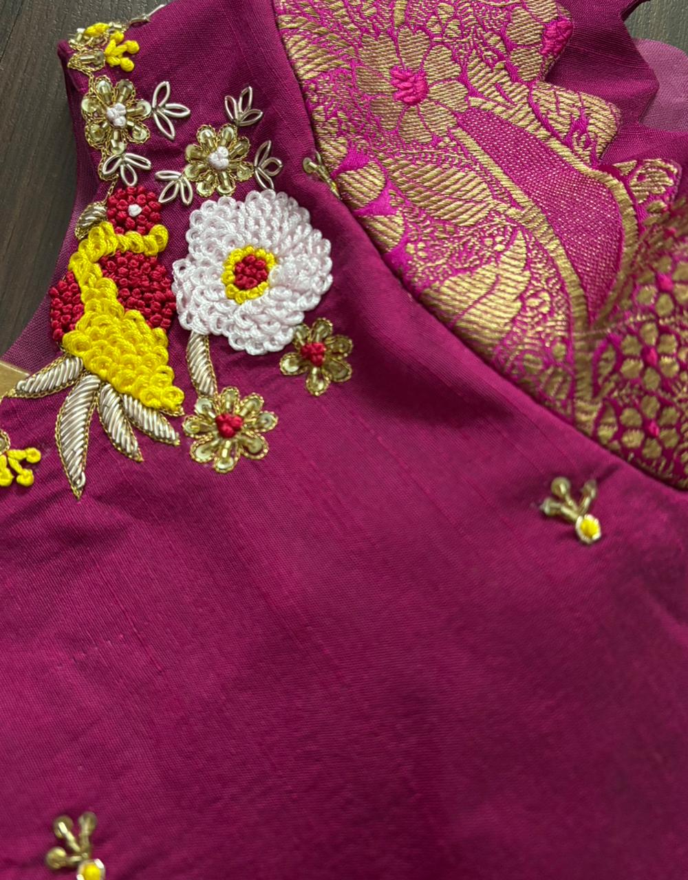 💗 Elegant pink blouse with delicate floral embroidery, scalloped hemline, and beautifully detailed sleeves for a festive charm.
