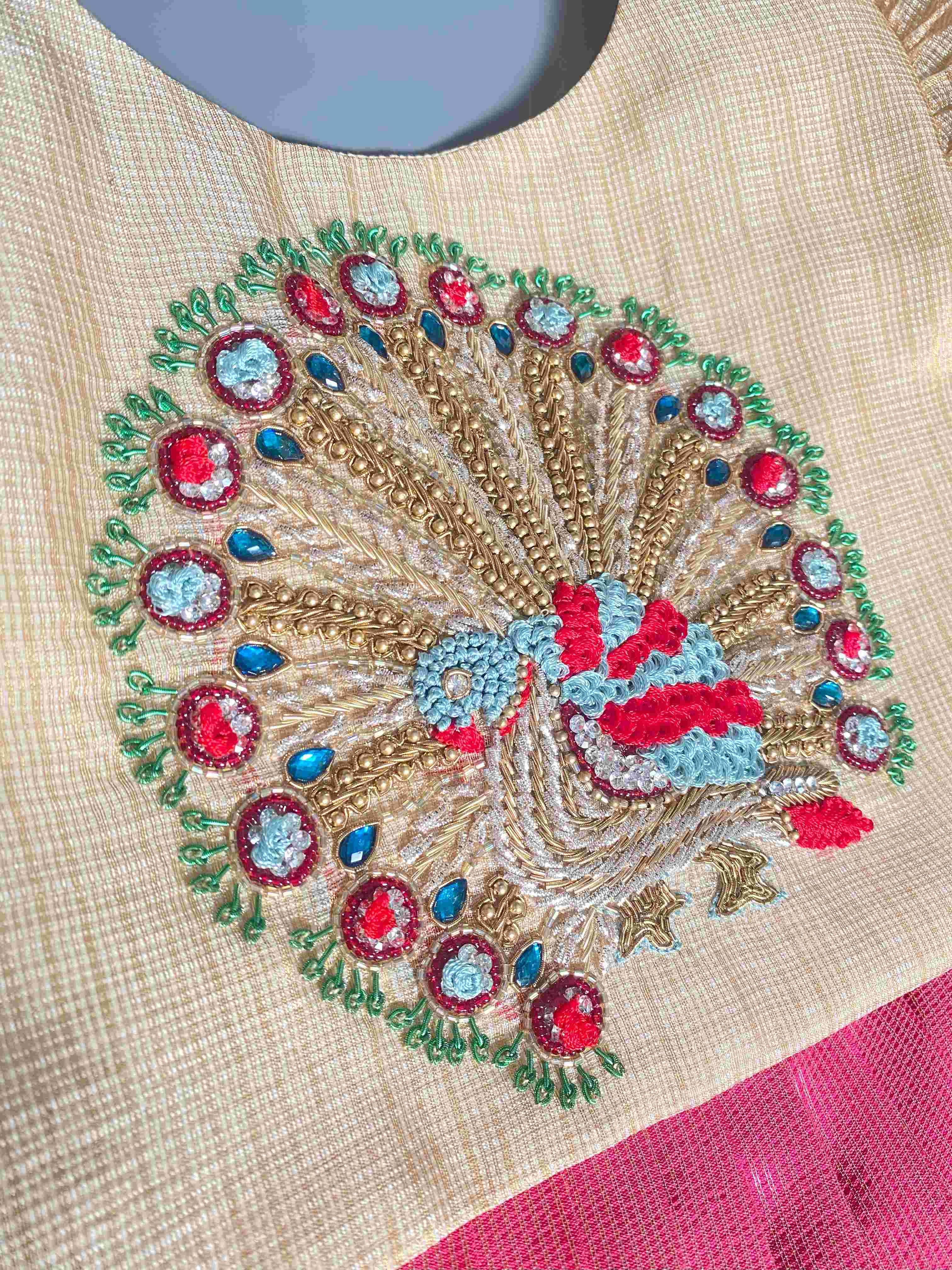 Banaras patola lehenga with pink maggam work blouse