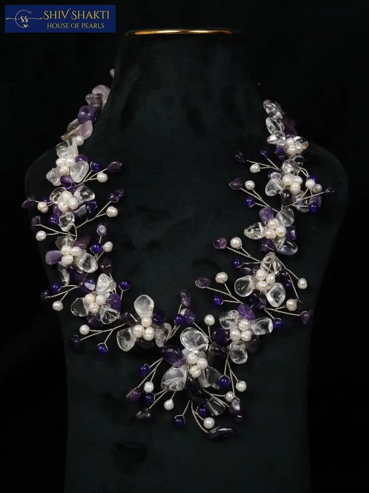Embrace timeless elegance with this captivating Amethyst With Pearl Necklace, where royal purple gemstones meet lustrous pearl accents in perfect harmony. This exquisite piece brings together the serene energy of amethyst with the classic sophistication of pearls, creating a versatile accessory that transitions effortlessly from day to evening wear. The striking contrast between the deep amethyst hues and creamy pearl tones makes a bold yet refined statement. Ideal for those who appreciate meaningful jewelry with genuine character, this necklace becomes a cherished staple in your collection. Invest in a piece that celebrates both natural beauty and enduring style.