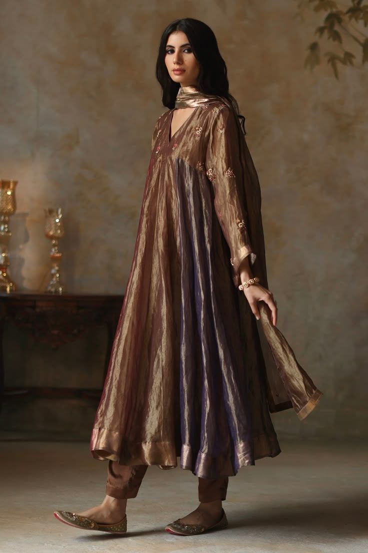 Graceful beige embroidered Anarkali suit with matching dupatta and bottom. Crafted for elegance, this outfit is perfect for parties, festive events, or special occasions. The soft tone and detailed embroidery make it a timeless choice for women and young girls.