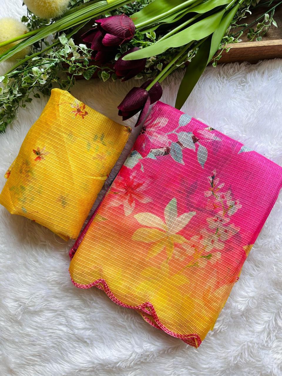 Fresh and comfortable, this saree crafted from soft cotton fabric features a beautiful digital floral print with an elegant cut work border. Perfect for summer wear, it offers breathable comfort and a stylish look for daily use, paired with a running blouse for easy and effortless styling.Fabric: Soft CottonStyle: Daily Wear SareeWork: Digital Floral Print with Cut WorkType: Casual Summer SareeBlouse: Running BlouseOffers: Bulk purchase available at best price (Price: ?350)
