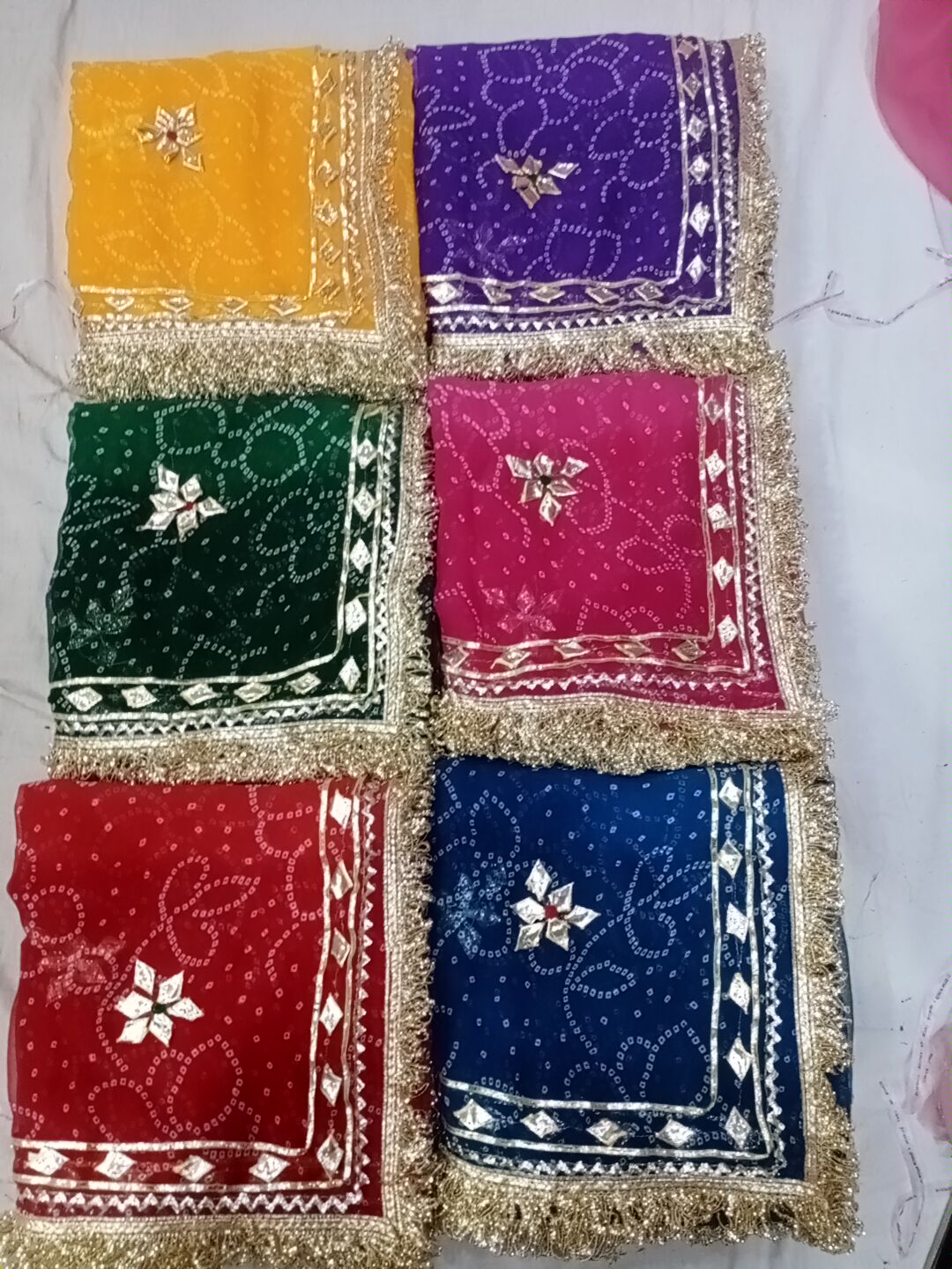 Add a royal touch to your collection with this soft georgette feel saree featuring traditional bandhej design and elegant Rajputi chunadi style. Adorned with beautiful kachi gota work and a graceful designer border, it offers a rich ethnic look perfect for festive occasions and cultural celebrations.Fabric: Soft Georgette FeelStyle: Rajputi ChunadiWork: Kachi Gota WorkType: Festive & Ethnic Wear SareeBlouse: Matching Blouse PieceOffers: Price � ?750 | Bulk Available at Best Price