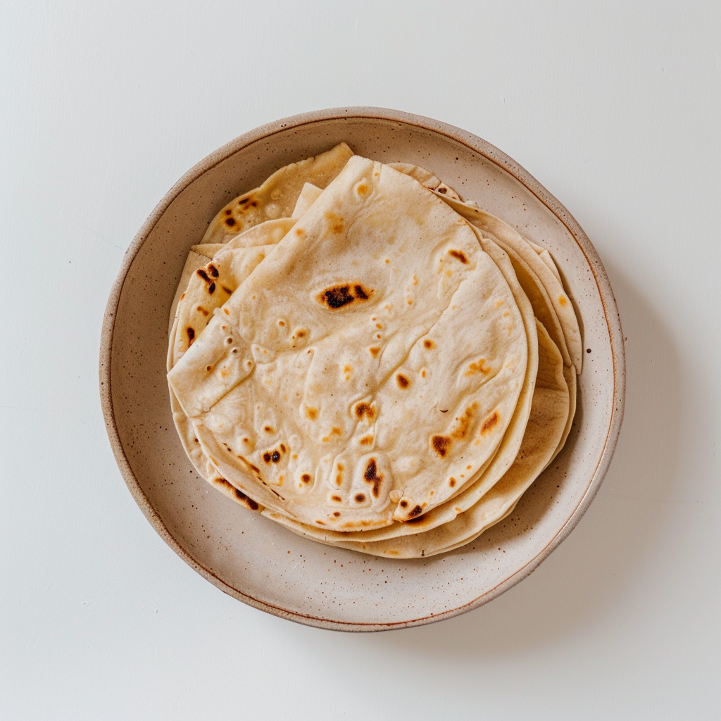 A soft and wholesome Indian flatbread made from whole wheat flour, cooked on a flat griddle (tawa). It’s a staple in Indian meals, offering a healthy and delicious accompaniment to various curries and dals.