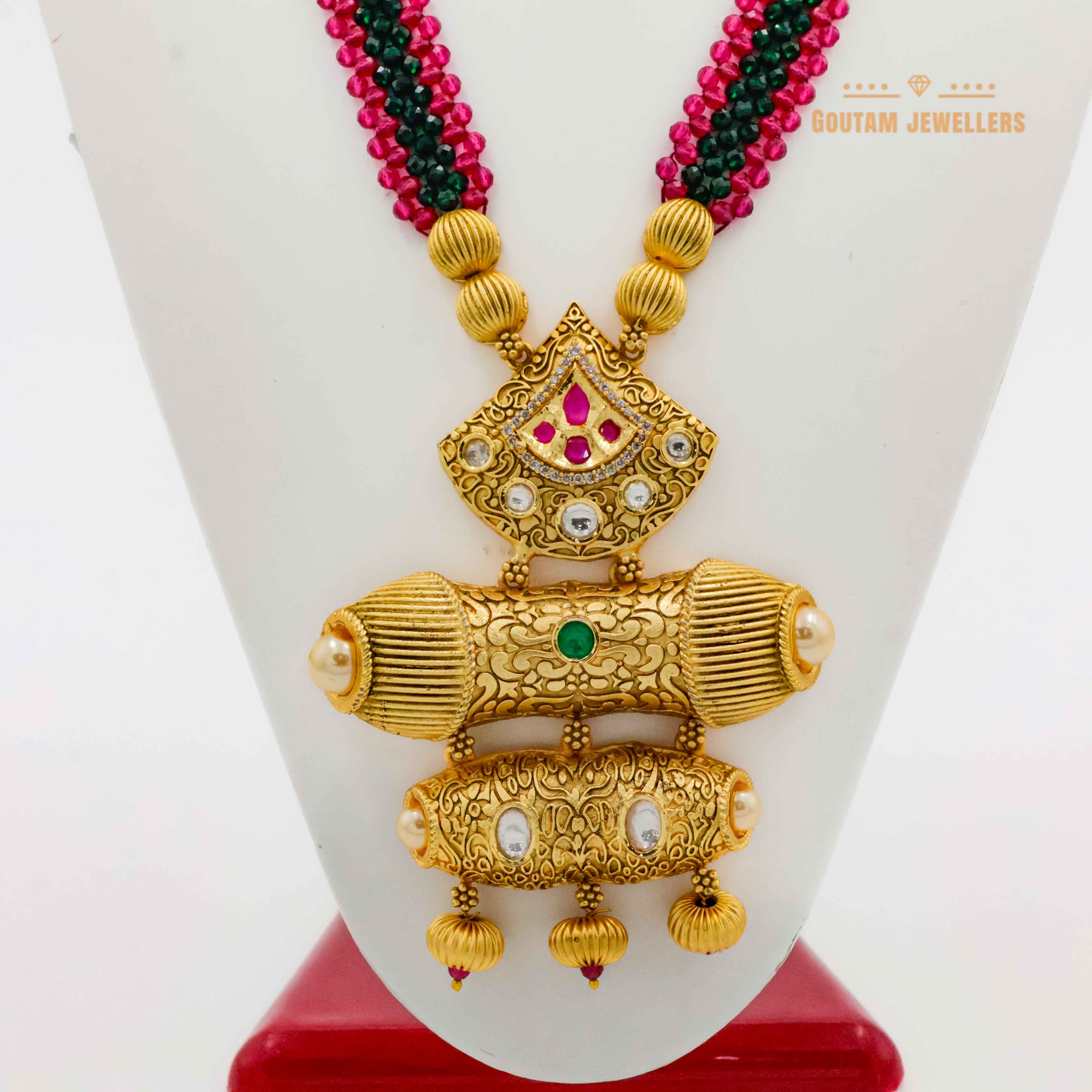 Crafted from copper-based alloy with gold plating, this embellished jewellery set features Kundan and CZ stones. Note that product colors may vary slightly due to lighting.